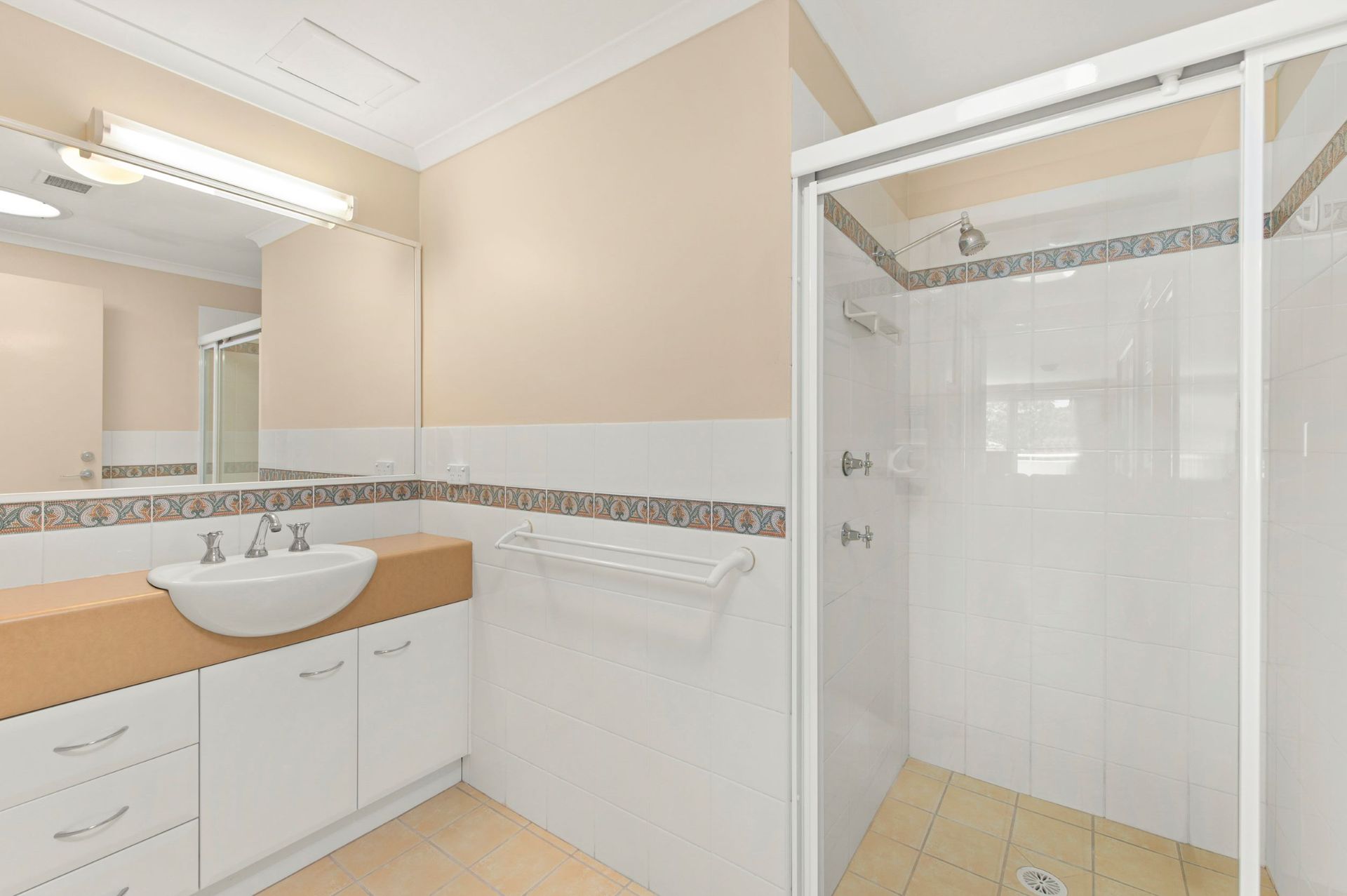 Bedroom 1: Queen bed, a built-in robe, balcony access, and an ensuite with a shower and toilet.