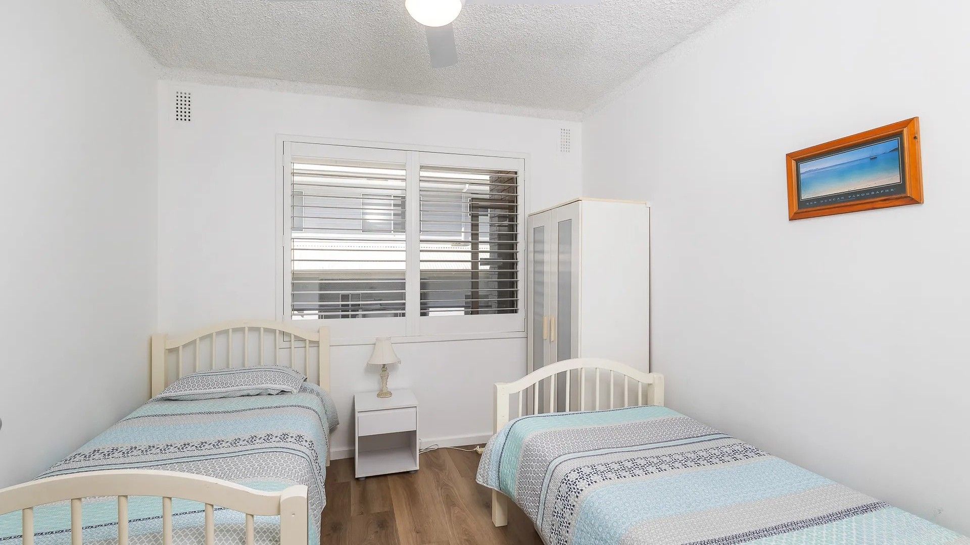 Bedroom 1: 2 Single Beds, Ceiling Fan