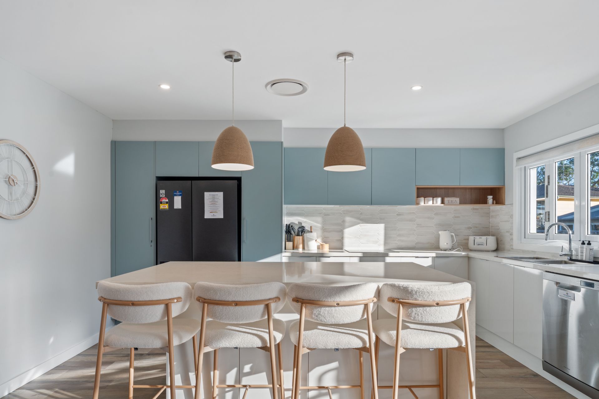 Three bedrooms accommodate up to nine guests, making the home well suited for larger families or group stays. With ample parking available for vehicles, boats, and trailers, Bay Breeze at Salamander Bay is a convenient and comfortable choice for fishing trips, coastal holidays, or relaxed getaways in Port Stephens.