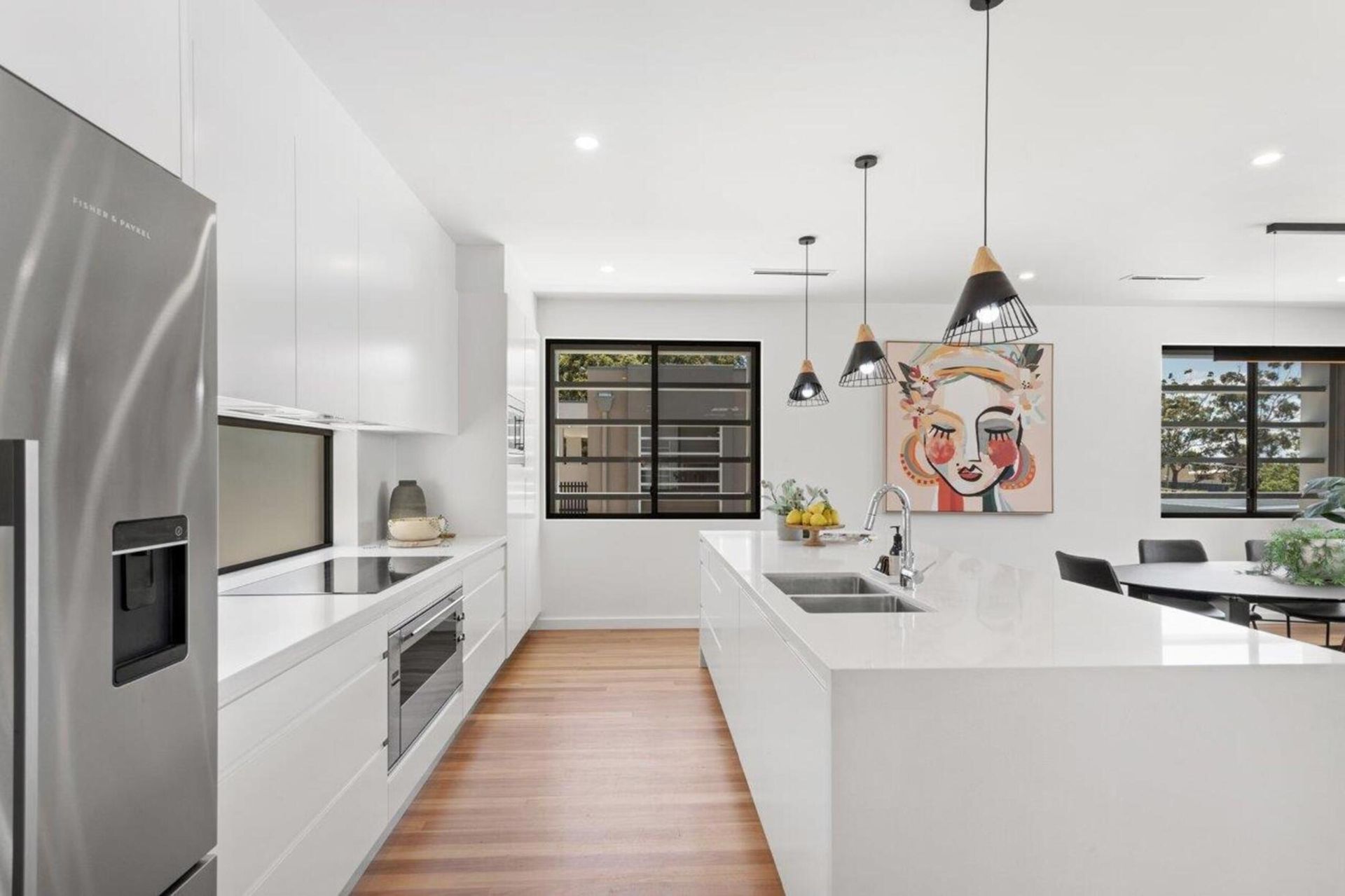Fully equipped kitchen with modern appliances.