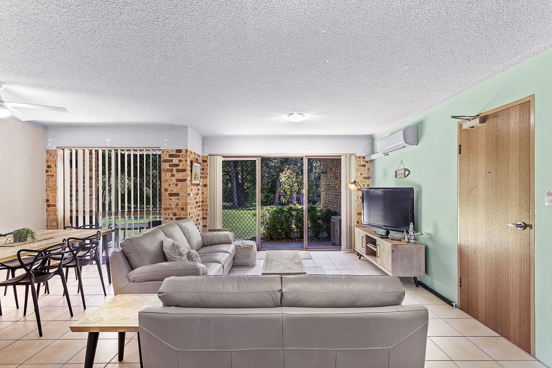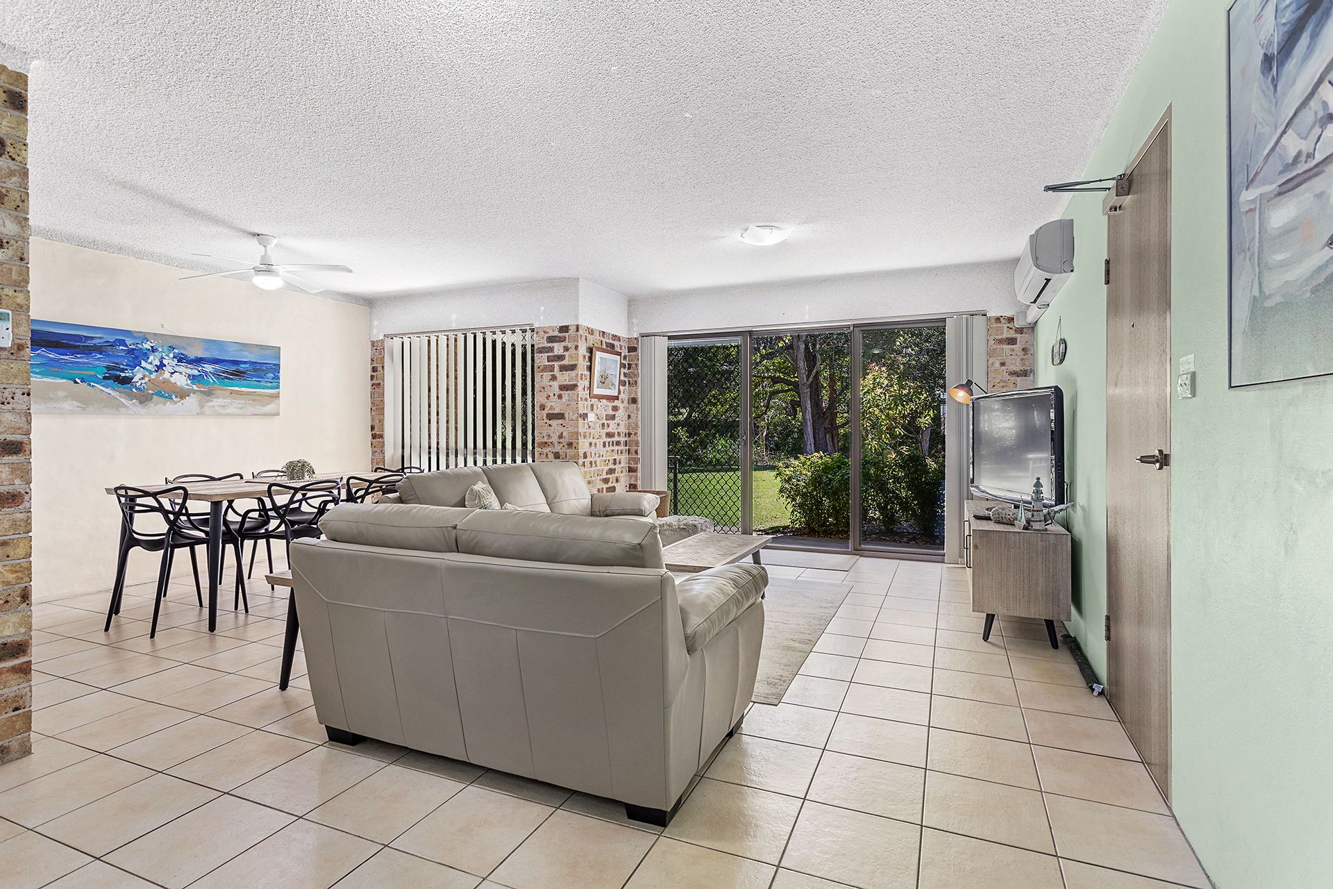 This cosy 2-bedroom unit has no stairs and is in the peaceful, quiet Grevillia block. Air-conditioned, open plan living and dining opens out to vast, grassed parklands for a lovely outlook, and outdoor furniture allows you to enjoy your beautiful surrounds in comfort. The neat, fully equipped kitchen includes a dishwasher and microwave, and the main 3-way bathroom offers a bath, shower and separate toilet. The 2 bedrooms are carpeted, and the main bedroom features a queen bed and private ensuite with shower and toilet, while the 2nd bedroom has a tri-bunk bed. The internal laundry has a washer, dryer and ironing facilities.