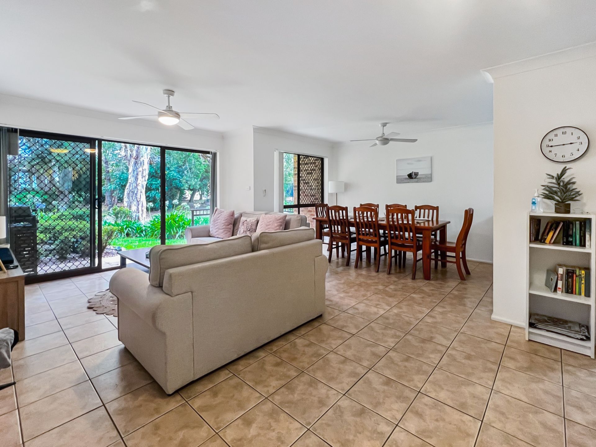 The large main bedroom has a queen bed, ceiling fan and a private ensuite with shower and toilet, and there are 2 other bedrooms, one with a tri-bunk (double on bottom and one on top) and the other with 2 single beds. The main 3-way bathroom comes equipped with a wheelchair friendly shower, plus a bath and toilet, and the internal laundry has a washing machine and dryer. You will have access to 2 car spaces – one in communal lockup garage and one open car space that can accommodate a boat up to 5.5m long.
