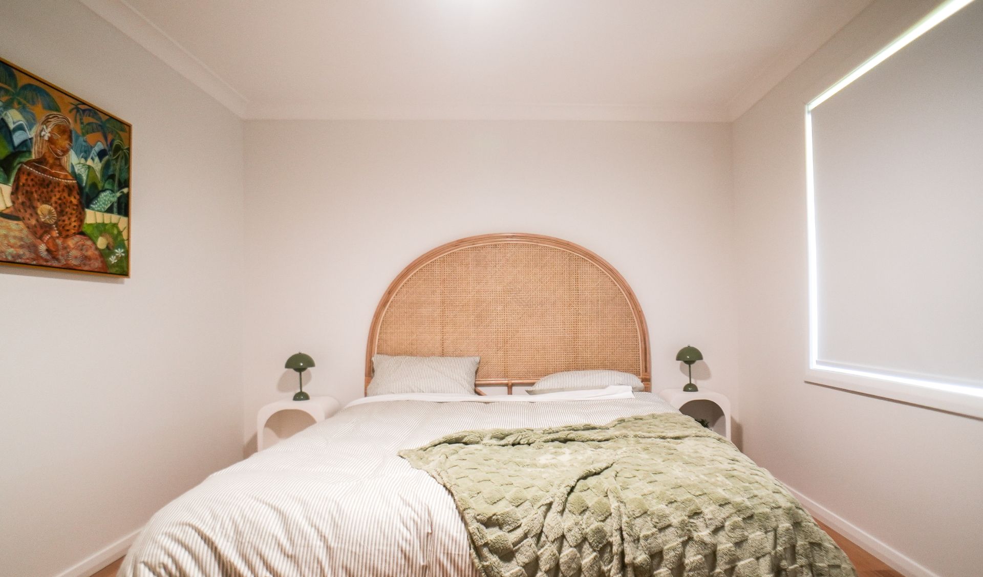 Bedroom 1: 1 Queen bed, Air Conditioning, Built In Robe, Ceiling Fan