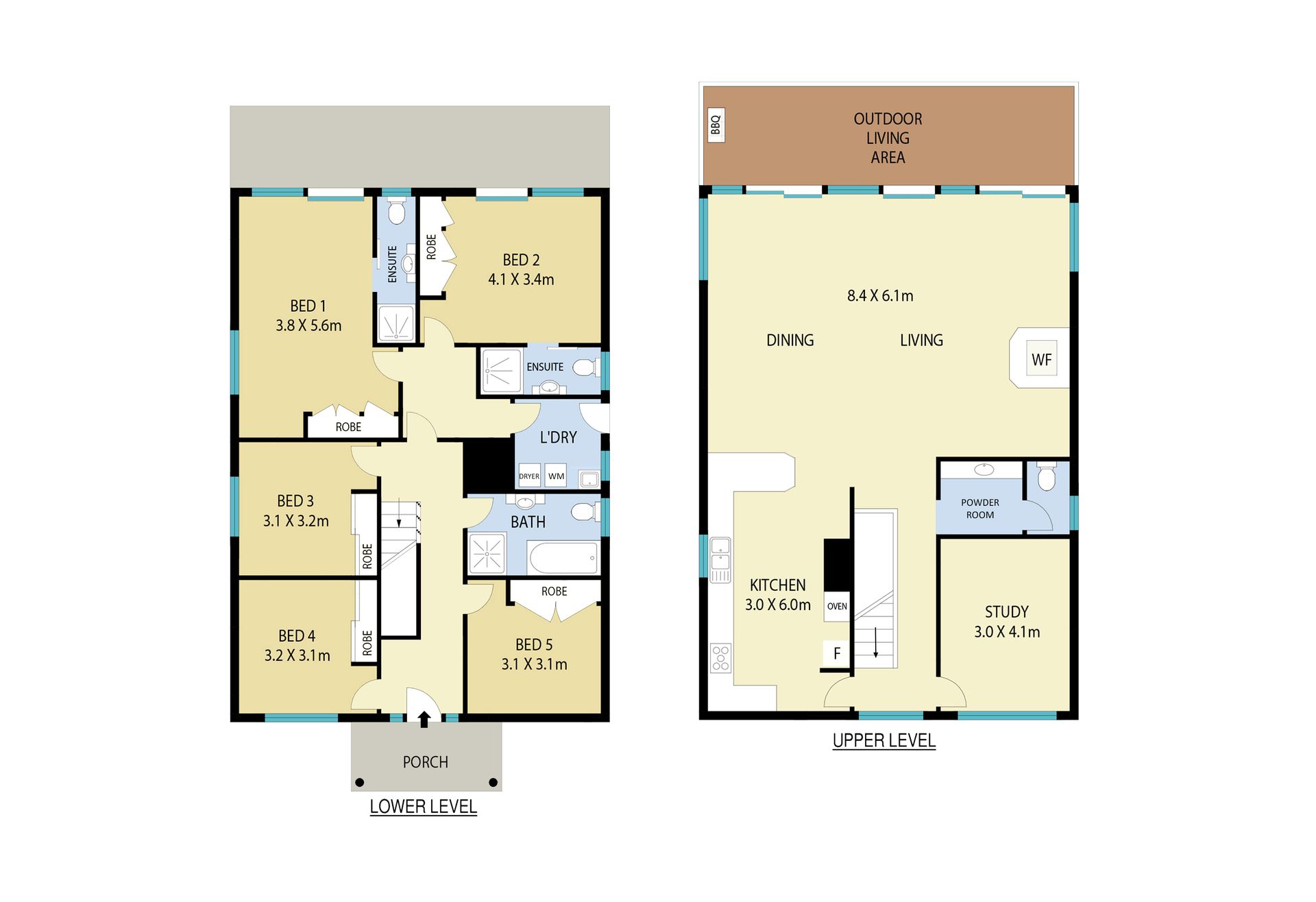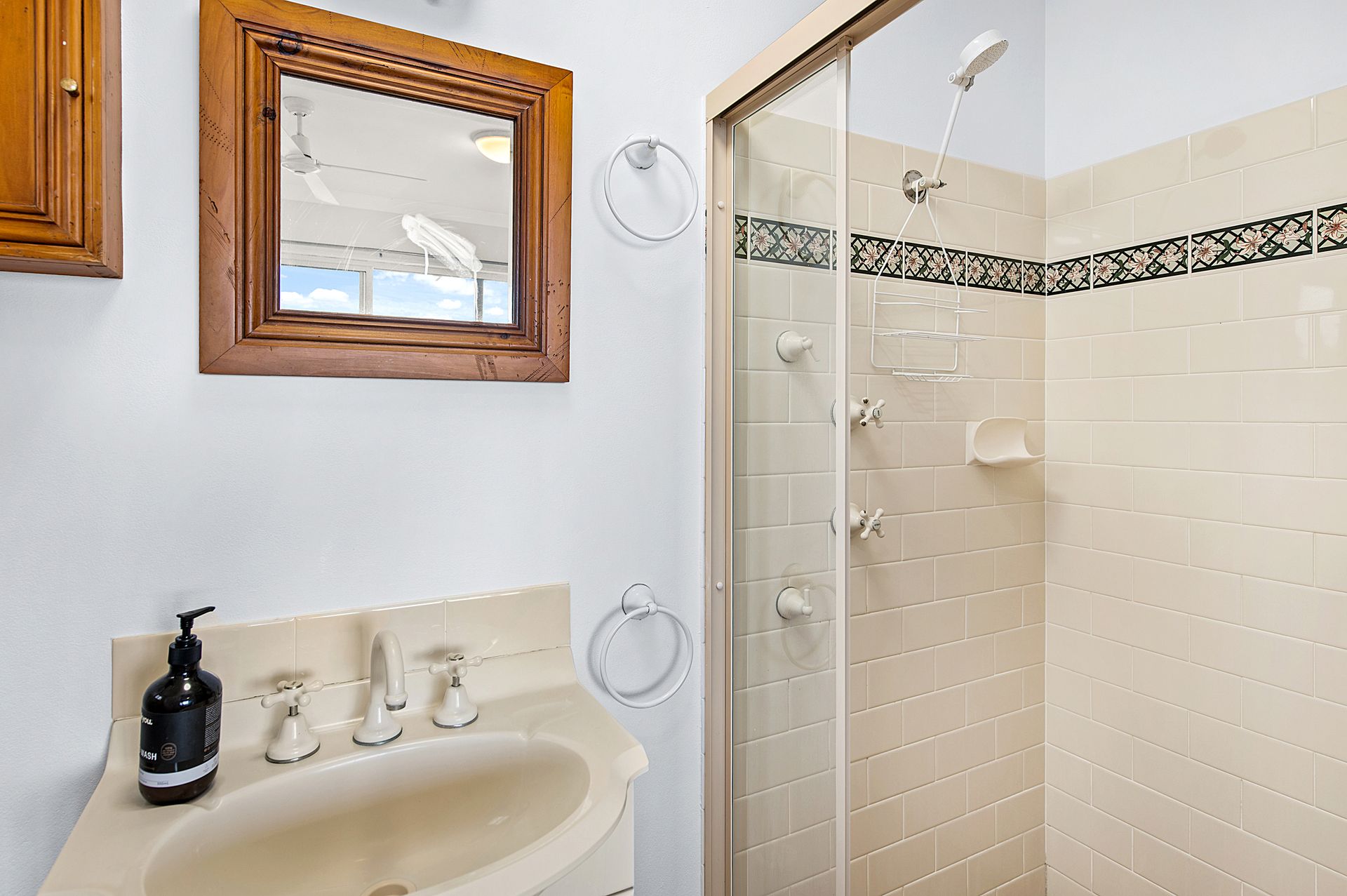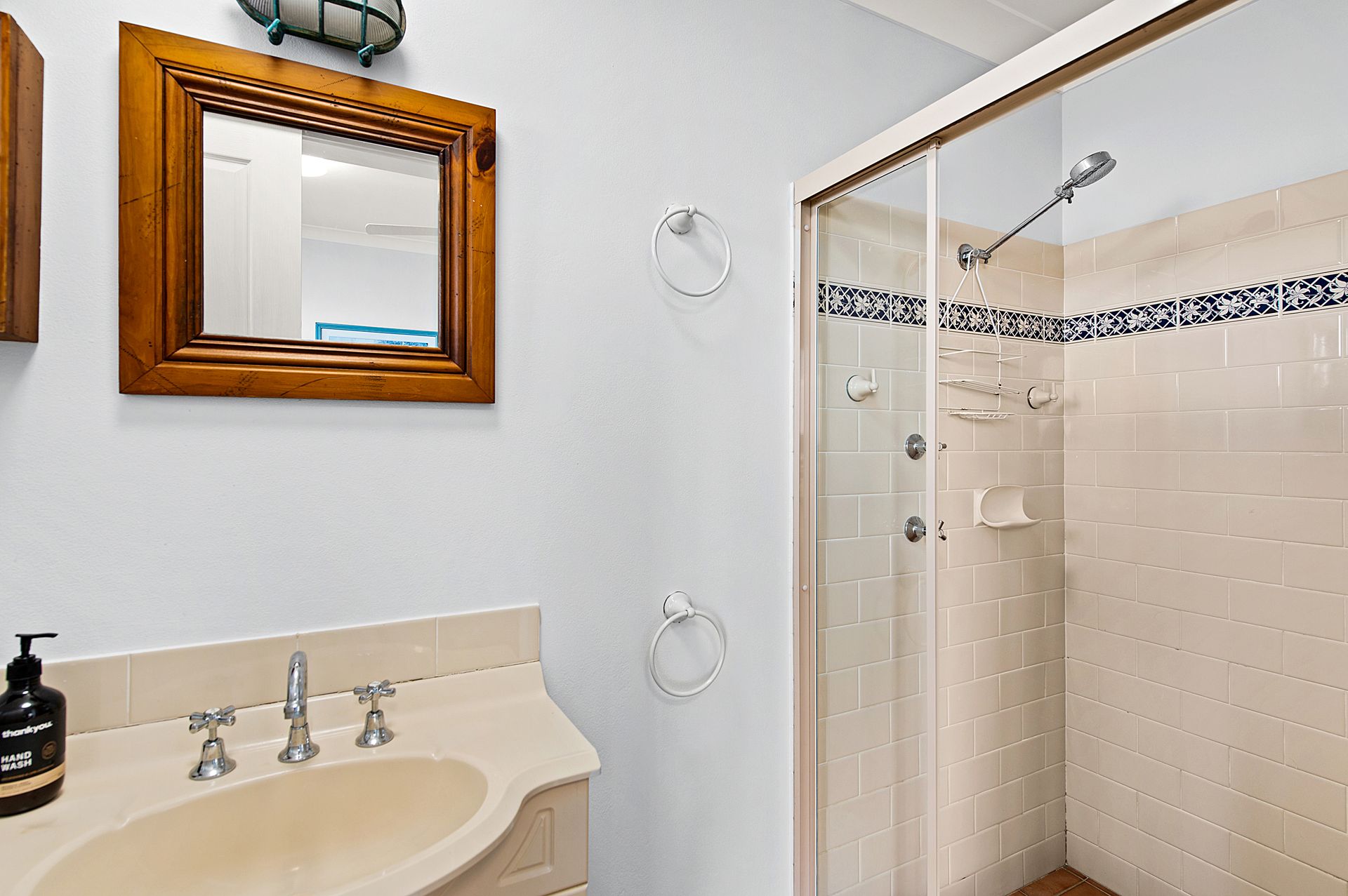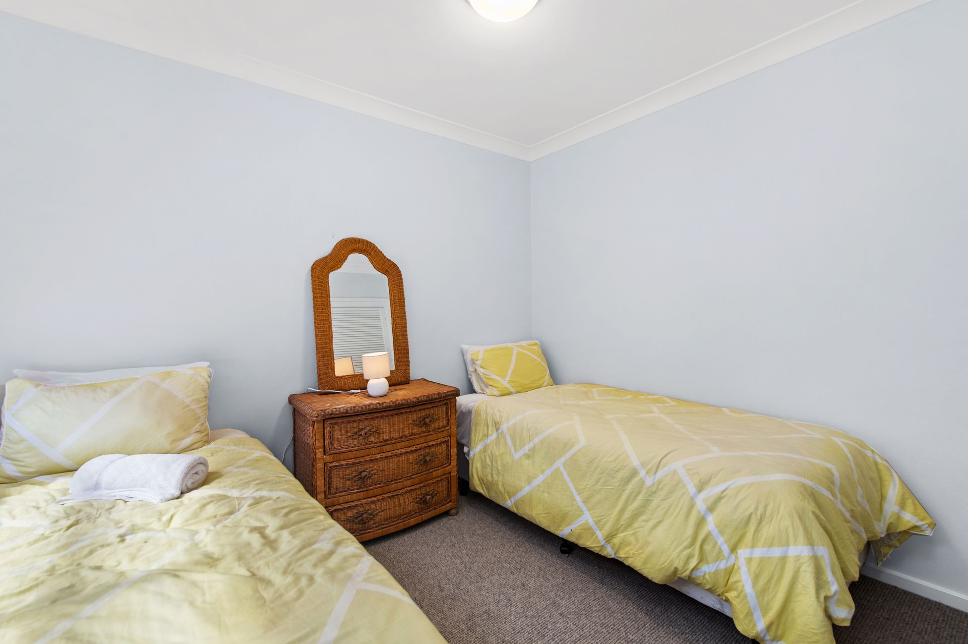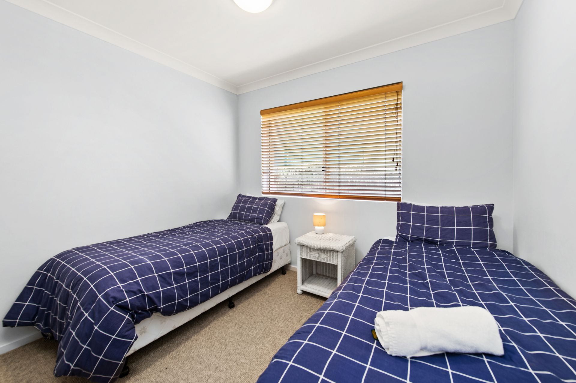 Downstairs, you will find all 5 bedrooms. The 2 main bedrooms each feature a king bed and private ensuite with water views and access out onto the grass reserve area, while the remaining 3 bedrooms each offer 2 king single beds.