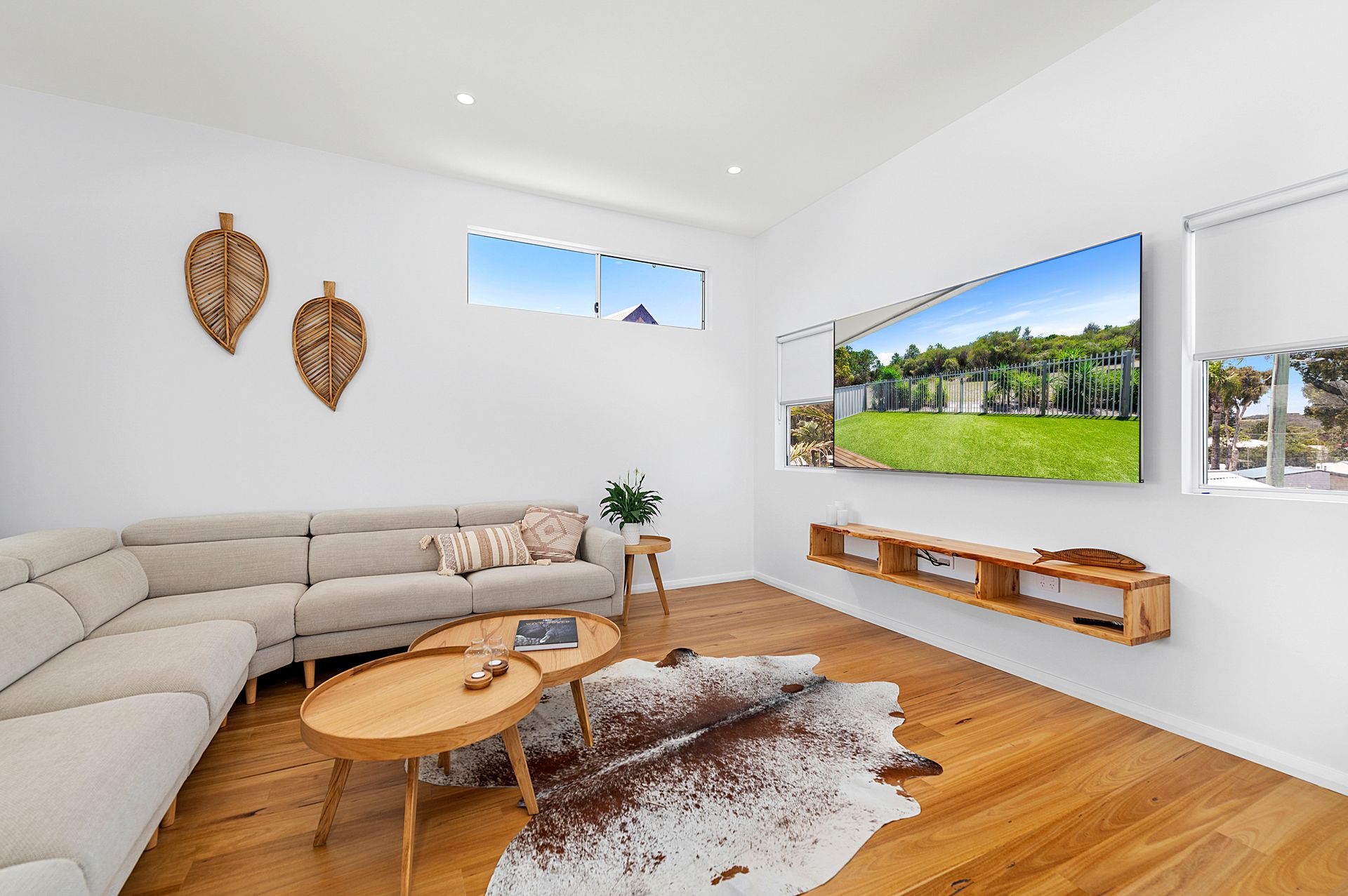 A large flat screen television for indoor entertainment