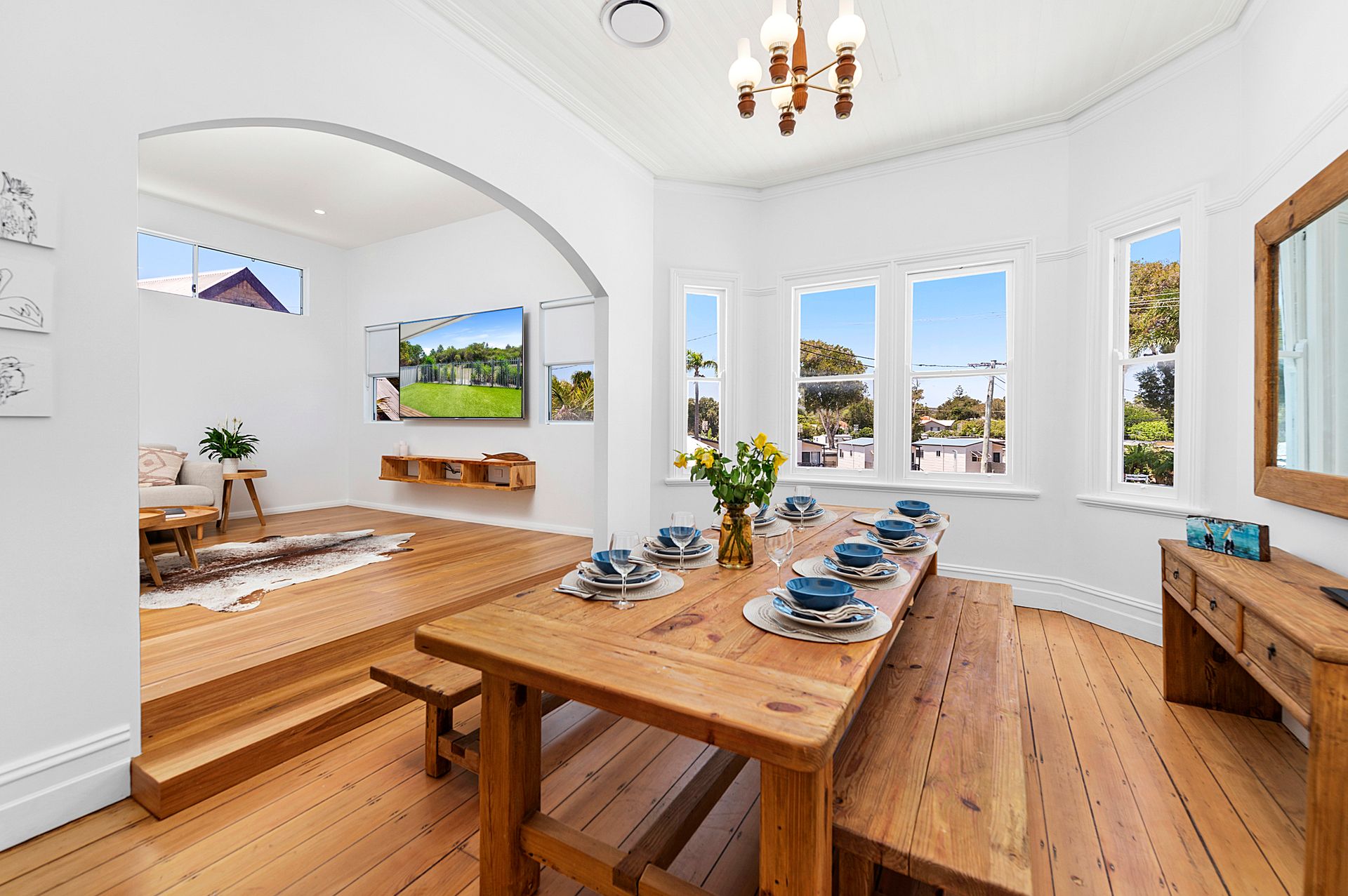 Step into a world of vintage charm and contemporary luxury at Birubi House 1919, a historic holiday home nestled in the laid-back suburb of Anna Bay. More than just accommodation, it's a journey through time against the backdrop of a nature reserve and the iconic Stockton Sand Dunes. This four-bedroom haven seamlessly blends the allure of a bygone era with today's modern comforts.