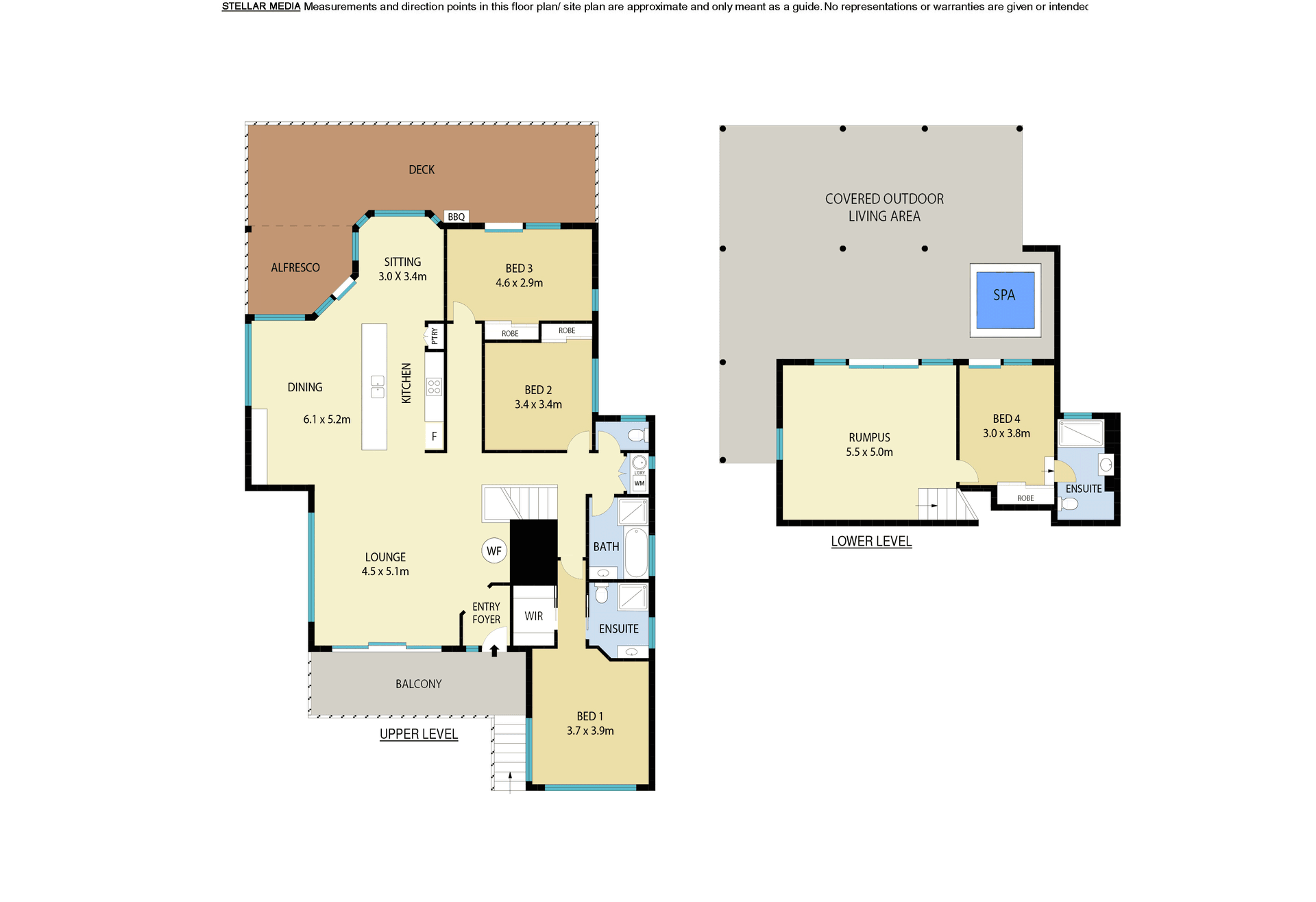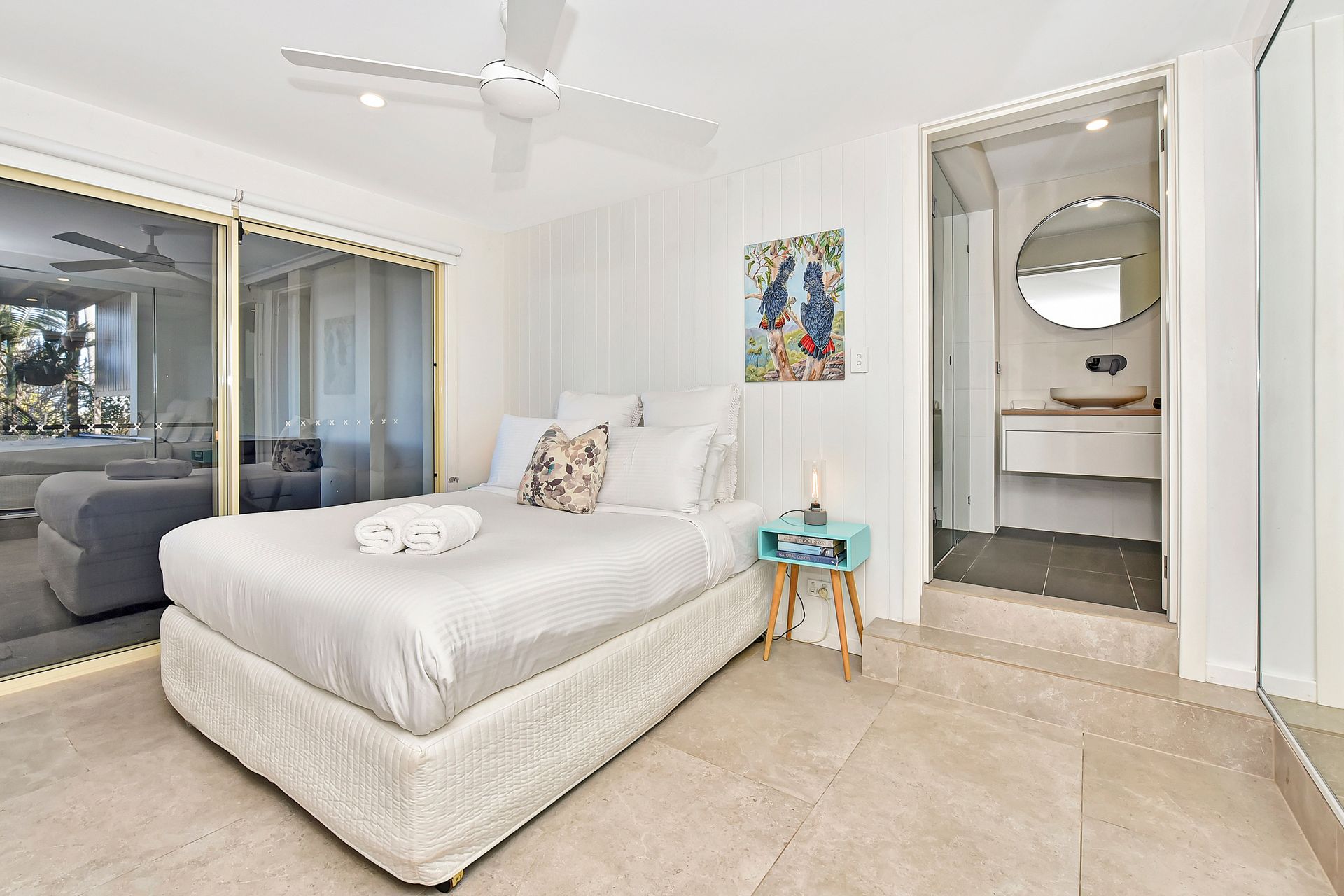 Bedroom 4 (Ground): Queen, ensuite, TV, courtyard access, built-in robe, ceiling fan