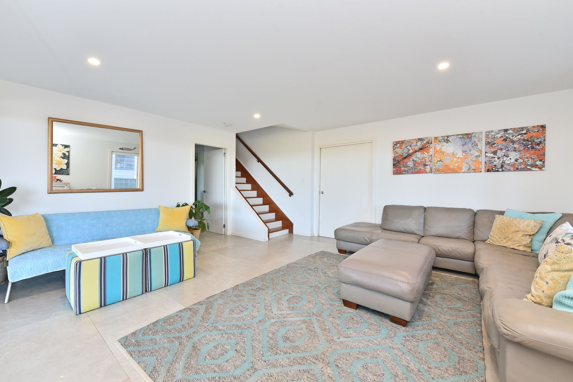 Bedroom 2 (Upstairs): Single over double bunk, study desk, built-in robe, ceiling fan