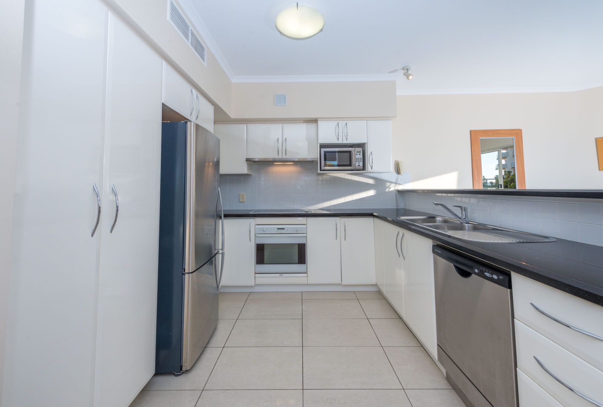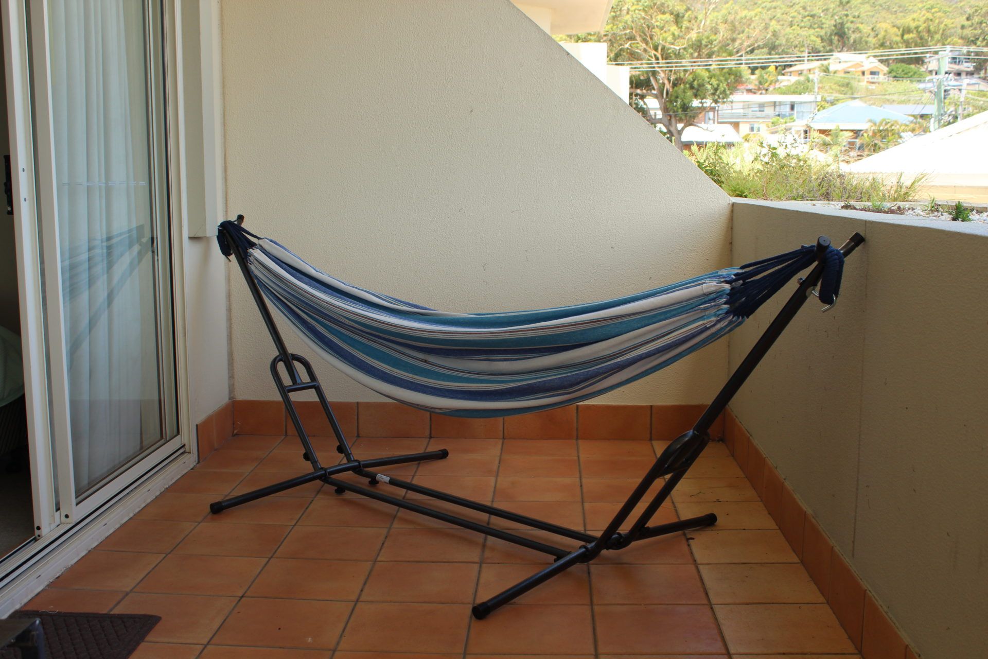 The practical home-like layout offers free WIFI, 2 bedrooms, 2 bathrooms, 2 car spaces and an open plan living and dining area surrounded by glass sliding doors and multiple access doors out to the very generous wraparound alfresco area. The modern and fully-equipped kitchen has everything you could need to cook in the apartment and enjoy out on the huge balcony area with a 6 seater outside table setting, as well as a hammock to relax in and beautiful outdoor lounges.