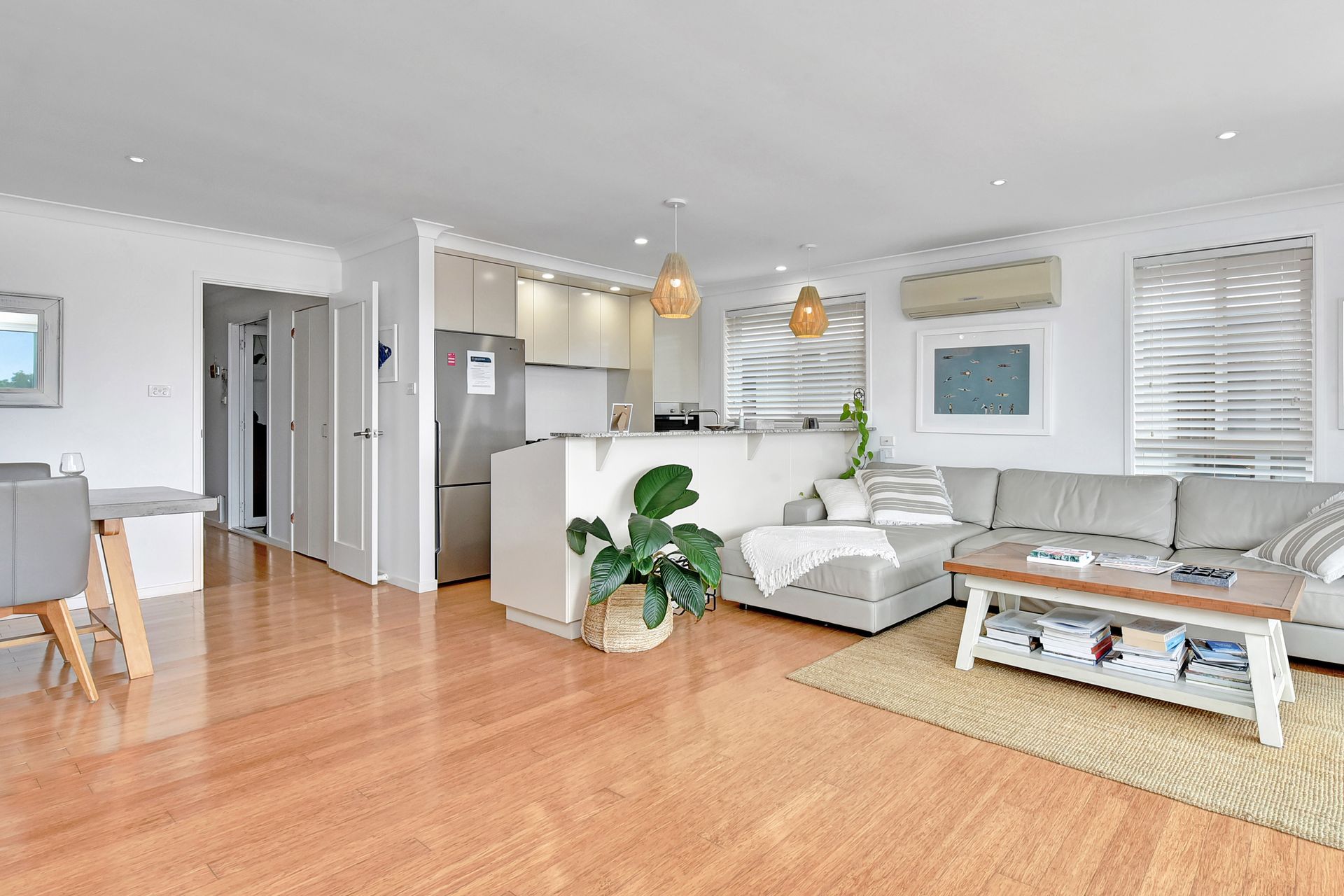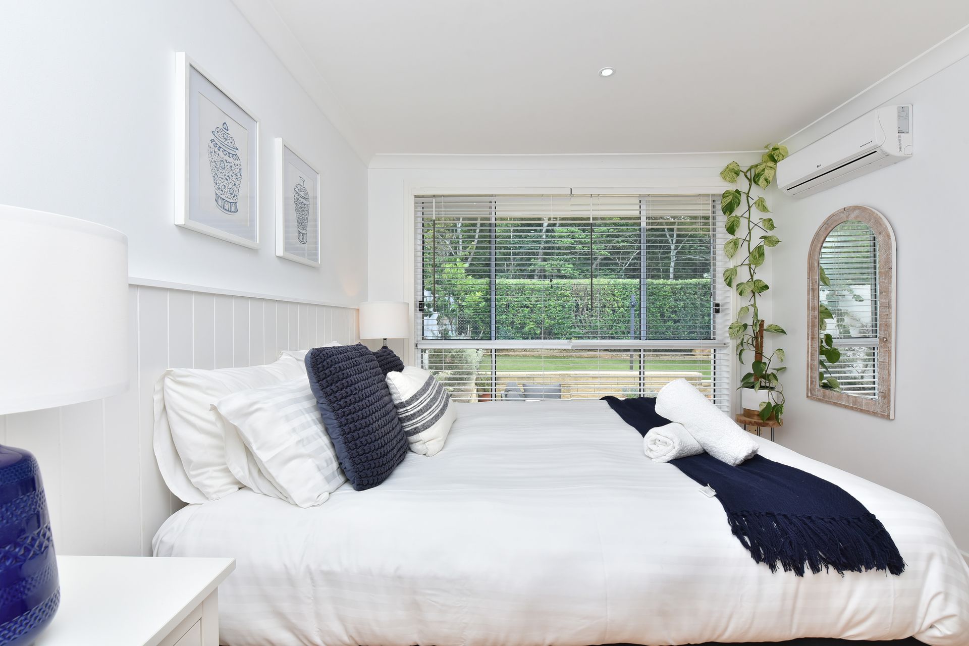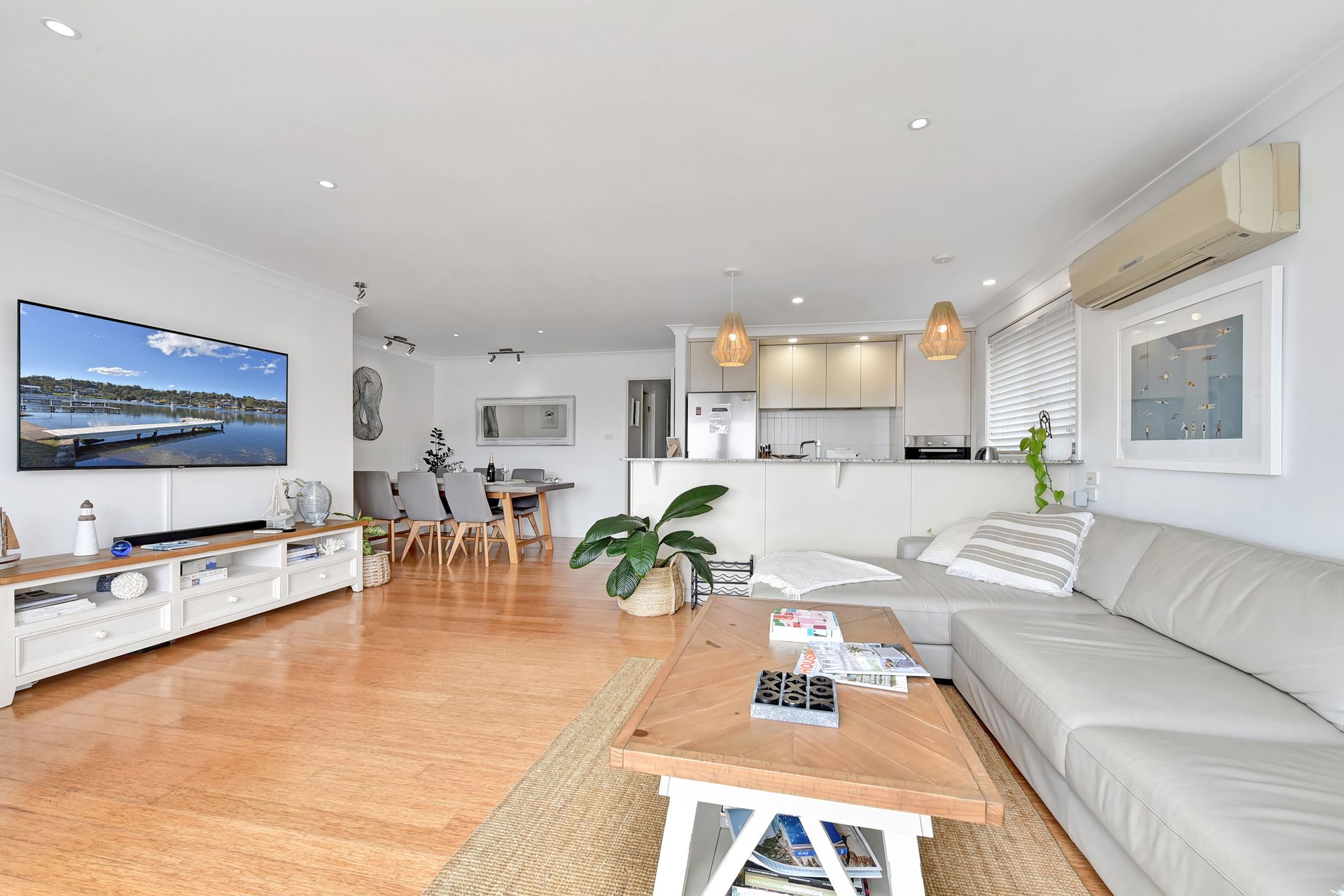 Cool and modern décor welcomes you into the light-filled, air-conditioned open living space. Sink into the plush lounge to chat or watch your favourite shows on the enormous Smart TV with soundbar and WIFI. Books and board games are supplied to help you make the most of your time away.