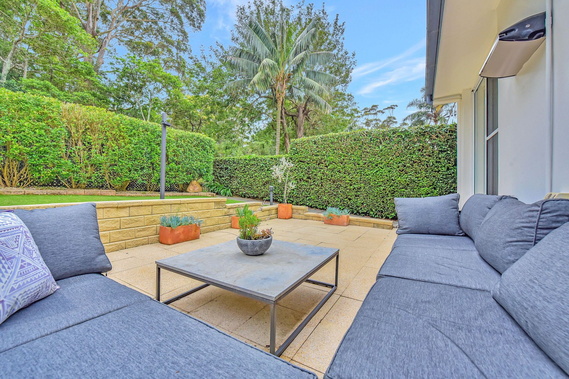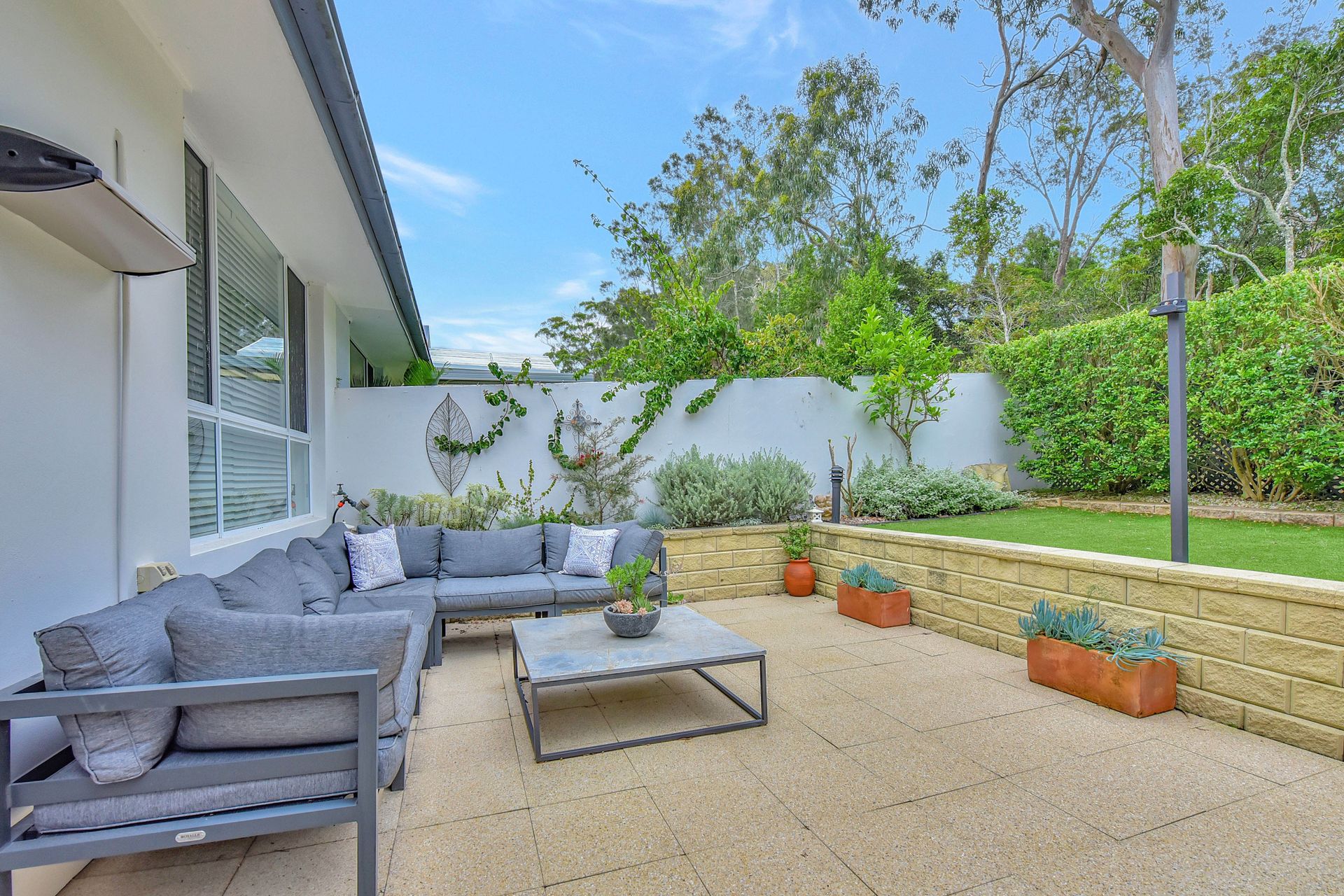 The fenced backyard truly shines. A large paved area with seating offers a practical space to relax alfresco while lovely plants and garden decorations make the space cosy in the most wonderful way. Towering trees from the bushland the house backs on create a peaceful ambiance while the tall hedge offers additional privacy - you'll relish your hours spent in this gorgeous green space. There is even a lemon tree to season your seafood fresh from the sea, or better yet, to add a little zing to a refreshing cocktail.