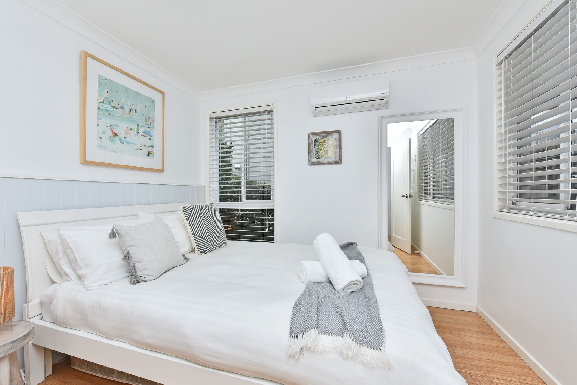 This duplex comfortably accommodates up to 6 guests with 3 air-conditioned bedrooms and 2 bathrooms. Thoughtful touches to make your stay particularly enjoyable and stress-free include heated towel rails in both bathrooms and mirrors in bedrooms.