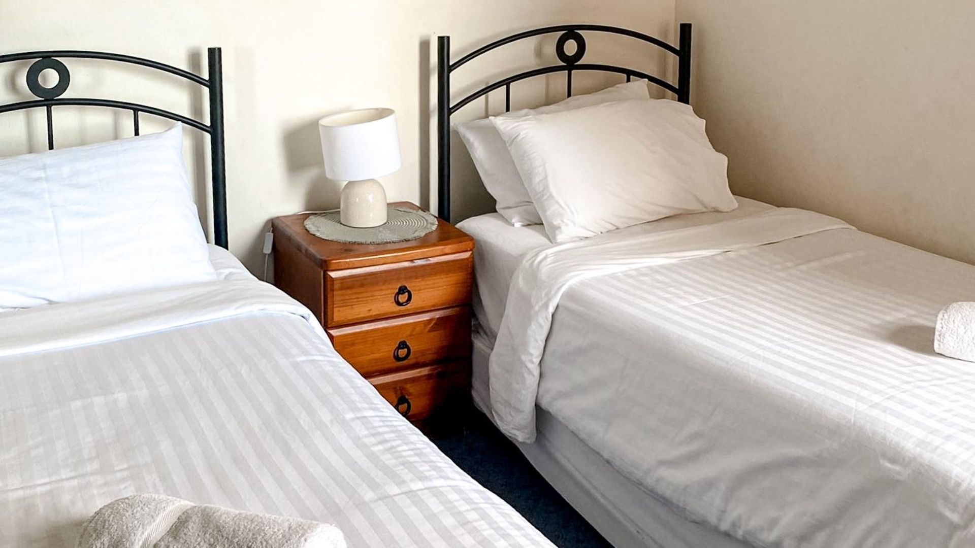 The main bedroom has a queen bed and the 2nd bedroom has 2 single beds and a trundle bed. Please be aware that the trundle is only suited to a child . From the 2nd bedroom, a great view can be captured from the window along with the coastal breezes. The main bathroom has a bath, separate shower and a toilet, and the internal laundry has a washing machine, clothes dryer and a 2nd toilet. Parking for 2 cars is available with one open car space and one undercover.