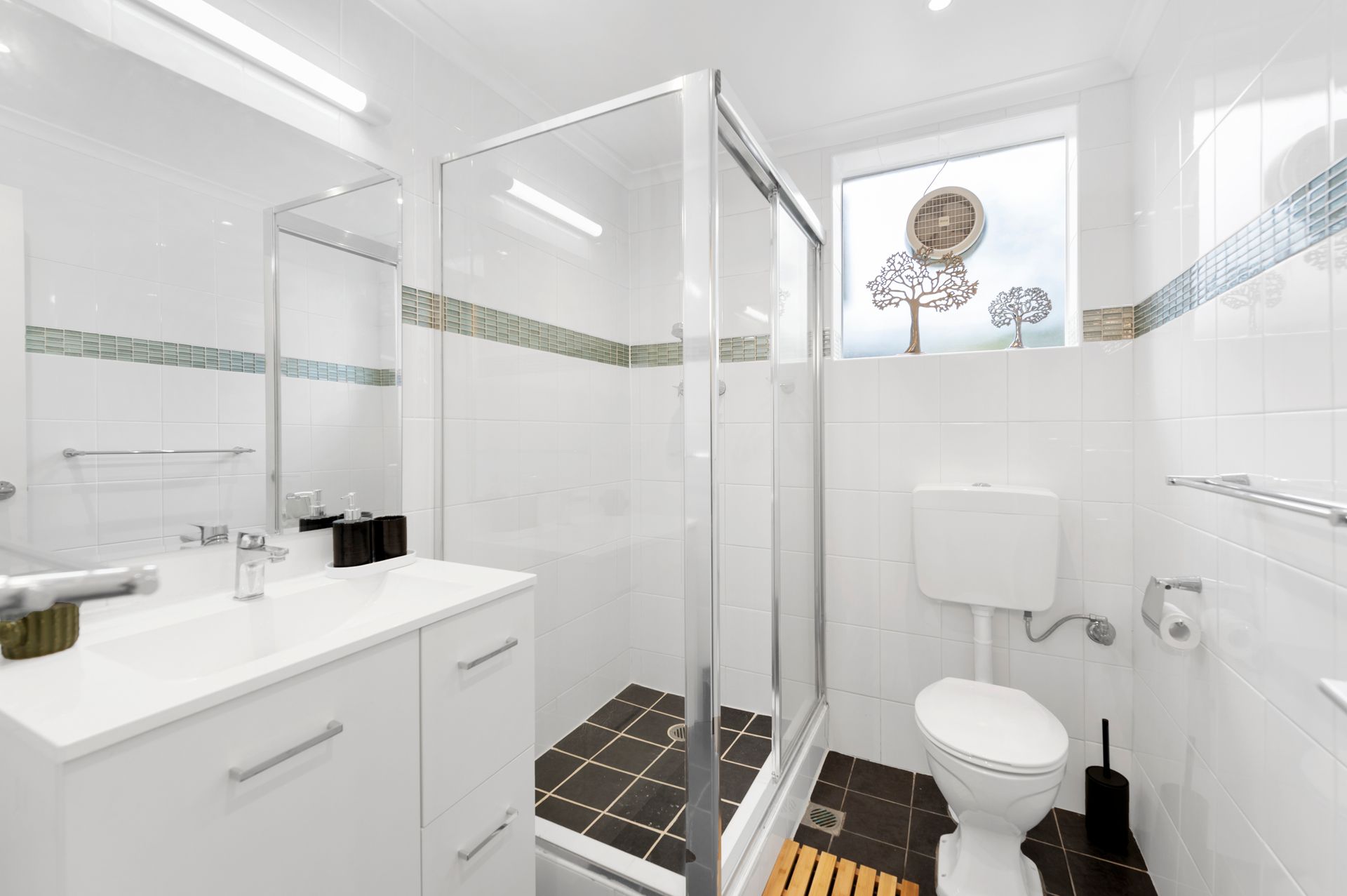 The main bedroom has a queen bed and bedroom two has a Tri-bunk. Both rooms have lots of storage for you to unpack your belongings. The Bathroom has a large shower, vanity and toilet. There is a laundry outside near the carport (separate key) with a washer and dryer.