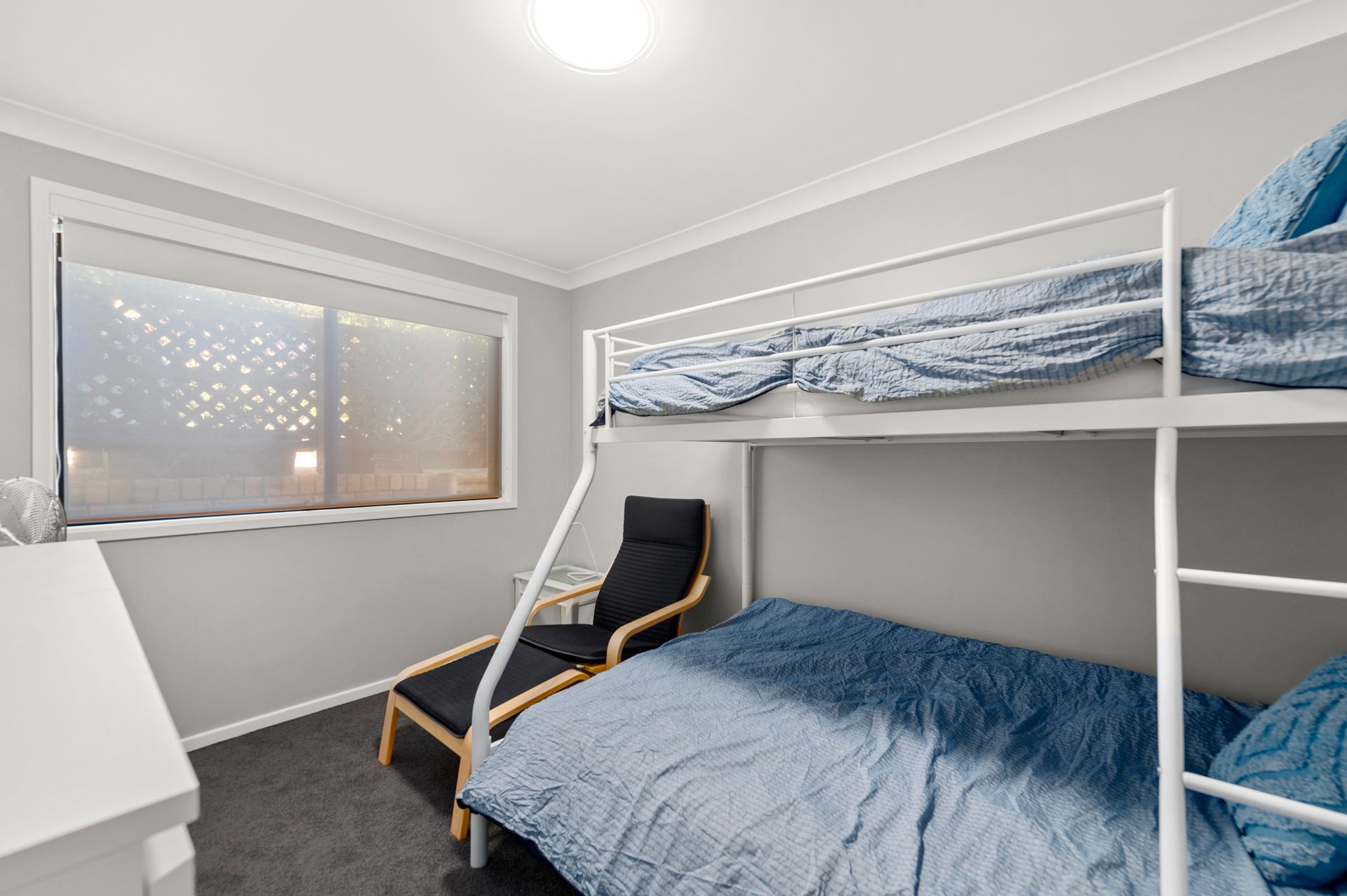 Downstairs are 3 more bedrooms. One has a tri-bunk, and the other 2 each have a double bed, ceiling fan and balcony access. All 4 bedrooms have built-in robes. There is also a bathroom with a bathtub, shower and toilet, and a laundry with washer and dryer.
