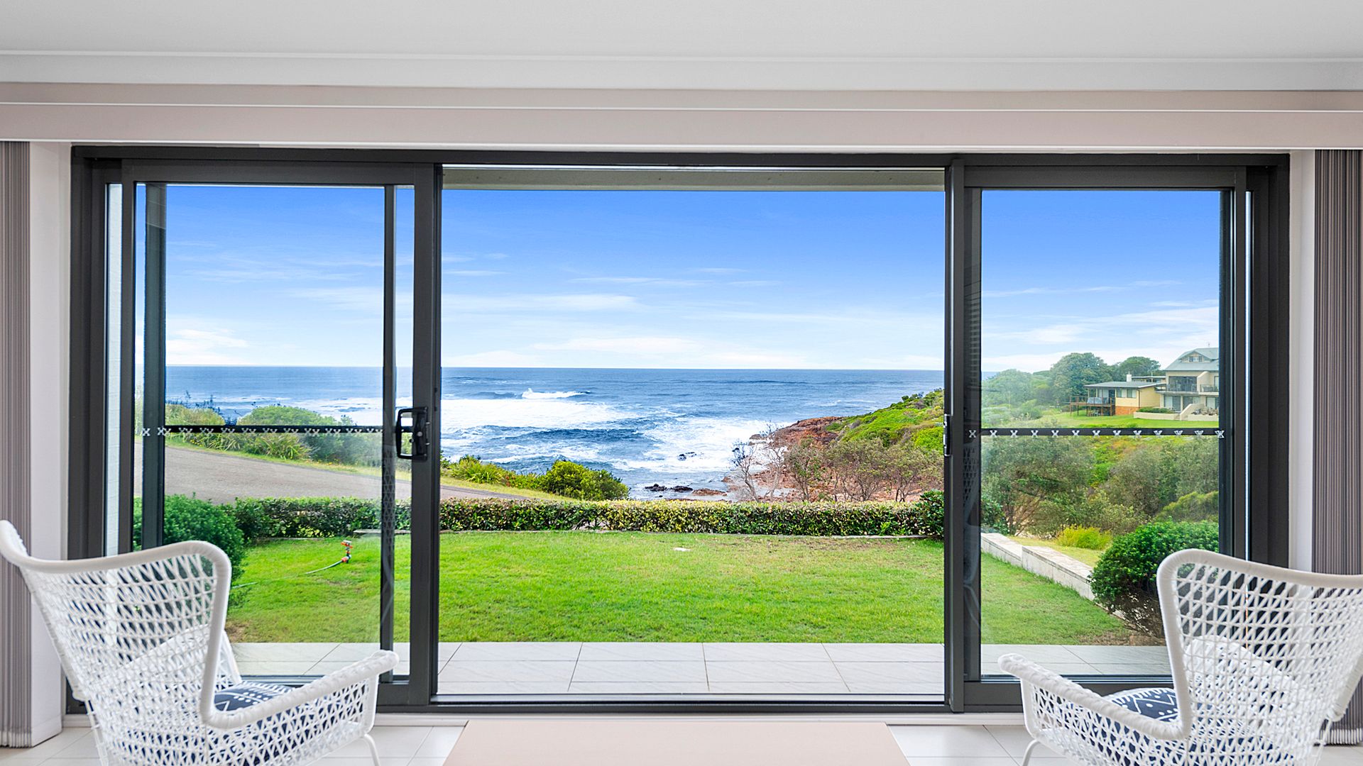 Experience coastal living like never before at 8a Pacific Street Fisherman Bay, where panoramic 360-degree water views set the stage for an enchanting getaway. This downstairs duplex invites you to bask in spacious luxury, with an open-plan lounge, dining, and kitchen seamlessly flowing onto a lush grassed area. Revel in the spectacle of whales cruising by and the drama of storms rolling in, creating an ever-changing canvas of natural wonders.