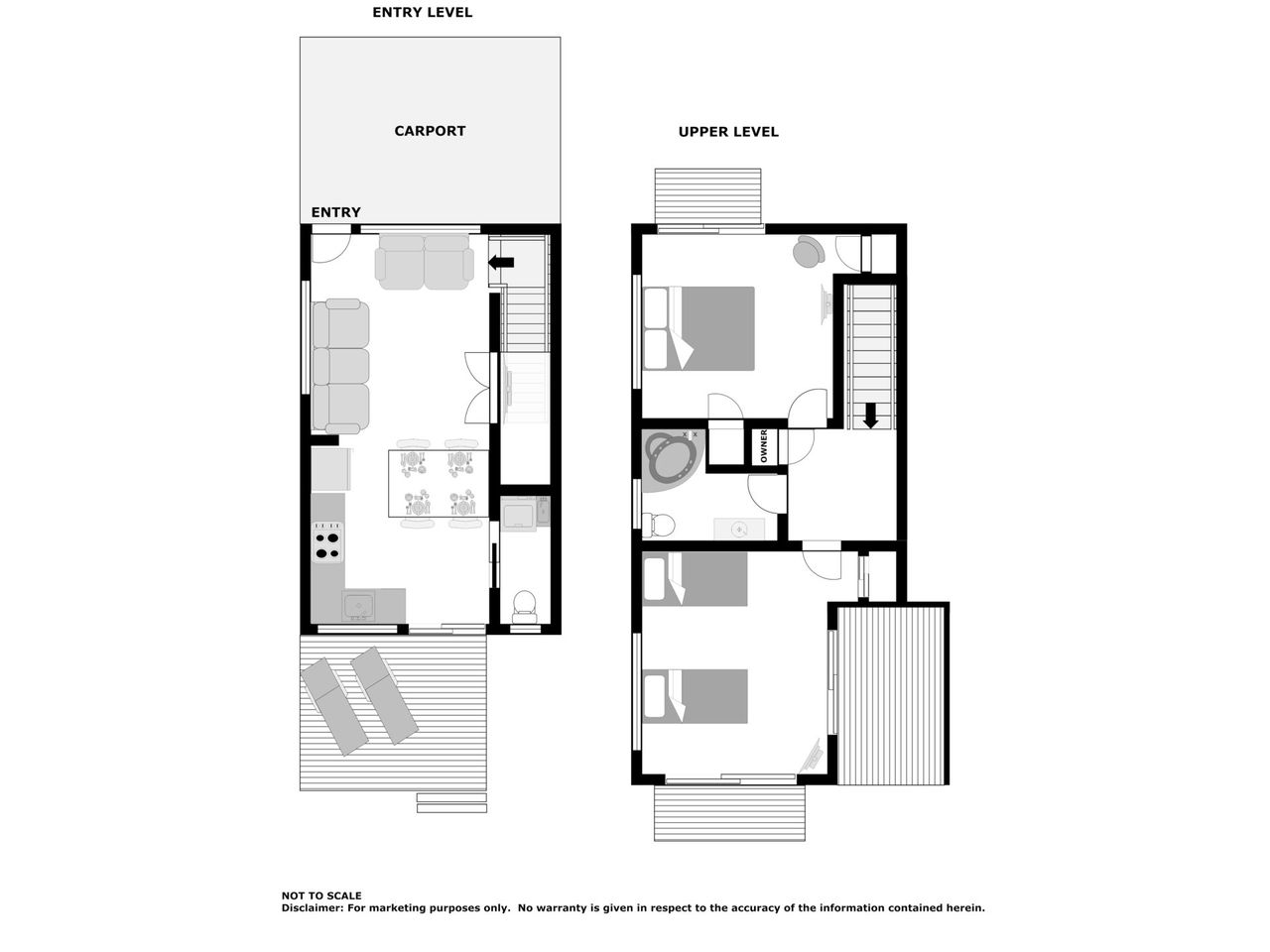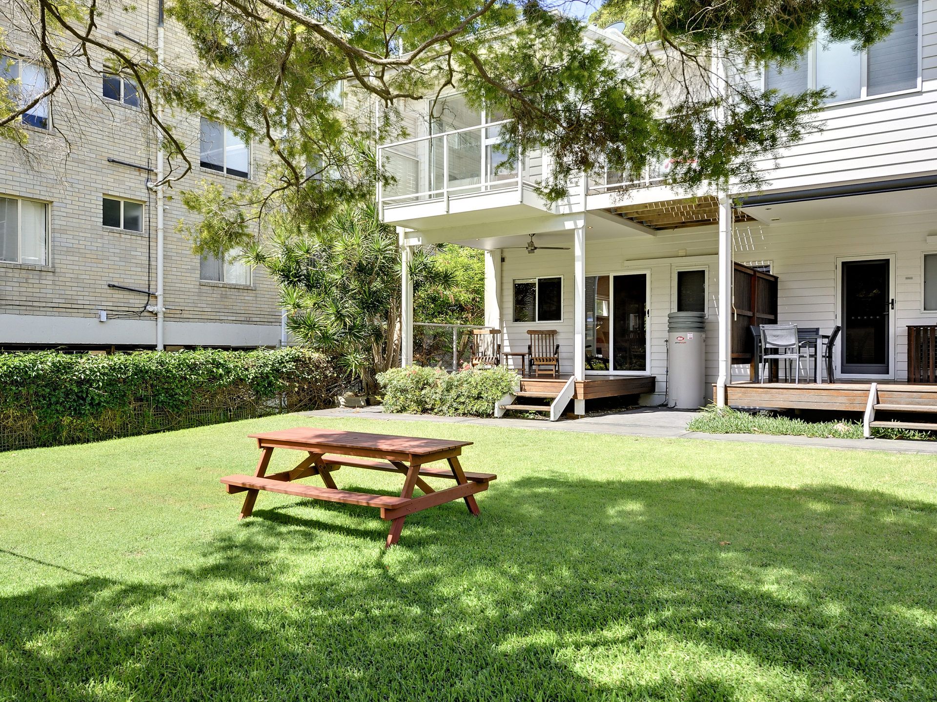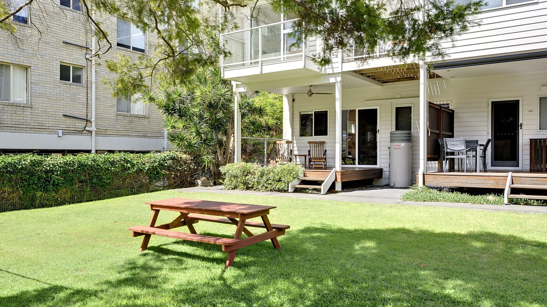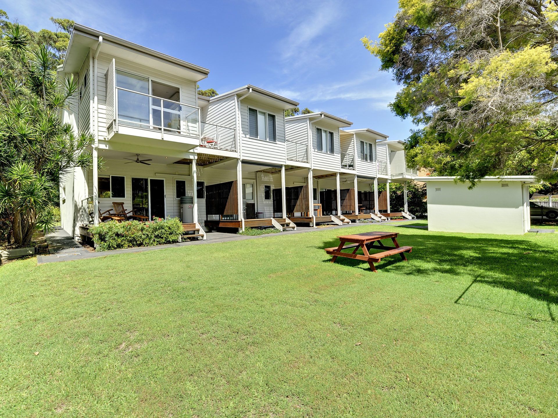 In your beautifully appointed townhouse, step out from the open plan living area to a covered balcony with outdoor ceiling fan and views over the communal rear yard, which offers picnic tables and gas BBQ as well as plenty of grass for kids to play. With a modern, fully equipped kitchen, air-conditioning and TV's in the living area and both bedrooms, plus balcony access from both bedrooms and the main bathroom with a corner spa to luxuriate in, you'll have a very comfortable base for your holiday. The laundry offers washer, dryer and 2nd toilet, and a carport and driveway allow parking for 2 cars. Includes free WIFI or broadband, Smart TV, Foxtel, Blu-ray DVD and iPod docking station in the living room, and a DVD player in the 2nd bedroom.
