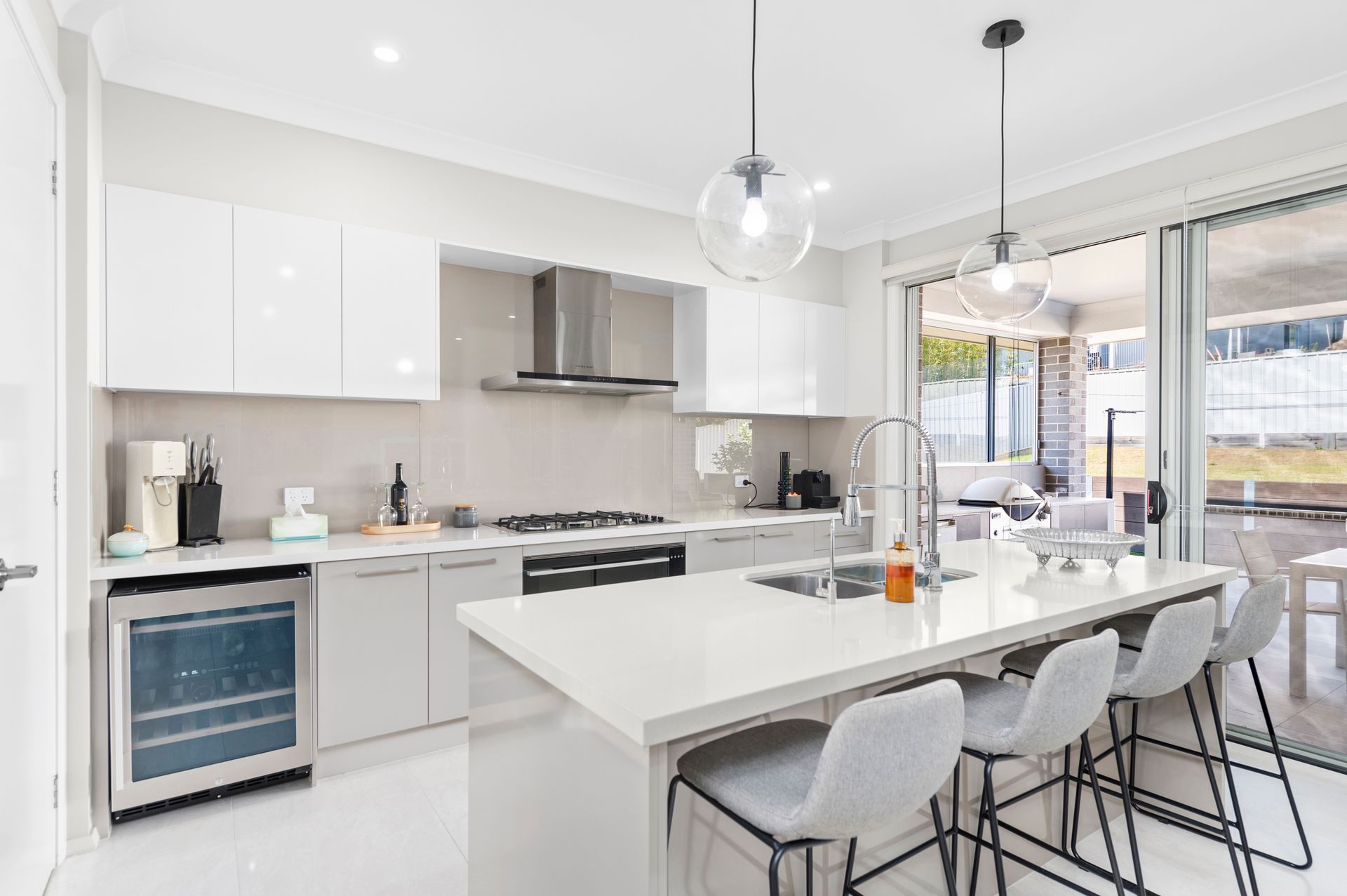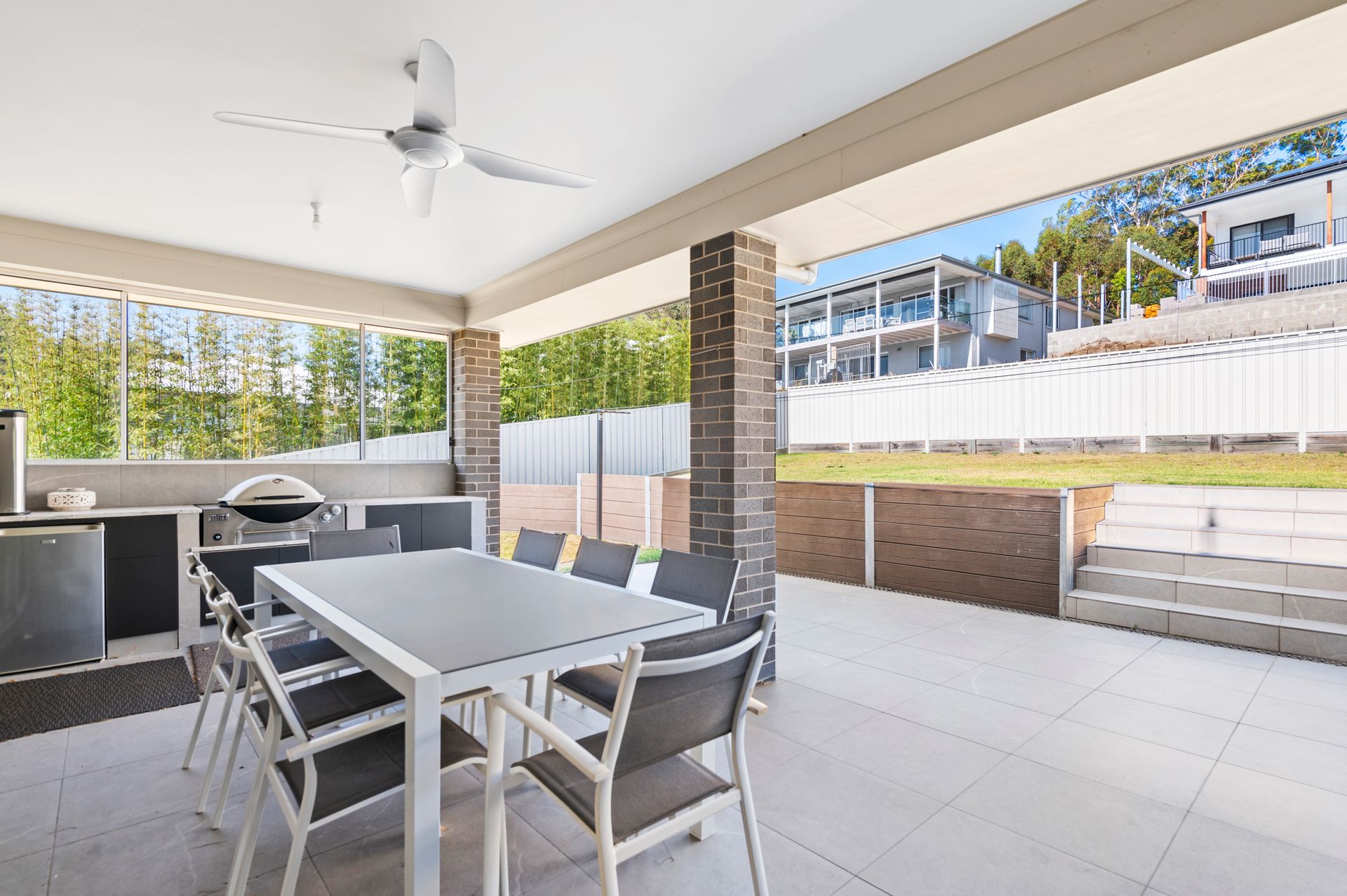 Outdoor entertainment area with barbecue and wine fridge