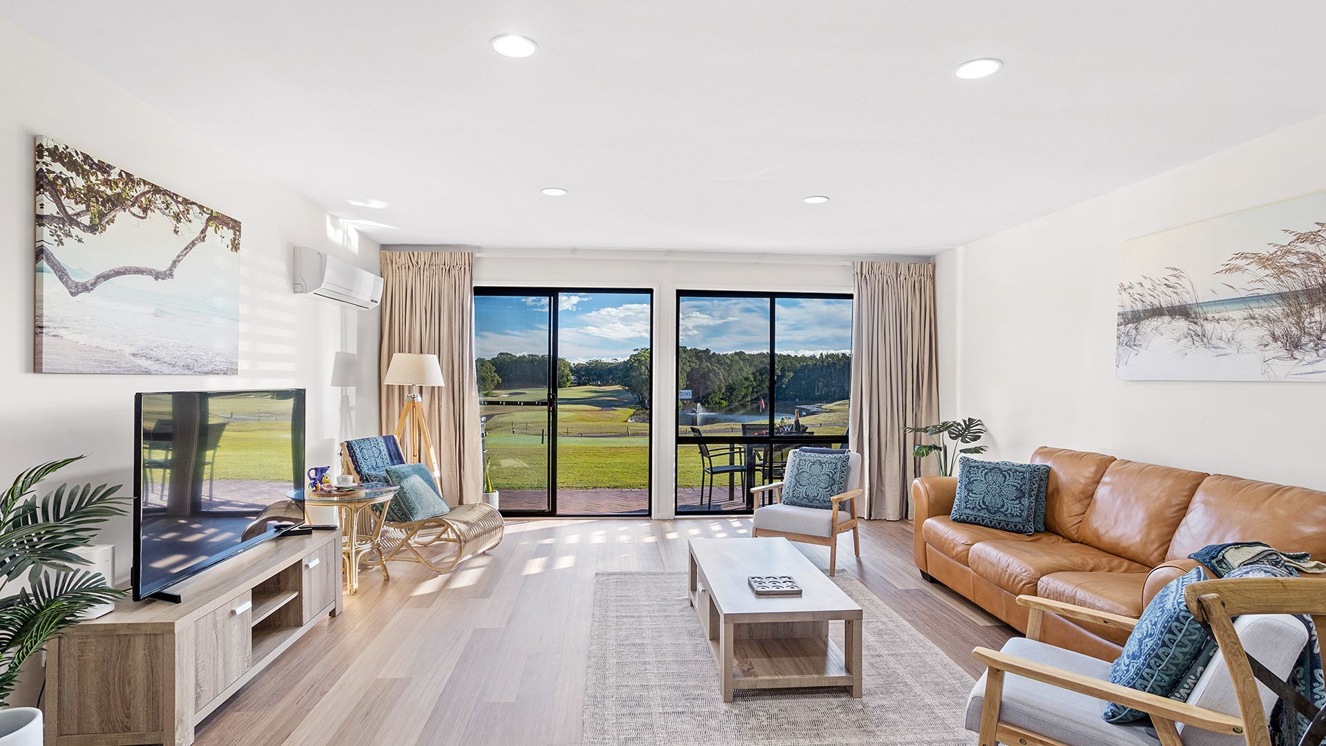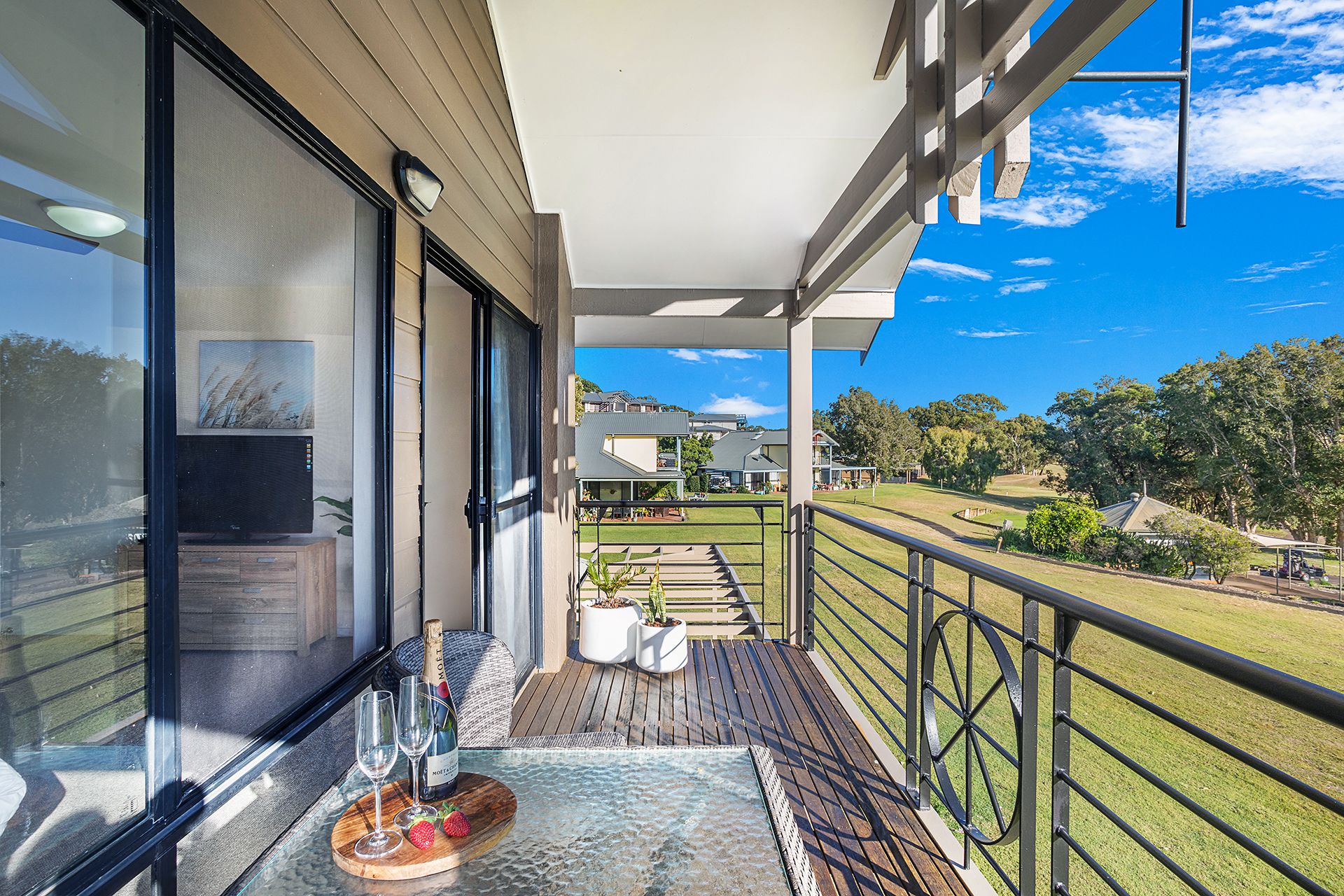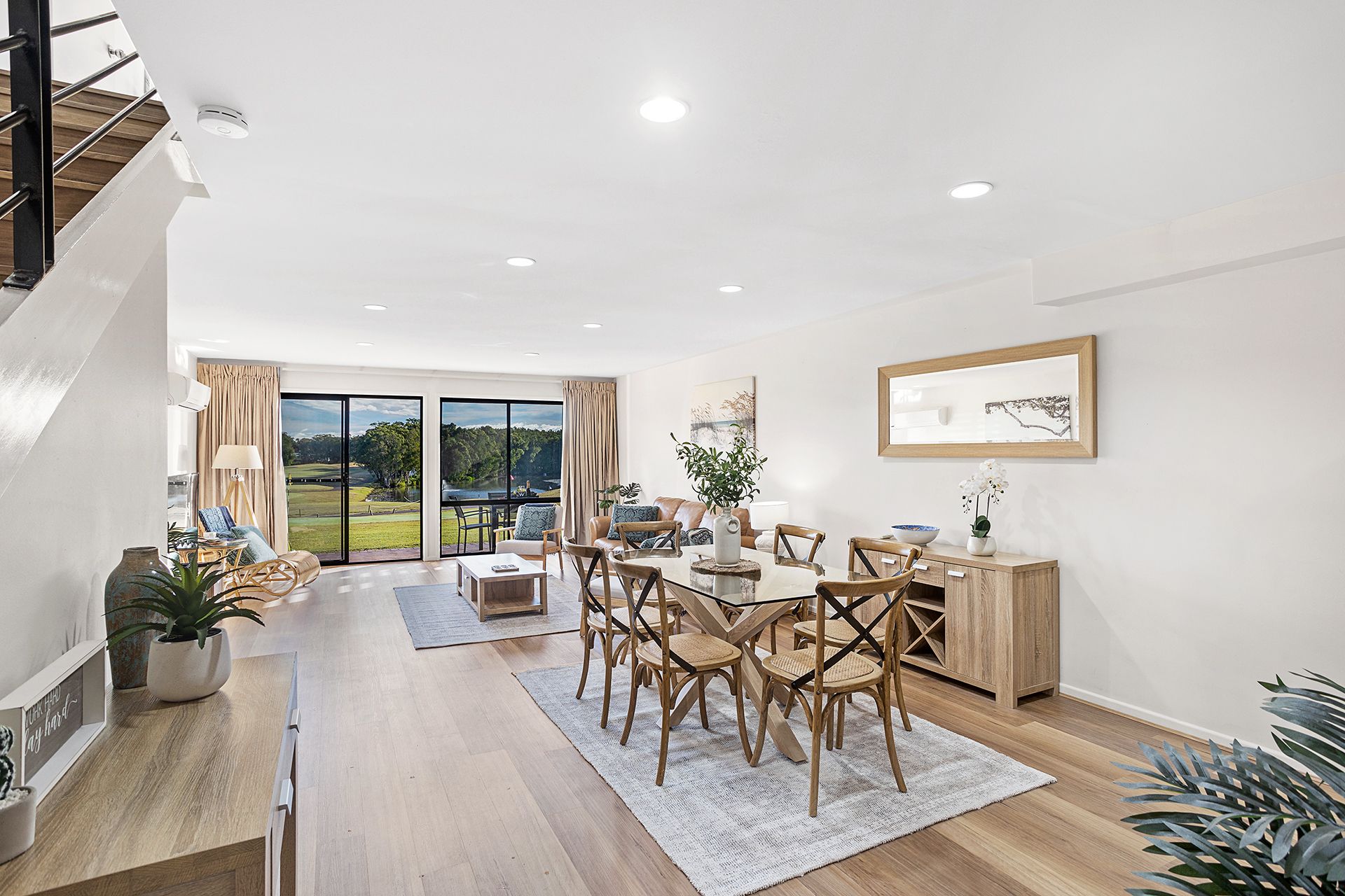 Fairway Views Townhouse sits right on the course offering spectacular, uninterrupted views of the 1st and 9th fairways, and is perfect for a golfing getaway or just a relaxing holiday. The lower level offers spacious open plan living, with split system air-conditioning, plenty of seating, Smart TV, free WIFI, a 6-seater dining table and a spacious kitchen with a full-size fridge/freezer, separate wine fridge, small cooktop, microwave and a Nespresso coffee machine.
