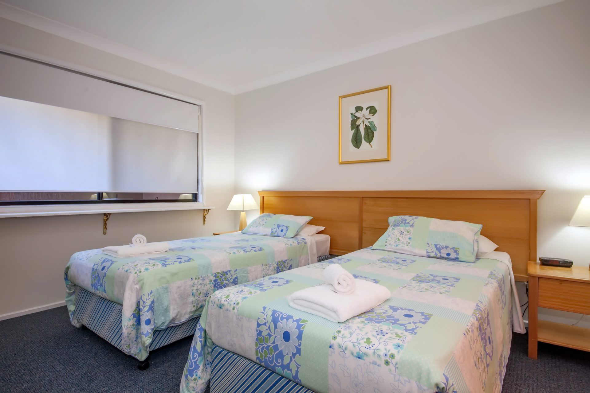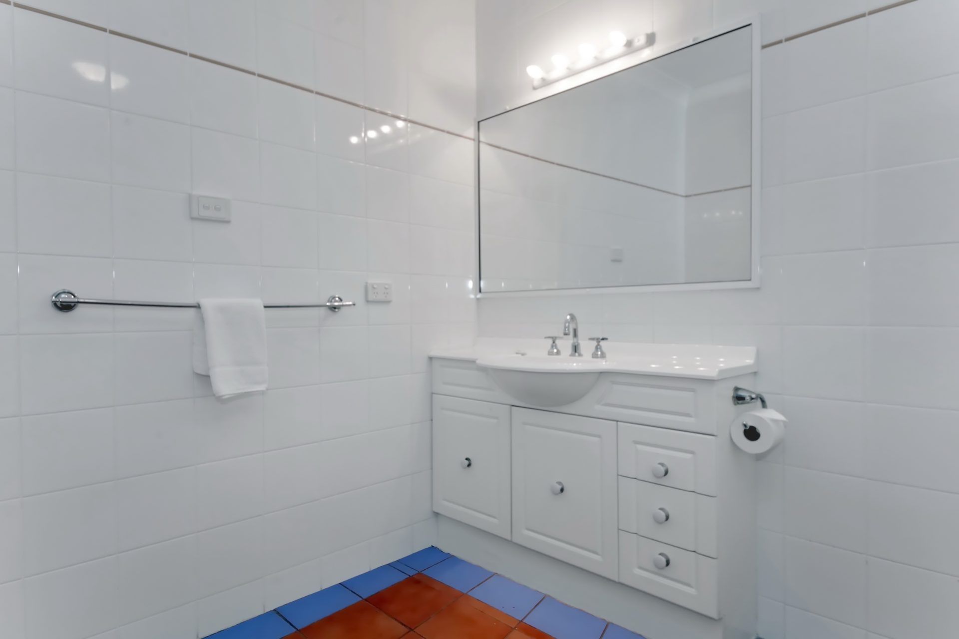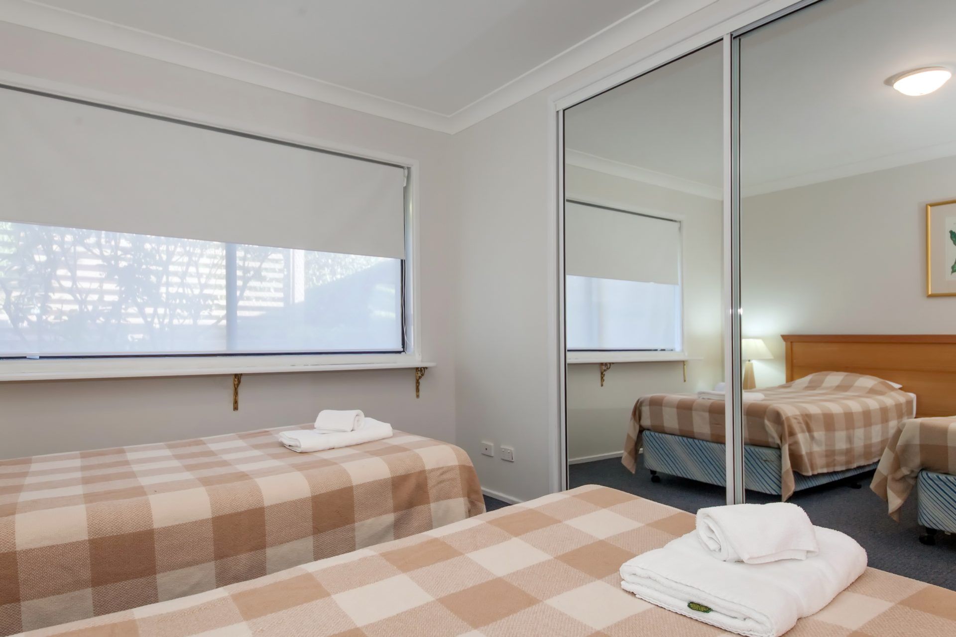 The open plan, air-conditioned living room features a flat screen TV, dining table and kitchen with a microwave, cooktop and full fridge. There are 2 bedrooms, one with 2 King Single beds and 1 with 1 King Bed (which can be split into 2 x King Single Beds) and two ensuites, each with a combined spa bath and shower. You also have access to an external shared laundry with washer and dryer and one off-street car space.