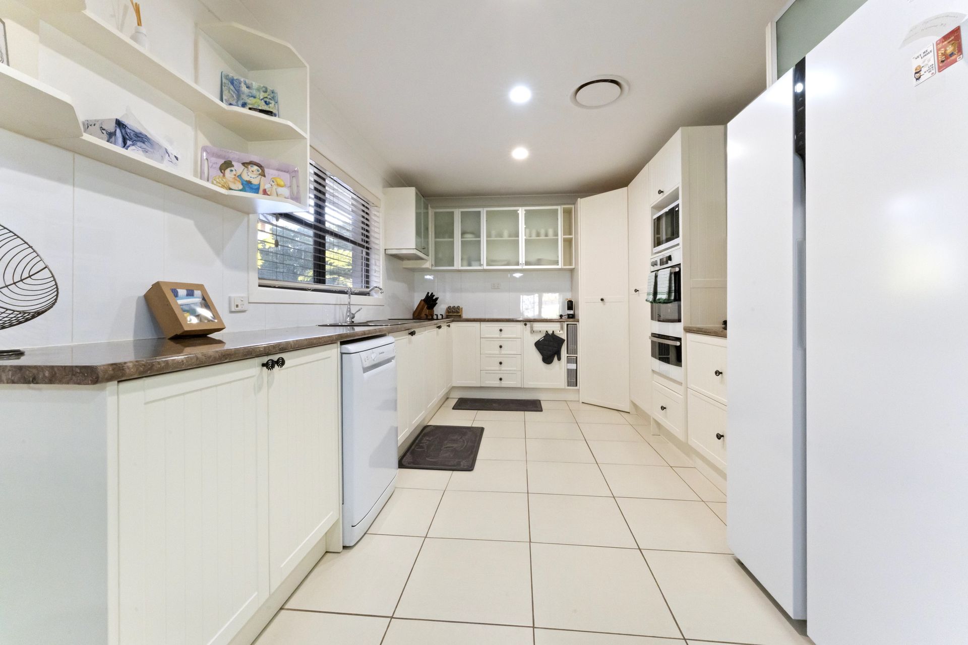 The property offers three comfortable queen bedrooms, all located on the ground floor and fitted with air conditioning, ceiling fans, and built-in wardrobes. The main bedroom includes a private en-suite, while additional bathrooms provide a mix of showers, bath, and separate toilet facilities—allowing convenience and privacy for all guests. Linen is provided for a hassle-free stay.