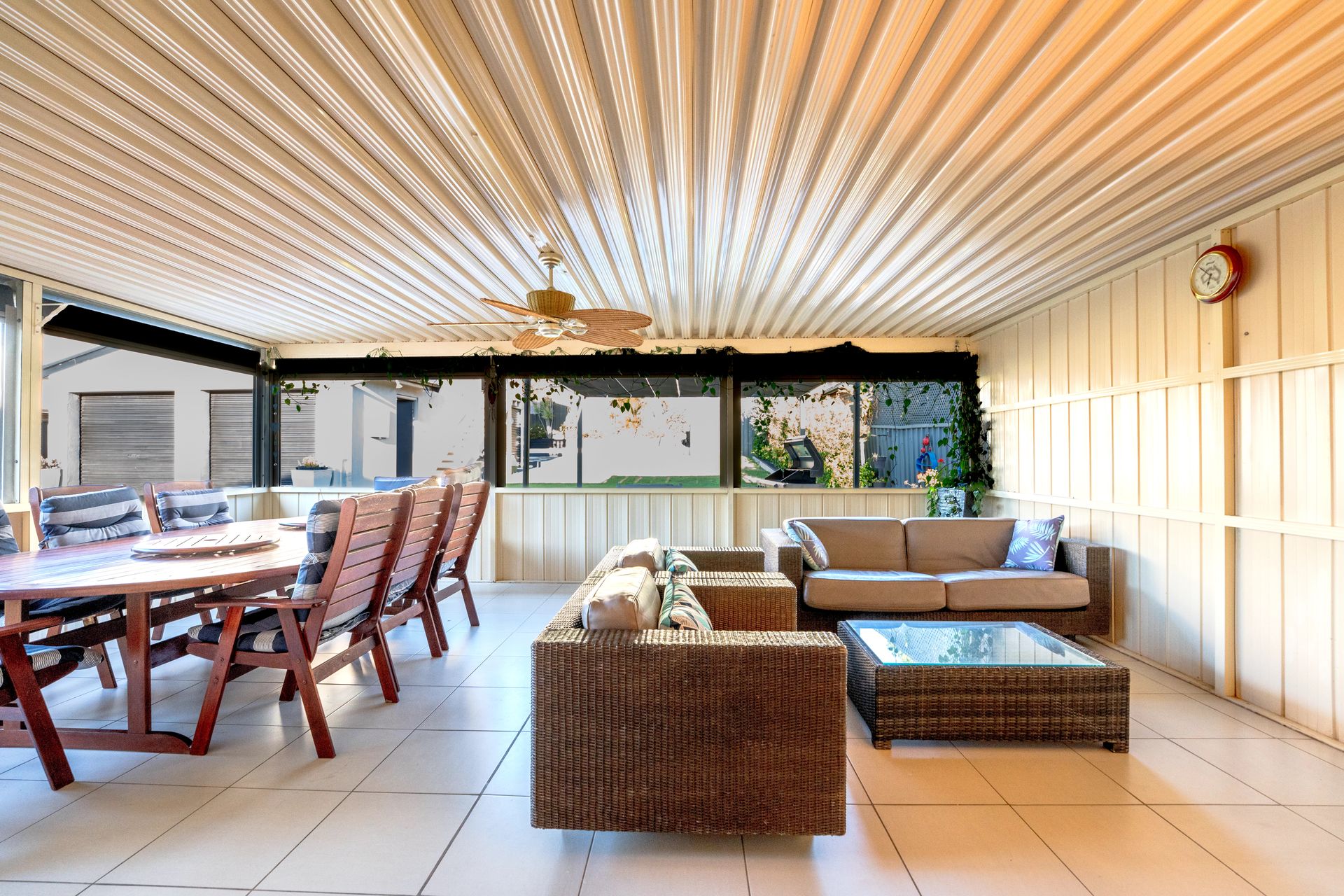 Outside, guests can enjoy a fully fenced and enclosed yard with a patio, courtyard, and BBQ area—ideal for outdoor dining. Additional features include an internal laundry with washing machine and dryer, electric hot water system, and ample parking with space for 3 cars, 2 secure garage spaces and boat parking (2 spaces). The property enjoys a peaceful rural outlook with no direct neighboring views.