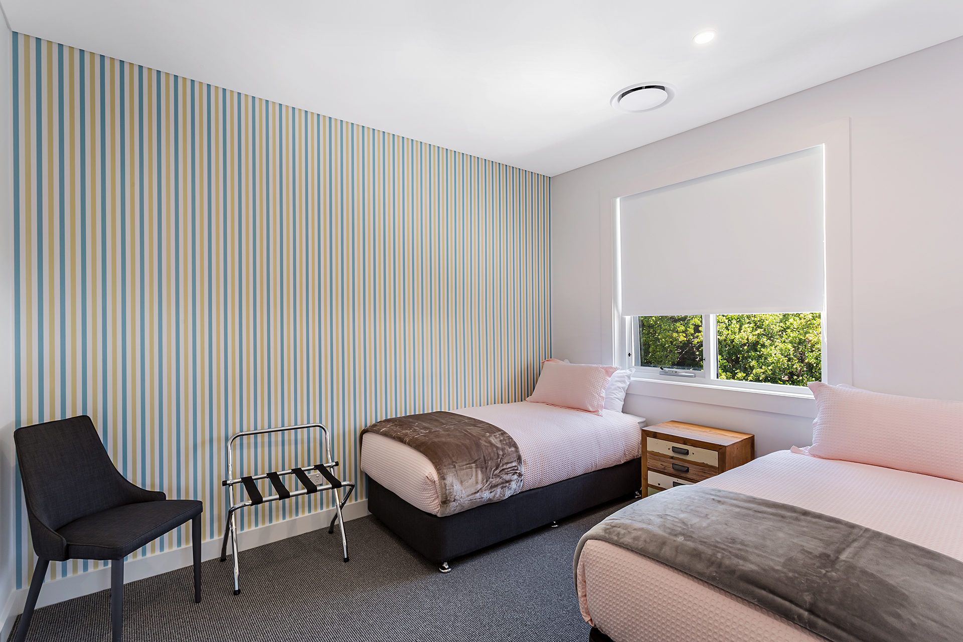 Upstairs you will find five bedrooms, three with king beds and two with two single beds in each. All bedrooms have ducted air-conditioning and beds will be made ready for your arrival with nothing but quality linen. There are also two bathrooms on this level with the main having an extra-large spa bath surrounded by glass windows yet made private with greenery boasting ultimate relaxation..