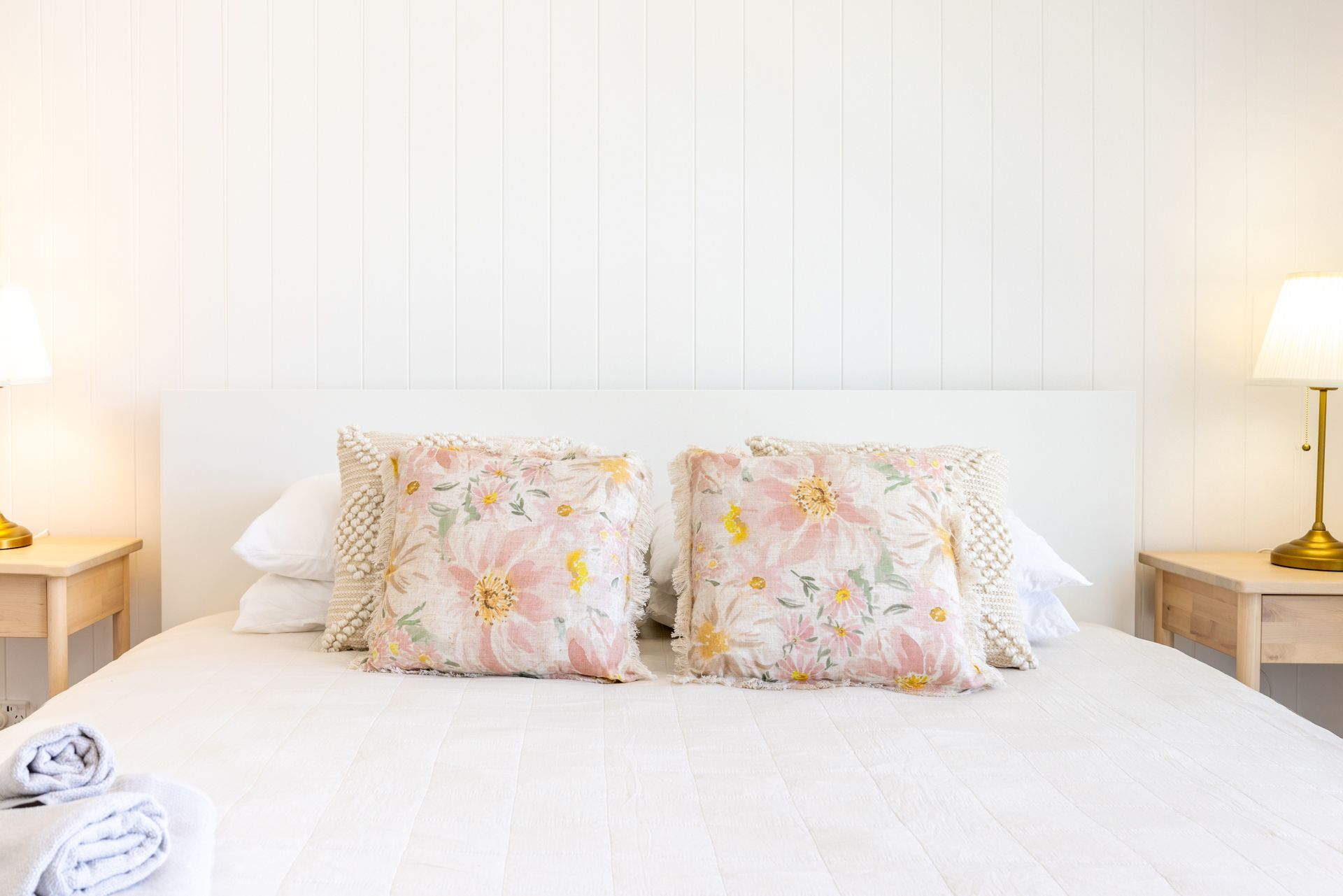 Nordic House consists of Nordic Gardens downstairs, which sleeps total of 5 guests (with a maximum of 4 adults), and Nordic Retreat upstairs, which sleeps 4 guests. Both units are fully equipped and have separate entrances. As soon as you step inside, you'll be greeted by finely furnished bedrooms with ceiling fans and generous bed sizes. Linen and bed-making services are provided to ensure a peaceful night’s sleep for all. A port-a-cot and highchair are also available for guest convenience. Enjoy your morning coffee from the comfort of your own balcony or patio while taking in Shoal Bay’s refreshing morning breeze. Each level boasts a brand-new bathroom with walk-in showers and rainwater shower heads, providing ample space for relaxation and personal care.
