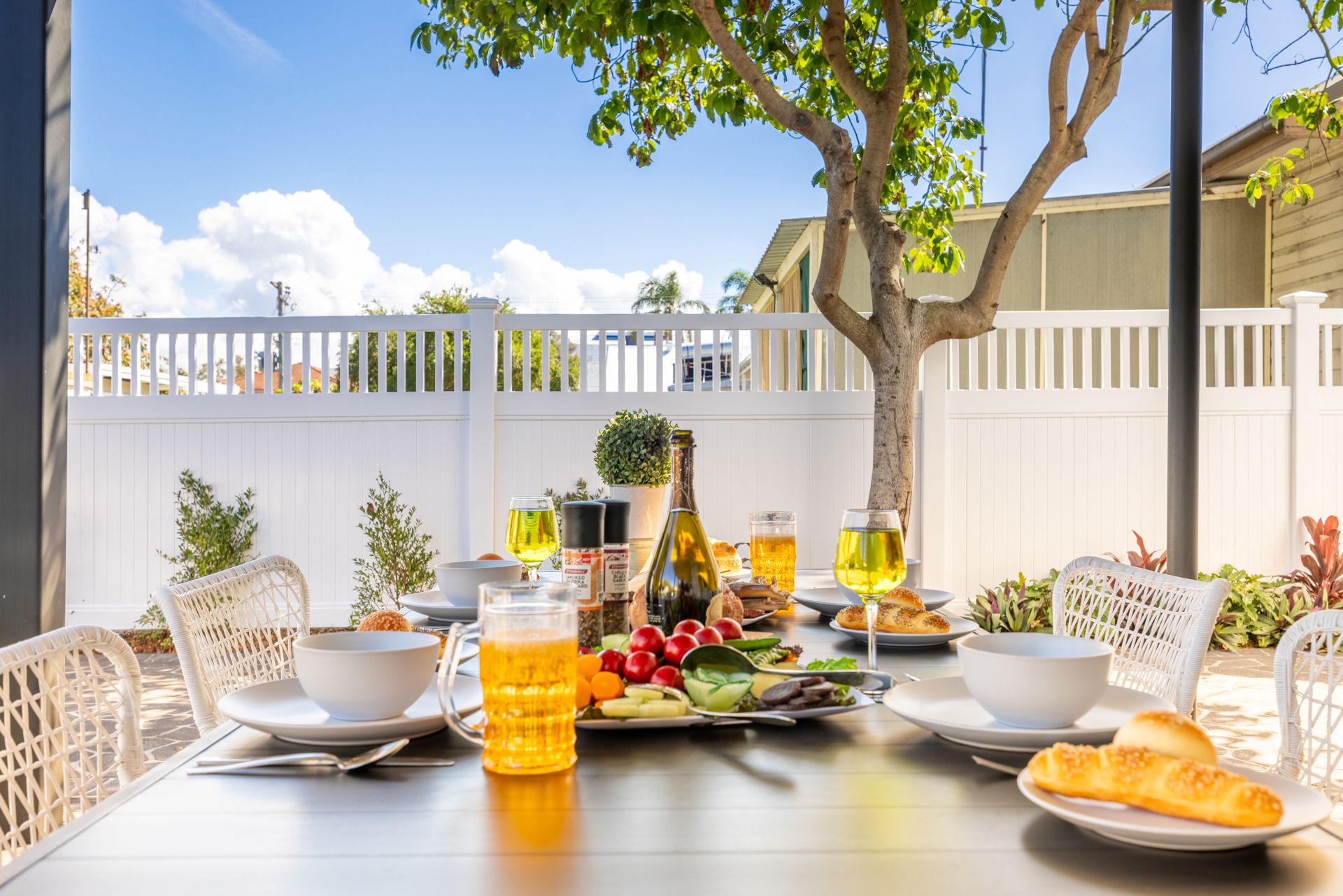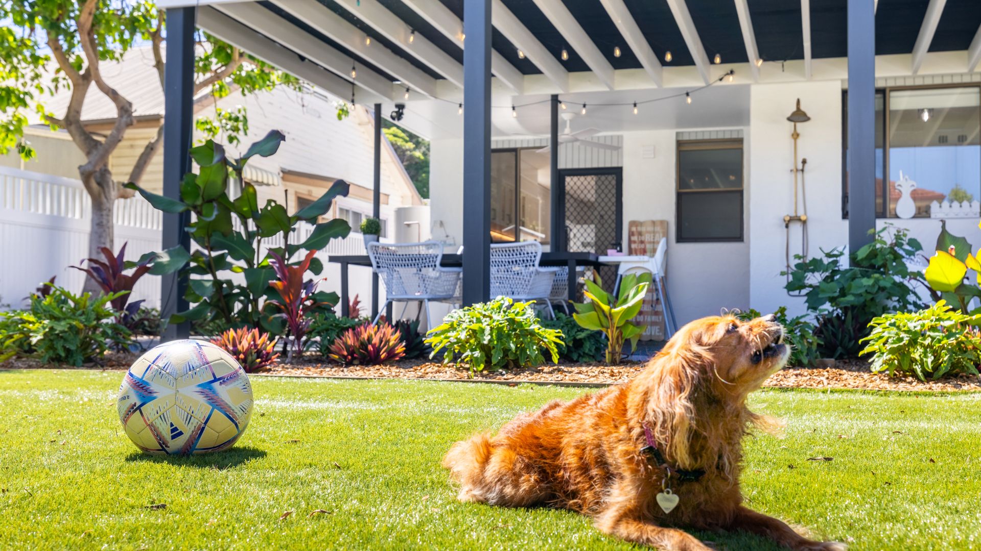 The property is equipped with reverse-cycle split system air conditioning, ensuring comfort in every season. If you love cooking, you’ll appreciate the fully equipped kitchen upstairs and the kitchenette downstairs, both featuring modern appliances. The upstairs kitchen includes an under-bench oven, induction cook top, dishwasher, family-sized fridge/freezer, microwave, and coffee machine. Downstairs, you’ll find a portable induction cook top, dishwasher, family-sized fridge/freezer, microwave combo, and Nespresso coffee machine. Both apartments come with a gas BBQ, perfect for grilling dinner under the stars. Stay entertained with multiple Smart TVs and free unlimited Wi-Fi, or unwind in the outdoor area featuring a fully enclosed garden—fantastic for pets—and an outdoor hot and cold shower. Outdoor furniture is also provided. Laundry is no hassle with a top-loader washing machine available for your use. Parents will appreciate the child-friendly environment, and yes, your furry friend is welcome!!