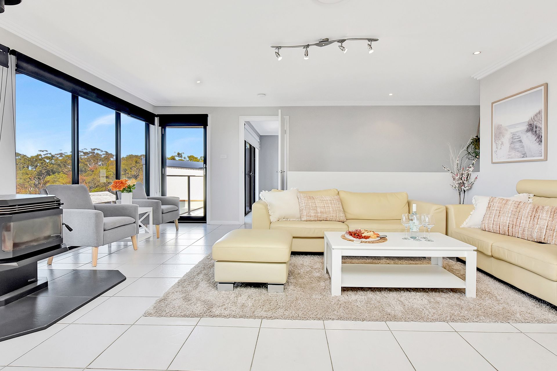 Trips from the bush to the beach call for a well-nourished group, so the fully equipped kitchen with complete cooking facilities including an electric cooktop, under bench oven, microwave, dishwasher, and lavish stone benchtops to prepare all your culinary endeavours. Gather loved ones in the spacious dining area or cook up a storm in the outdoor alfresco BBQ and kitchen on the balcony, boasting elevated water views of the surrounding waterways. The entertainment and relaxation hotspots of the property include a garden for the kids to run free and a Smart TV in the back lounge room for movie nights. Ducted reverse cycle air-conditioning throughout ensures comfort in all weather conditions, while the fireplace in the front main living area provides extra warmth and a perfect setting for intimate conversations during winter.