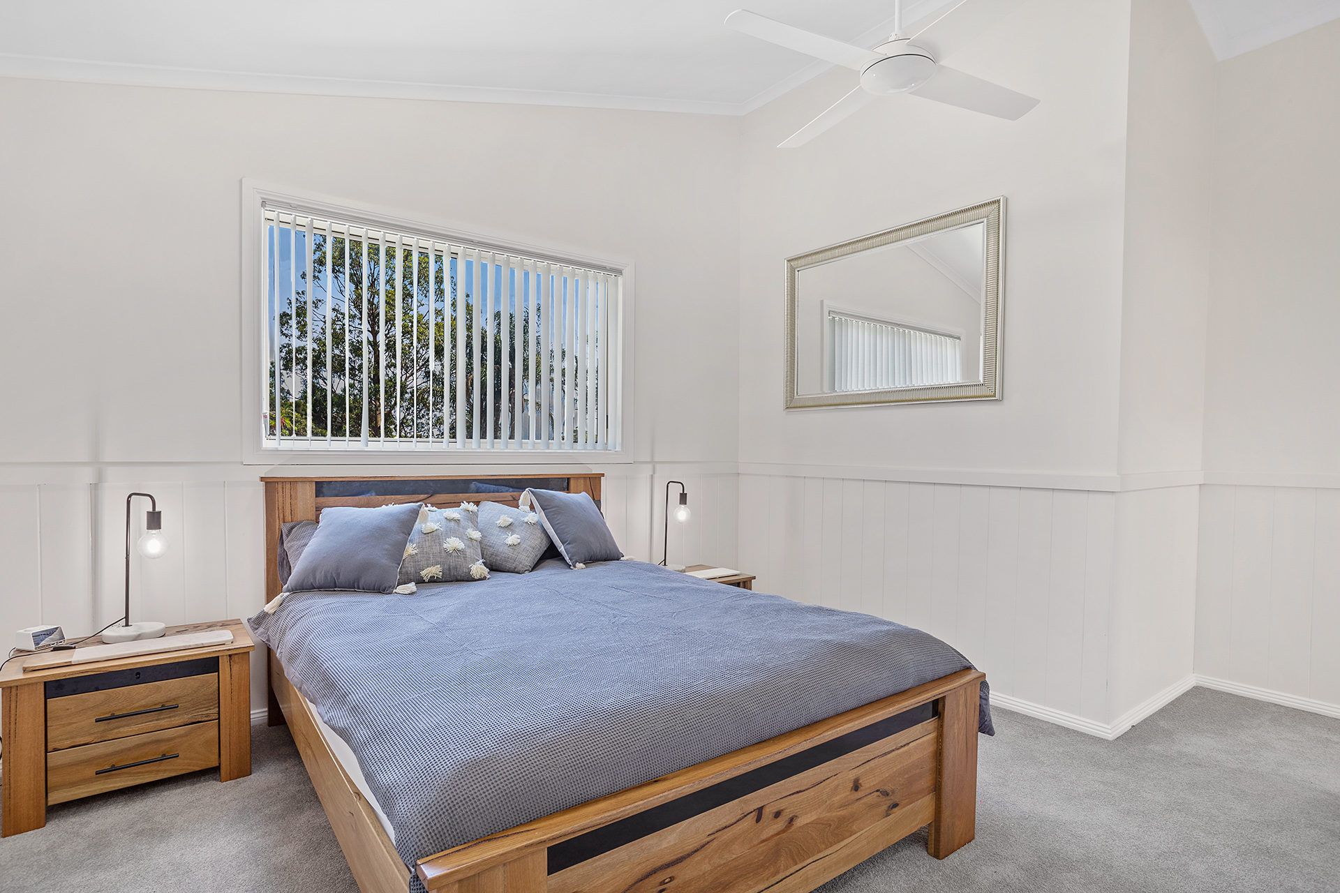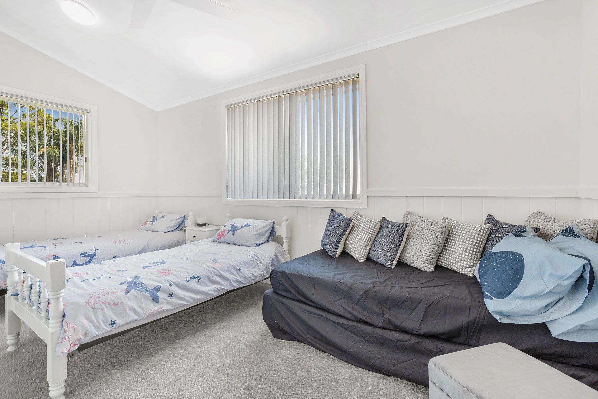 There are three carpeted bedrooms upstairs, all with ceiling fans. The master suite has a queen size bed and offers an en-suite. The other two bedrooms provide two single beds in one and a tri-bunk in the other. The main three way bathroom offers a large bath and shower.