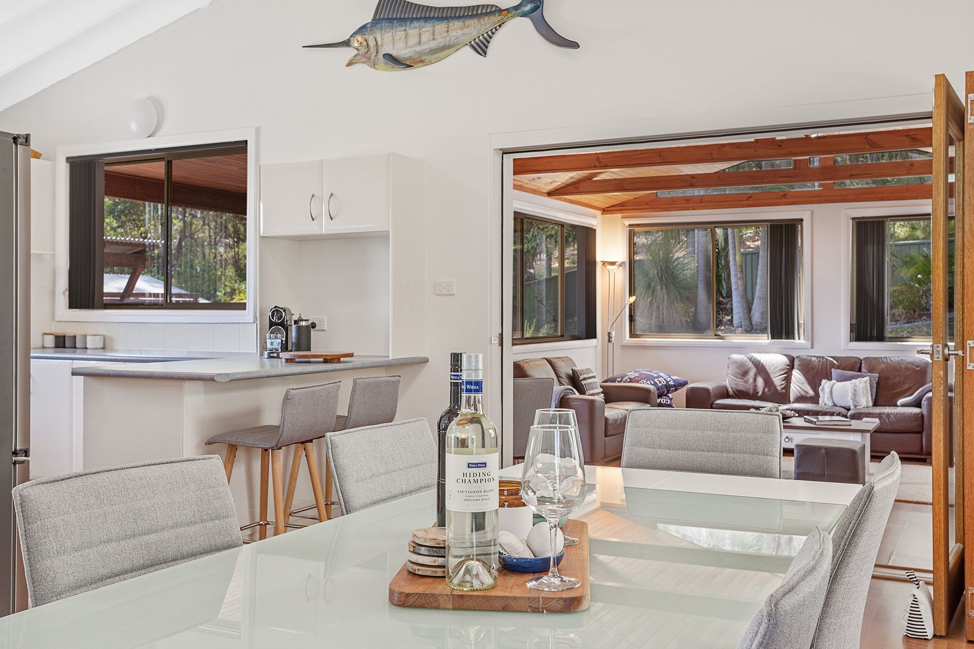 The Location - The property is situated on the edge of Tomaree National Park. From the back yard there is private access to National Park walking trails, turn left and the track takes you to Box Beach (9 min walk), Wreck Beach, Stephens Peak, Shoal Bay Shopping Village/Cafe's (20 min walk), Shoal Bay Beach and also Tomaree Mountain. If you turn right, the track takes you to the Fingal Spit, Fingal Island and the concrete bike/walking track to Fingal Bay. Box Beach is the closest beach and only 700m away, it is a picturesque unpatrolled beach that offers amazing views of the Pacific Ocean. If you are seeking patrolled beaches Fingal Beach is only 1.6km away where you will find a lovely reserve with a playground, picnic tables, BBQ's and an off leash dog exercising area. There is a lovely cafe and restaurant upstairs at the surf club. Shoal Bay offers a selection of shops, restaurants and cafes as well as a pristine sandy beach.