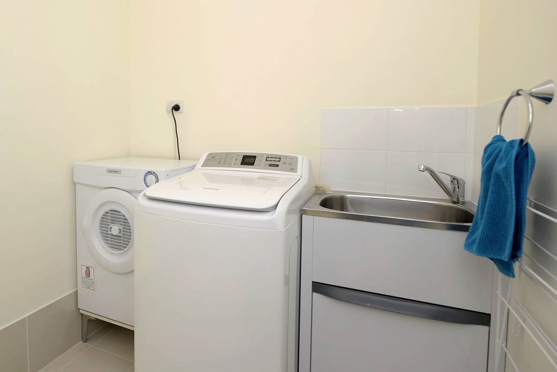 Other features include a Nespresso Vertuo coffee pod machine, and a limited supply of pods will be provided. Full laundry facilities, including a washing machine, dryer, and an outdoor clothesline, are also available. Additionally, there is a double lock-up garage, as well as driveway parking.