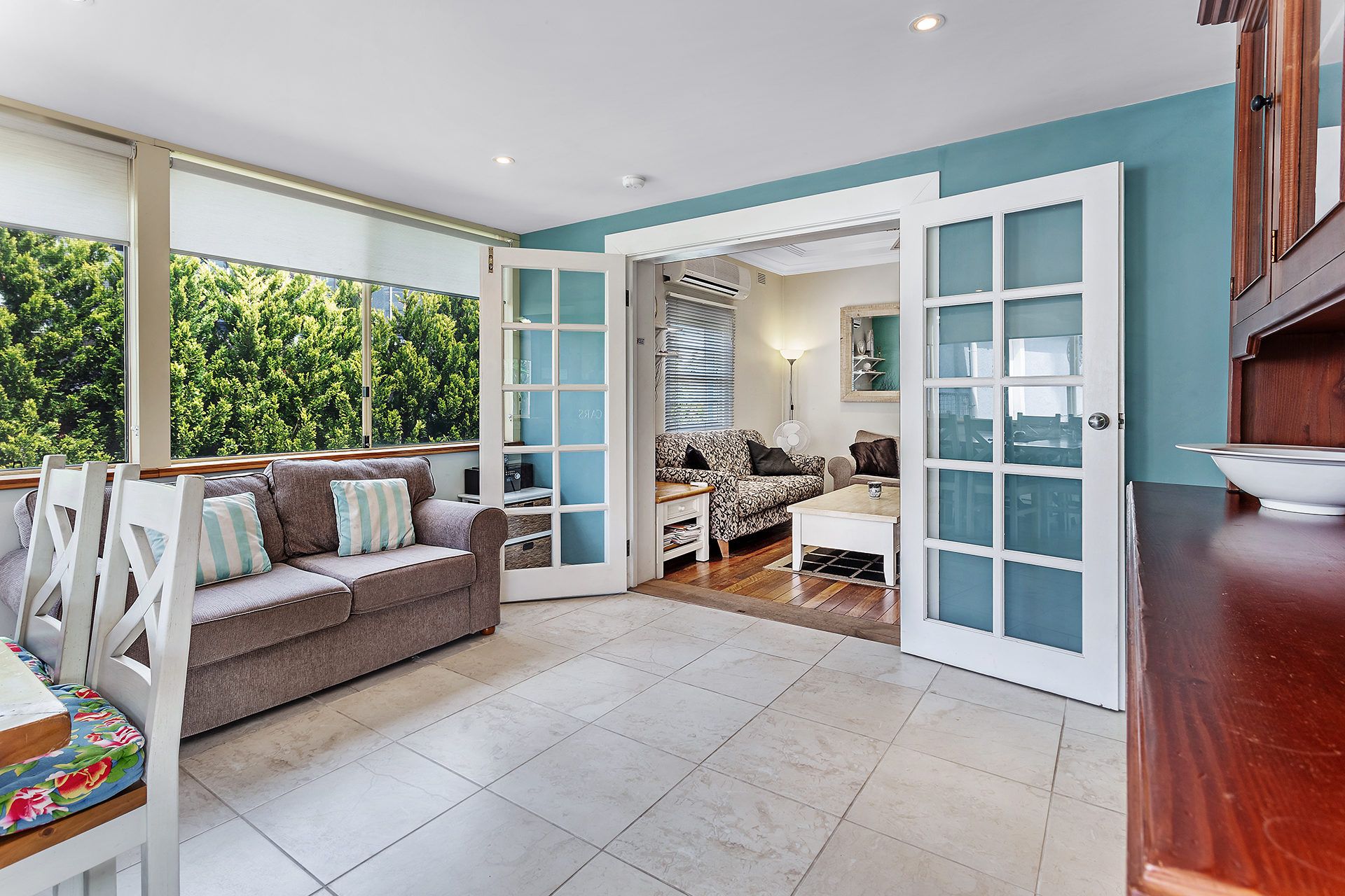 The House - This pet friendly cottage is full of character and offers a unique combination of old world charm with modern sophistication. The main lounge room area features floor boards, split system air conditioning, a large plasma screen TV, DVD player and ceiling fans. The second living area is off the main lounge through the French Style interior doors. There is an open plan dining/kitchen area, fully equipped kitchen with dishwasher, stove top, oven, stainless steel fridge and plenty of bench space to prepare meals. Step out the double doors to the rear paved patio area which has a 4 burner gas BBQ, outdoor setting and outdoor shower. There is also an outdoor table and chairs located on the front porch to bask in the afternoon sun and absorb the wonderful water views. Your pets are welcome.