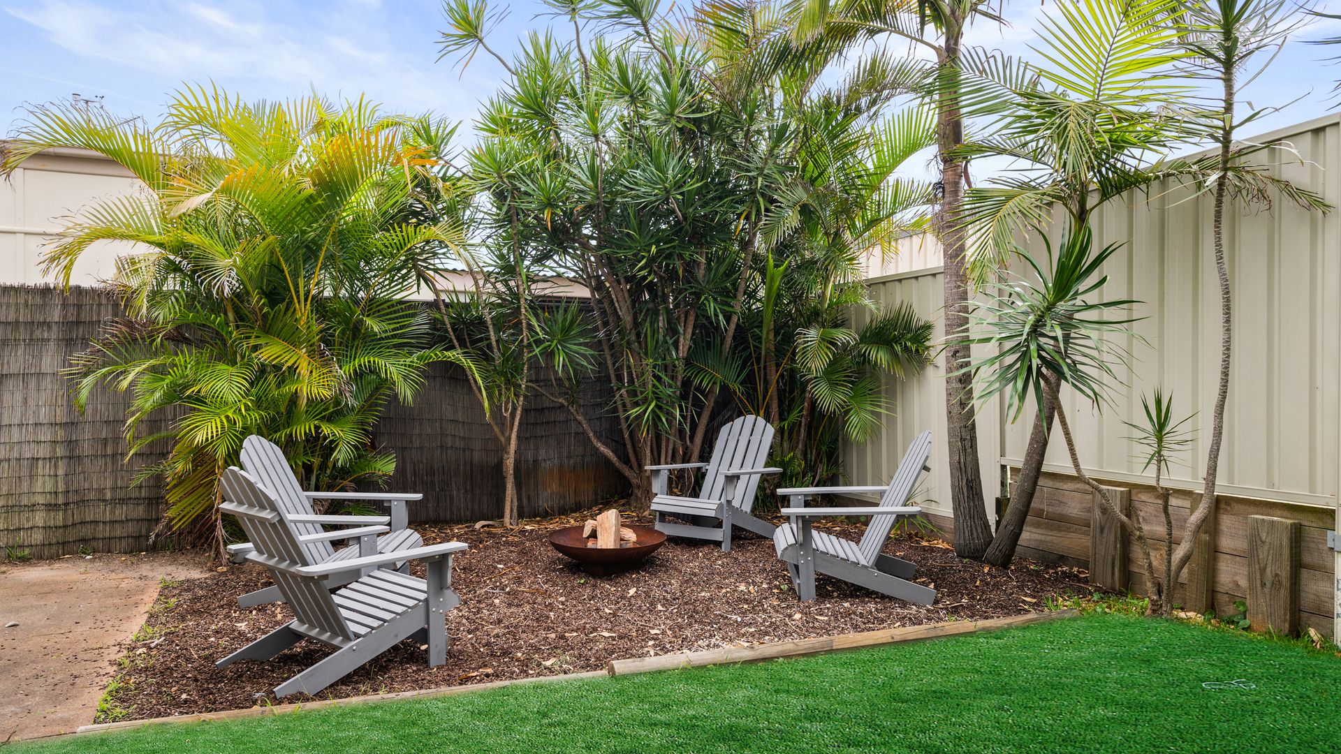 Outside you have a large undercover alfresco entertaining area with a BBQ and dining setting for you to enjoy and entertain with. There is lots of grassed space for the children to run around as well as a cosy fire pit area for you to use and enjoy the outdoors.