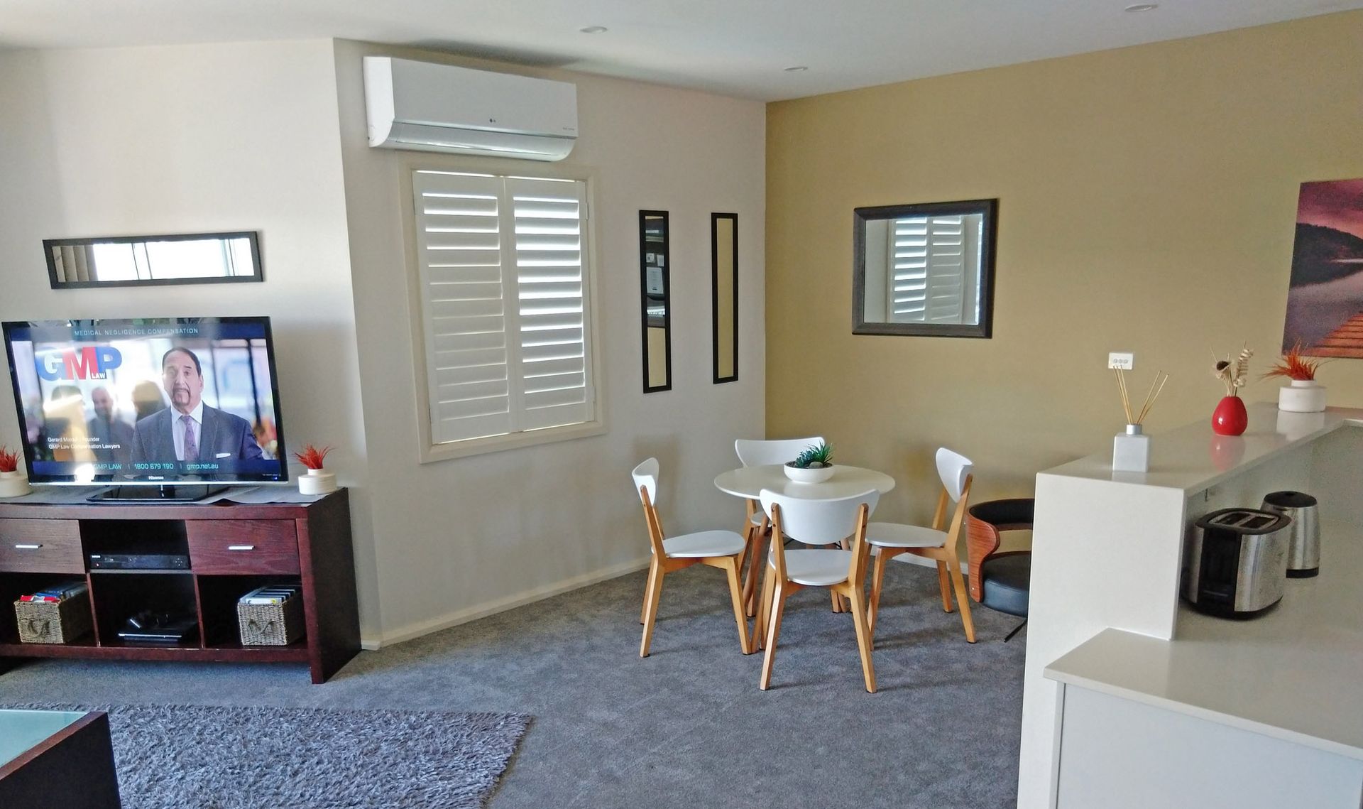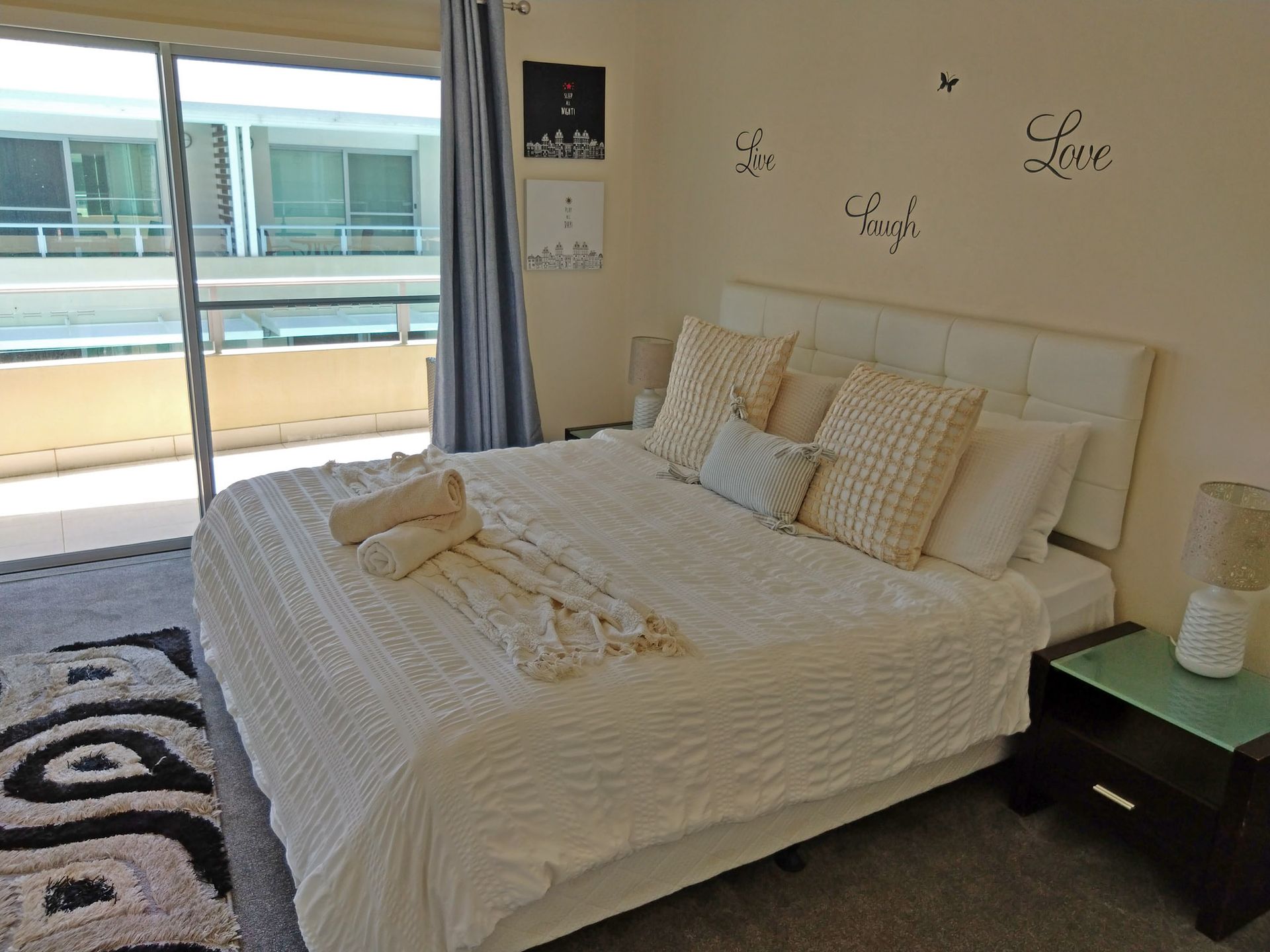 The Apartment - A modern, spacious, open plan, north facing apartment overlooking the lagoon pool. Living room has a split system an air conditioner, lounge facing the 3D TV (BYO 3D glasses), multimedia player (DVD/Blu-ray/CD), a mini stereo with a dock for iPod/iPhone, lounge. There is a refurbished eat-in kitchen (dishwasher, microwave, cooktop, oven, fridge & coffee pod machine) (BYO Aldi pods).