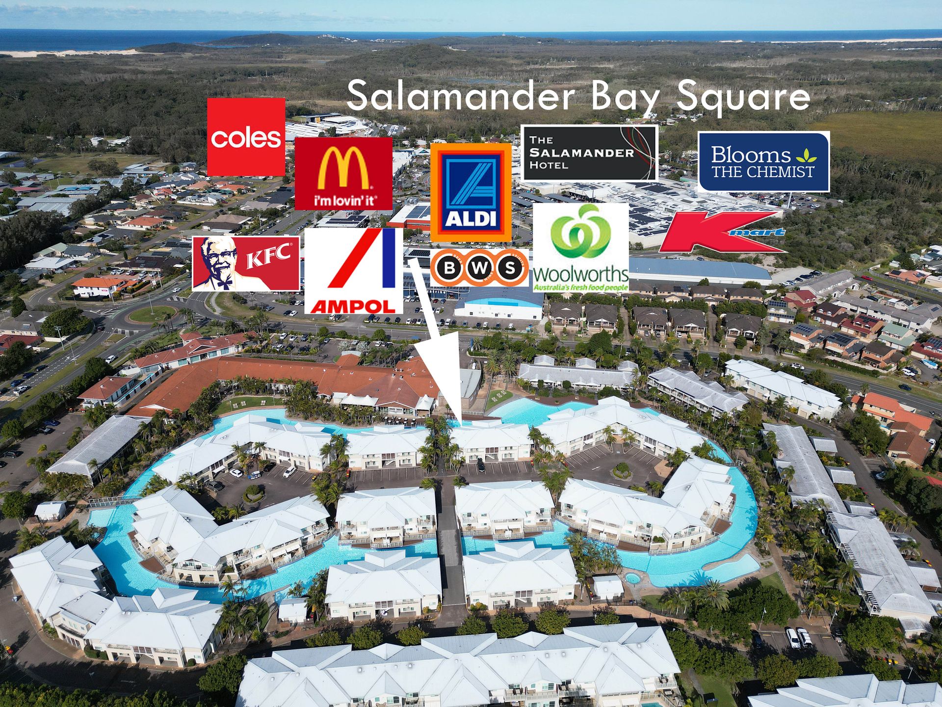 100 m to Salamander Bay shopping complex