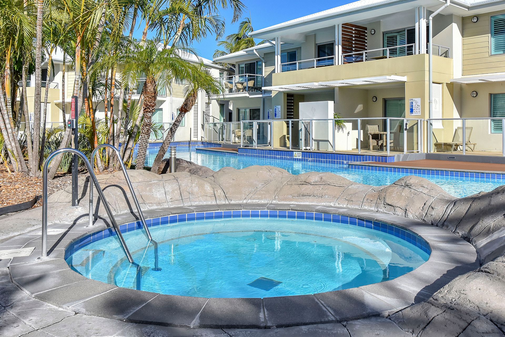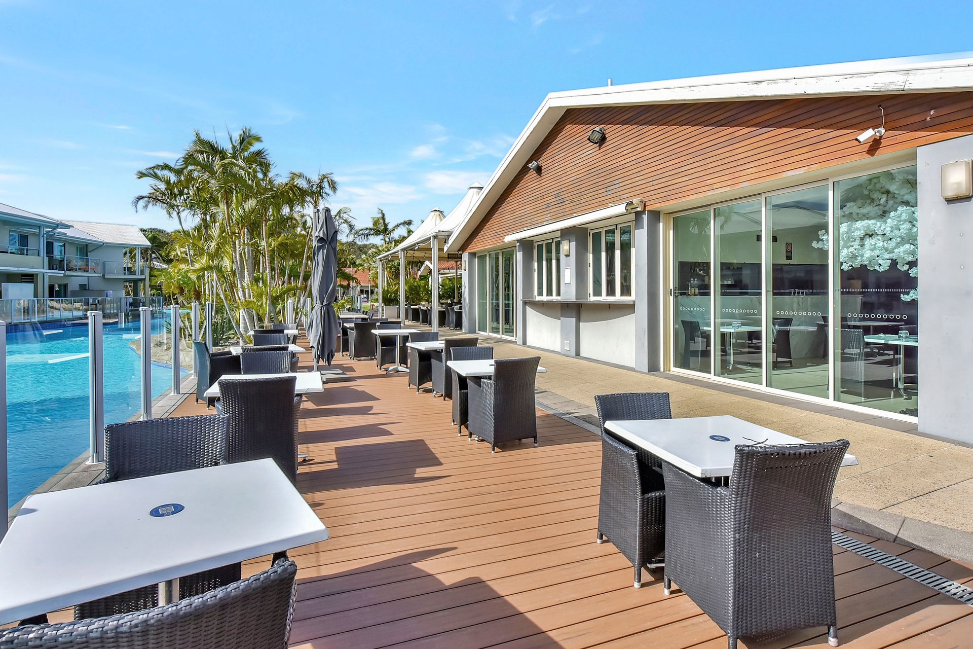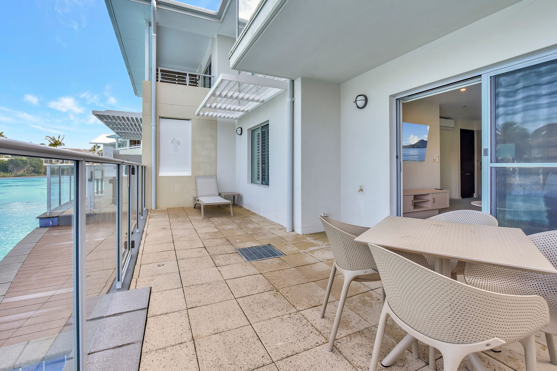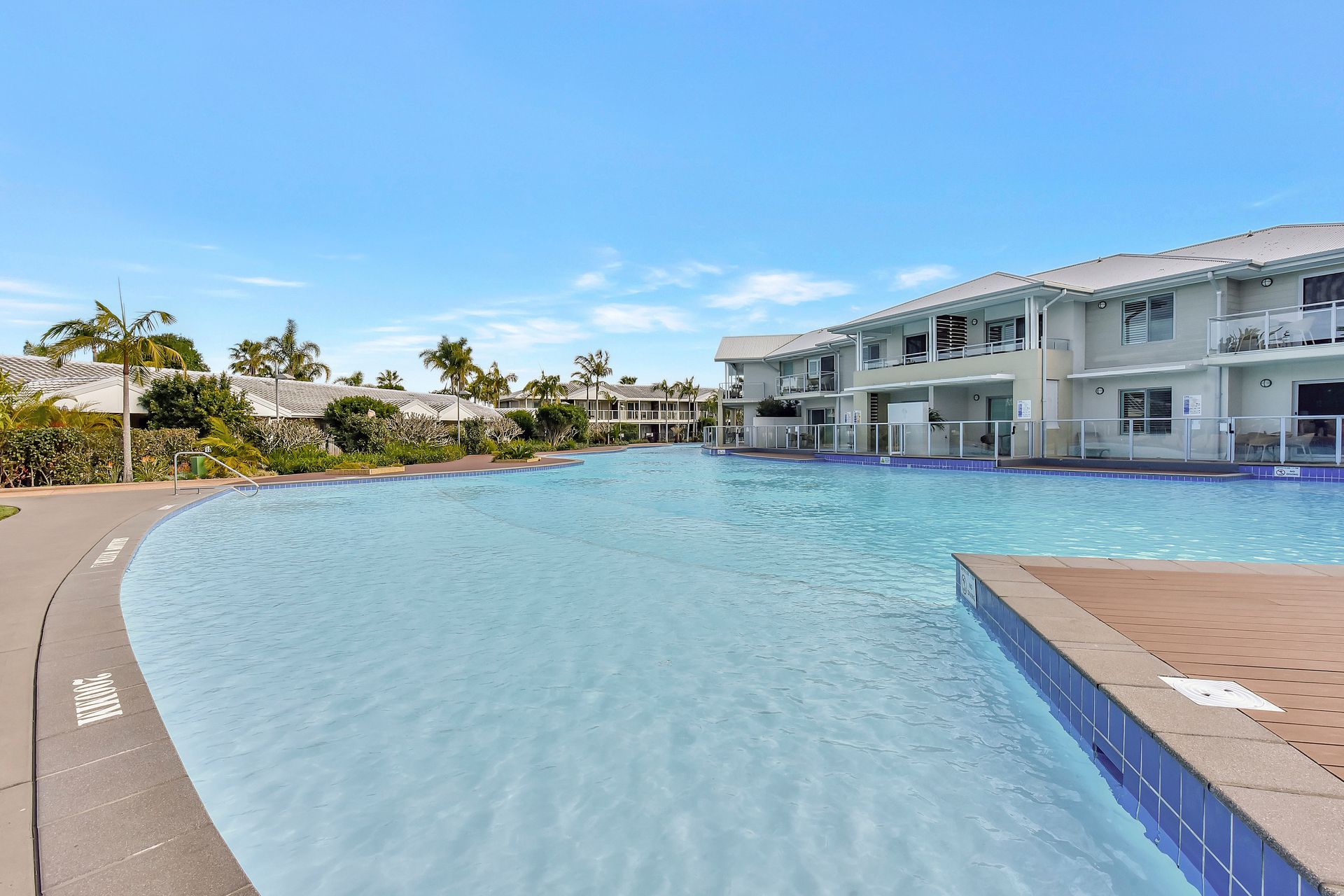 Step inside to a fully equipped kitchen with modern appliances. The open lounge area features a sofa bed, smart TV, and Wi-Fi throughout, along with seamless access to the poolside deck offering direct swim-up access. You’ll also find an internal laundry with both a washer and dryer for added convenience. Resort facilities include a lagoon-style pool, spa, and tennis court, all set within a secure, well-maintained environment with two off-street parking spaces