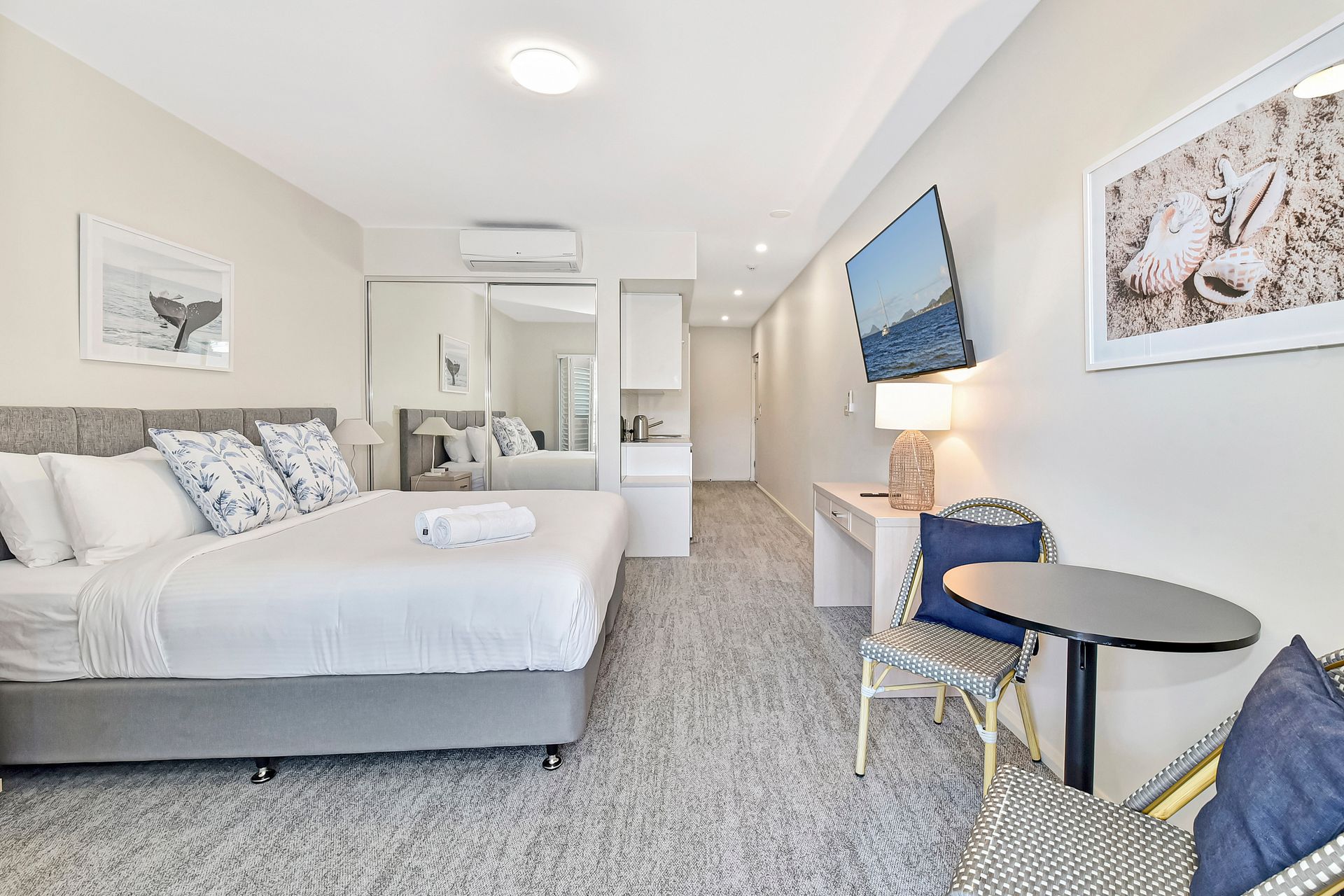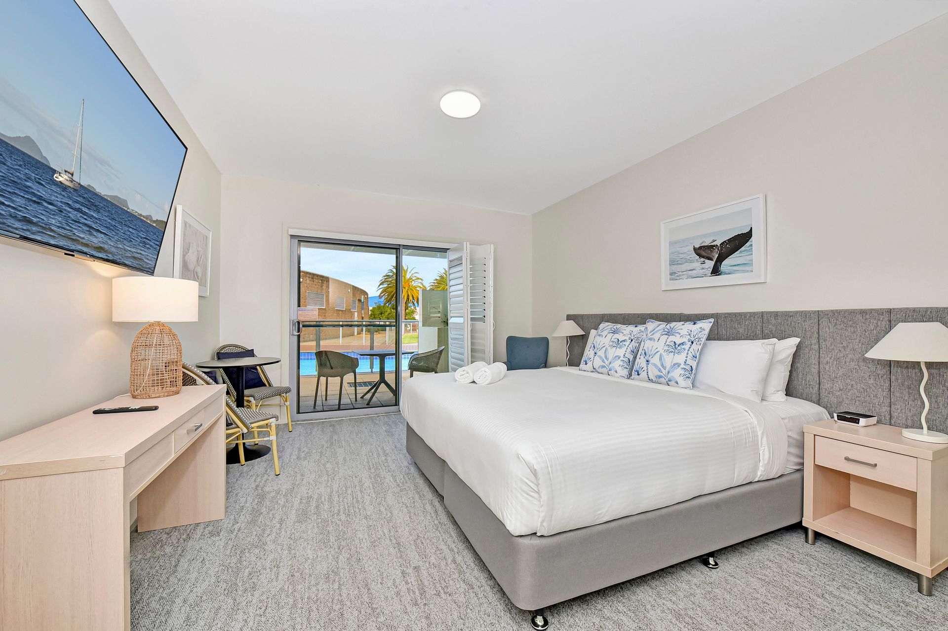 Bedroom 1 : King Split, Television, Study Desk, Air Conditioning, Balcony Access, Courtyard Access, Built In Robe, Private