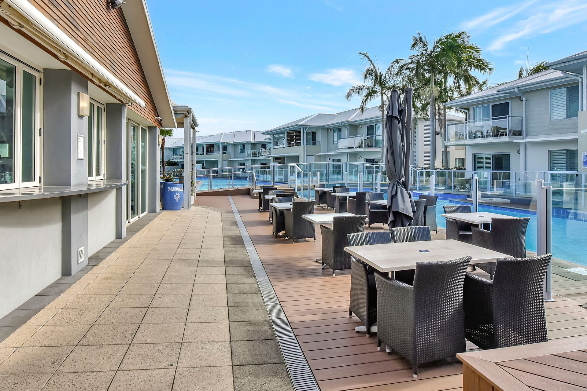 Step inside to a fully equipped kitchen with modern appliances. The open lounge area features a sofa bed, smart TV, and Wi-Fi throughout, along with seamless access to the poolside deck offering direct swim-up access. Resort facilities include a lagoon-style pool, spa, and tennis court, all set within a secure, well-maintained environment with two off-street parking spaces