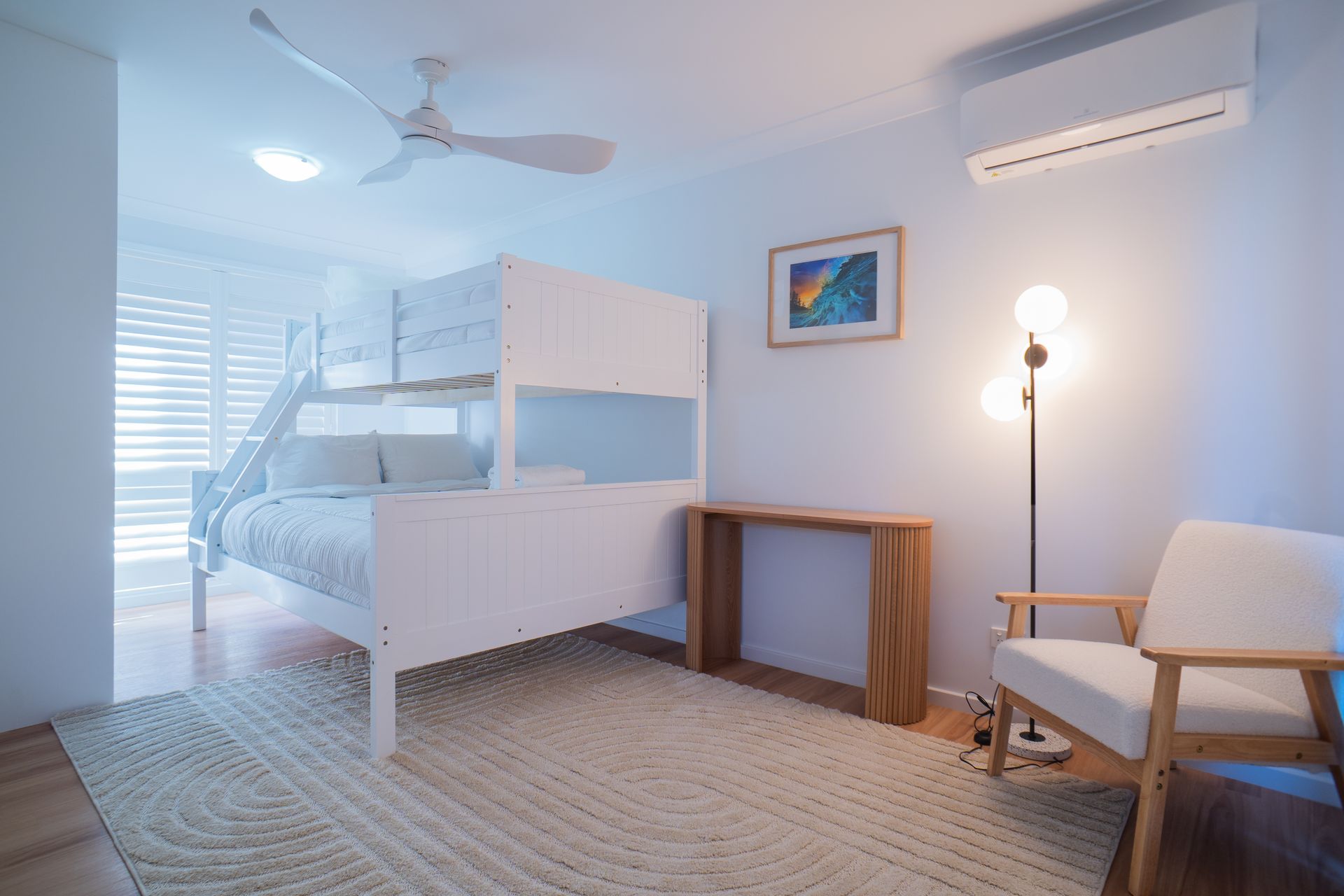 Bedroom 1 : King Single Over Queen, Study Desk, Air Conditioning, Courtyard Access, Built In Robe, Ceiling Fan