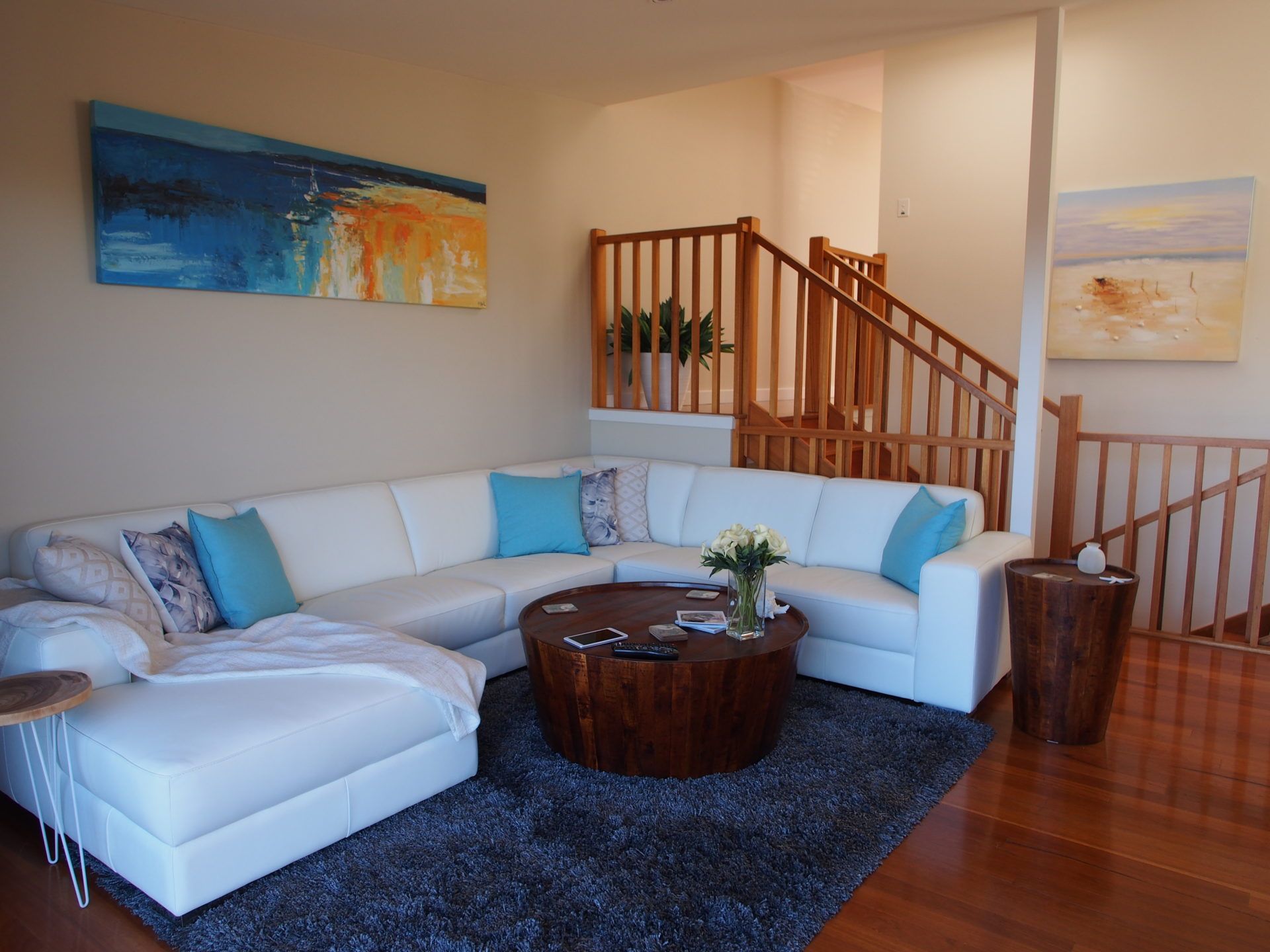 The Duplex - 'Pollys' View,' 117a Government Road is an architecturally designed property spanning four levels and with three balconies to take in the views or just chill. The living areas include separate lounge and family rooms with LED TV's (and a powder room). The lounge has a 65 inch Smart TV with access to Foxtel, Netflix and a sound bar to wirelessly stream music. The gourmet kitchen is ideal for cooking enthusiasts, fitted with an induction cook top, multi function oven, microwave, Nespresso coffee machine (limited pods supplied only) and a filtered drinking water system.