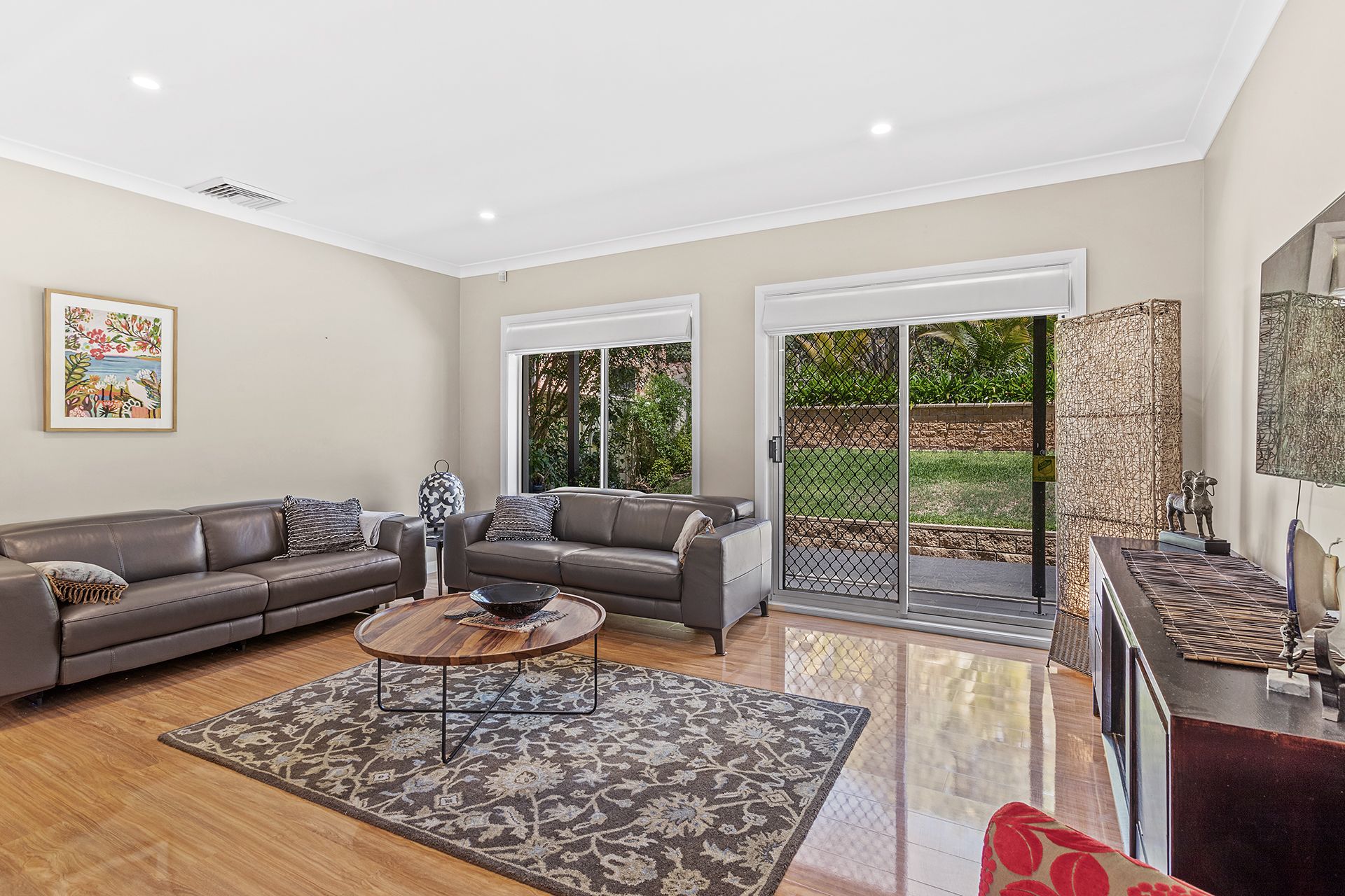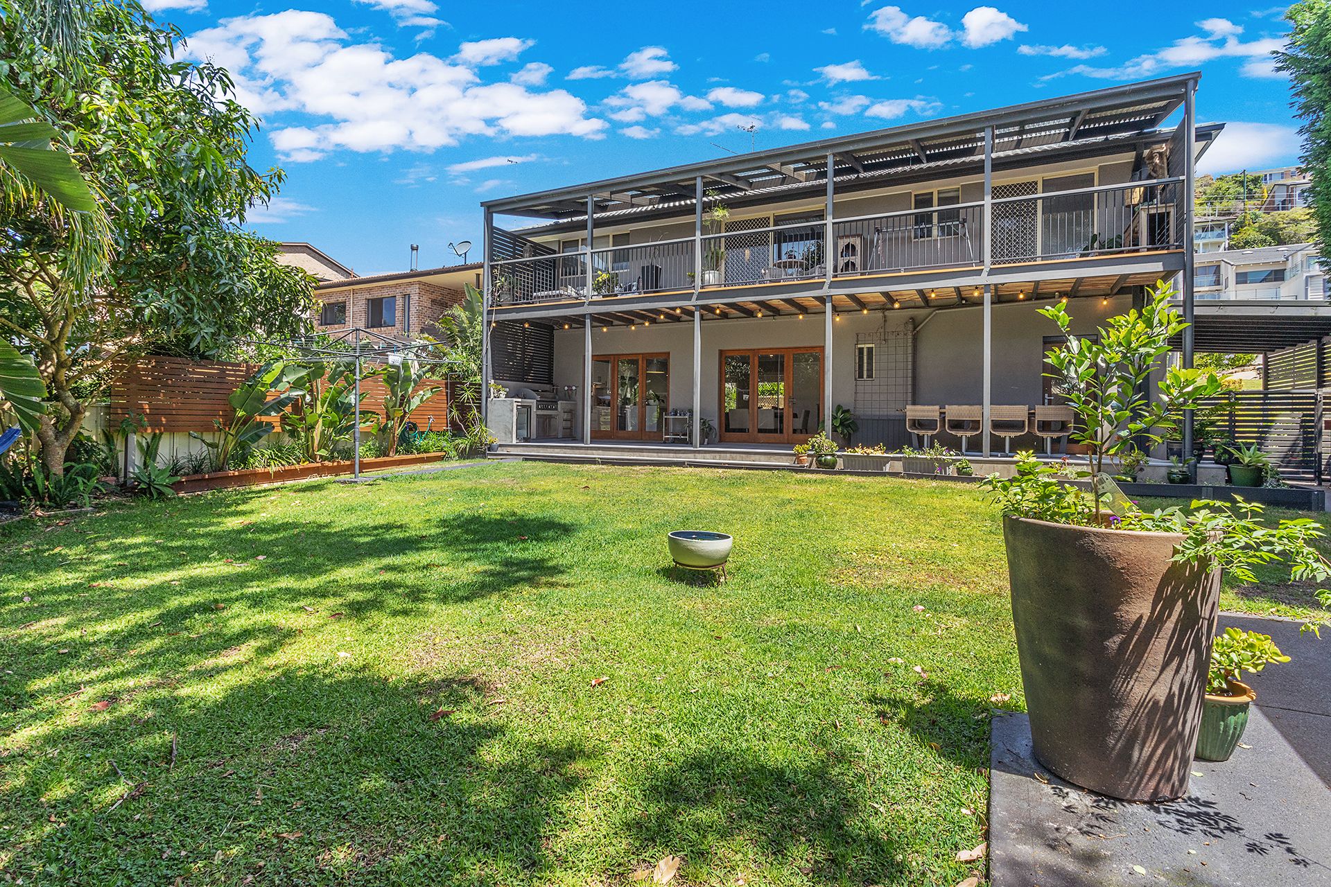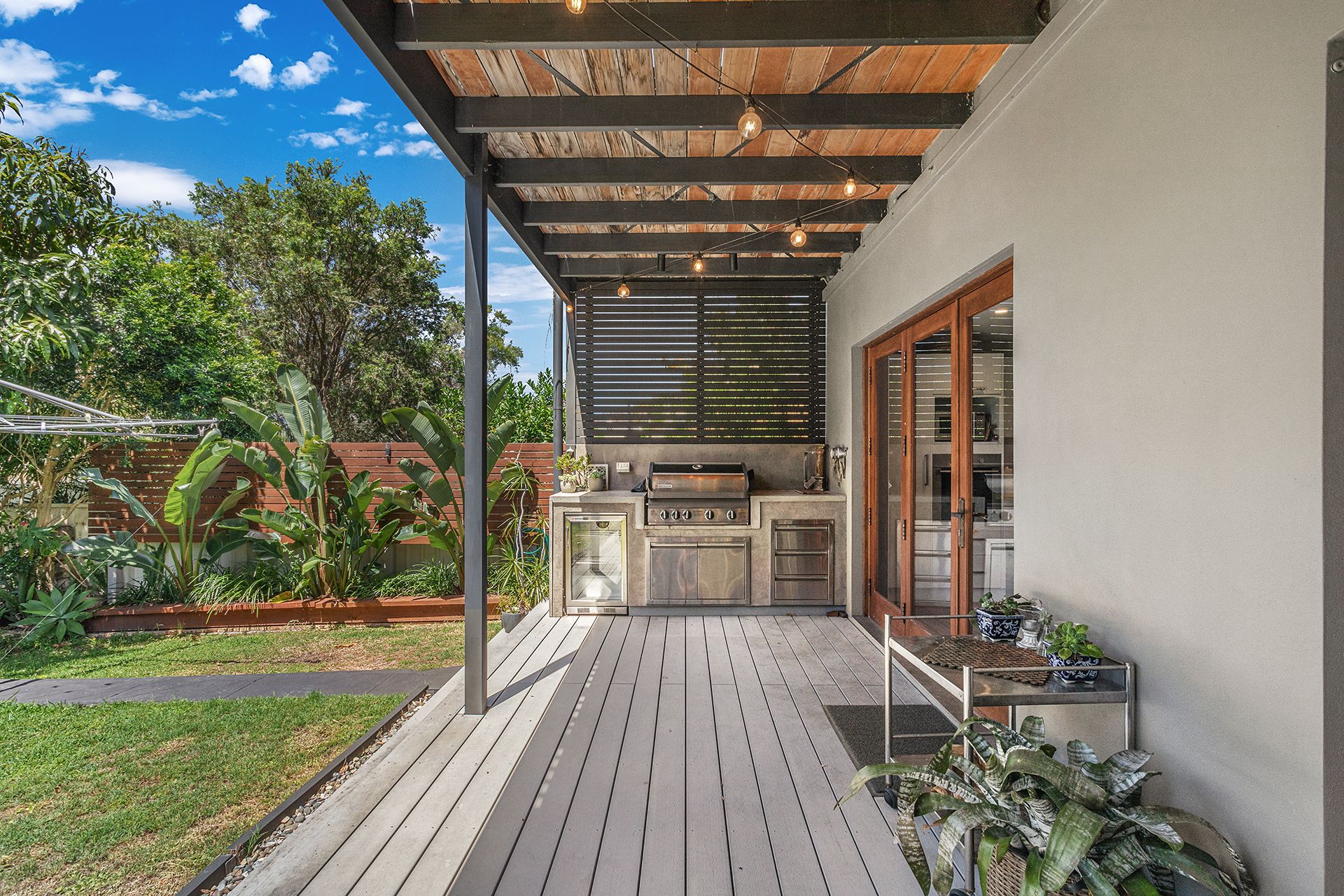 The kitchen is equipped with all the essentials and more, with a full fridge and freezer, microwave, oven, dishwasher, an island kitchen top bench and a Nespresso coffee machine (you will need to supply your own pods for some delightful morning coffee). The living room has a flat-screen Smart TV hanging on the wall for those nights you want to snuggle up and watch Netflix or Stan. The dining room and kitchen opens to the entertaining deck, where you can enjoy a meal outside undercover with the gas BBQ and a bar fridge in the beautiful outdoors of Corlette. The luscious backyard is fenced, which is perfect for little ones to adventure in. You can also access the lovely, landscaped gardens via the living room that is situated at the front of the house.