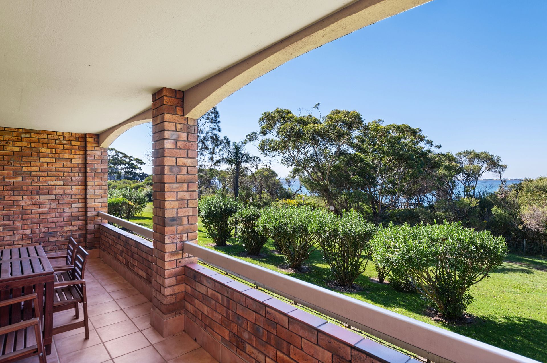 Sit back on the balcony of your comfortable apartment, breathing in the fresh, salty air as the sea breeze comes in off the ocean. Enjoy a cool drink while relaxing in the peaceful ambiance, looking across the leafy waterfront reserve to the sparkling, turquoise waters and out to the headland.