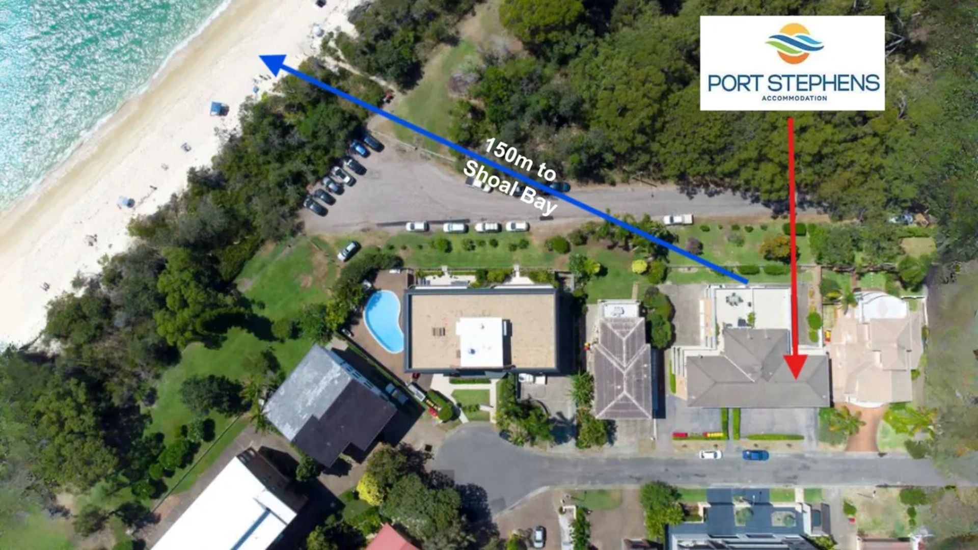 Walking distance or a 6 minute drive to Shoal Bay Shops
