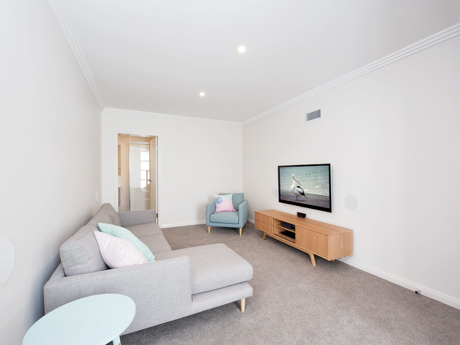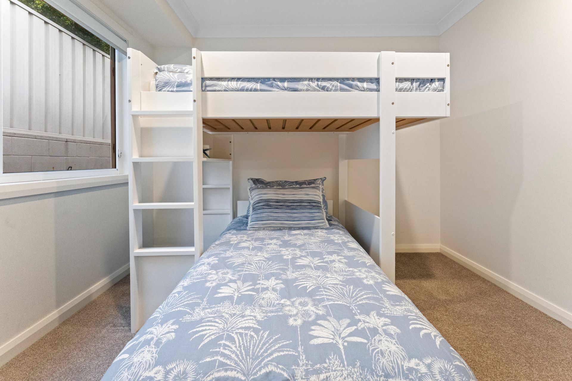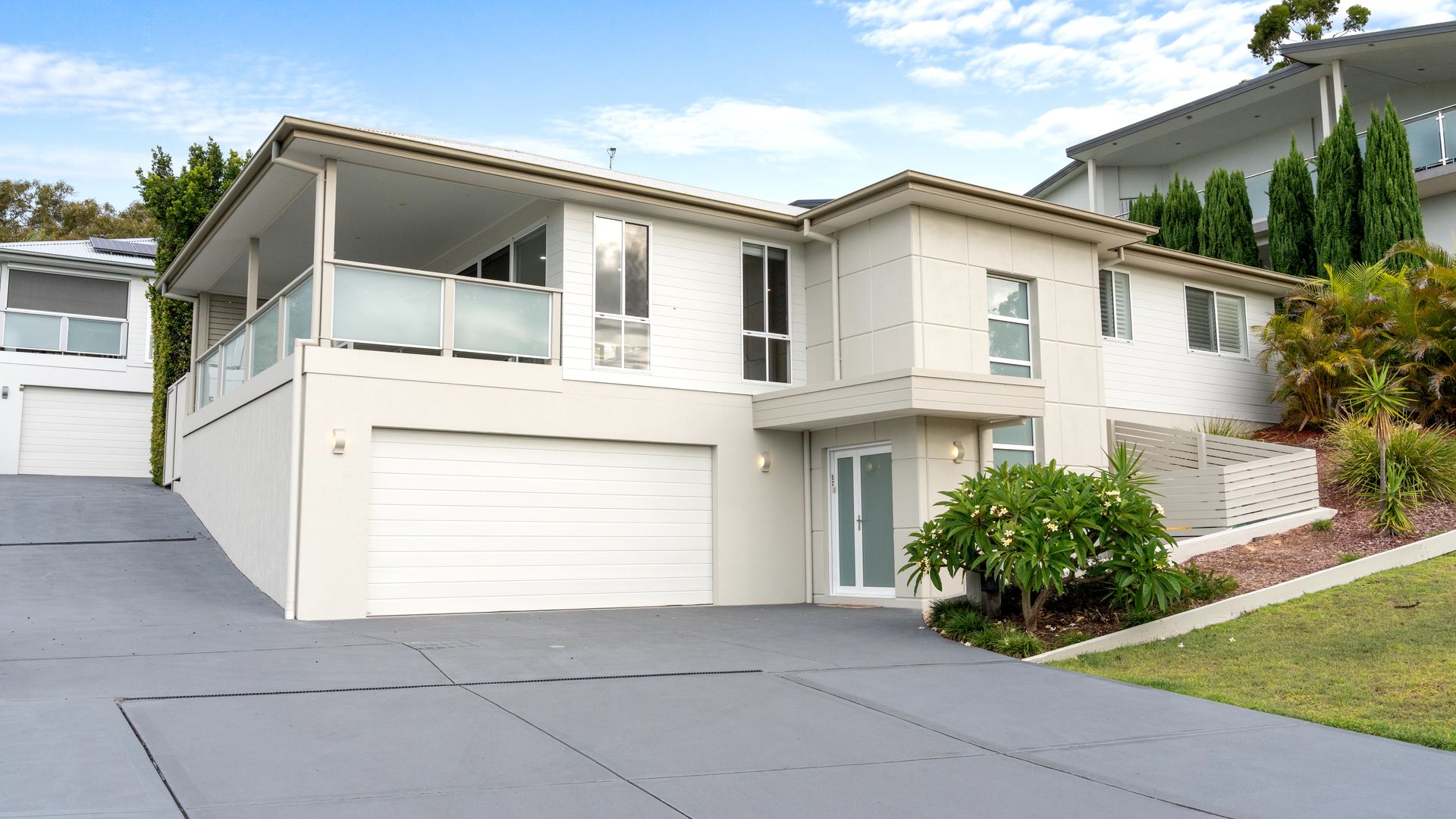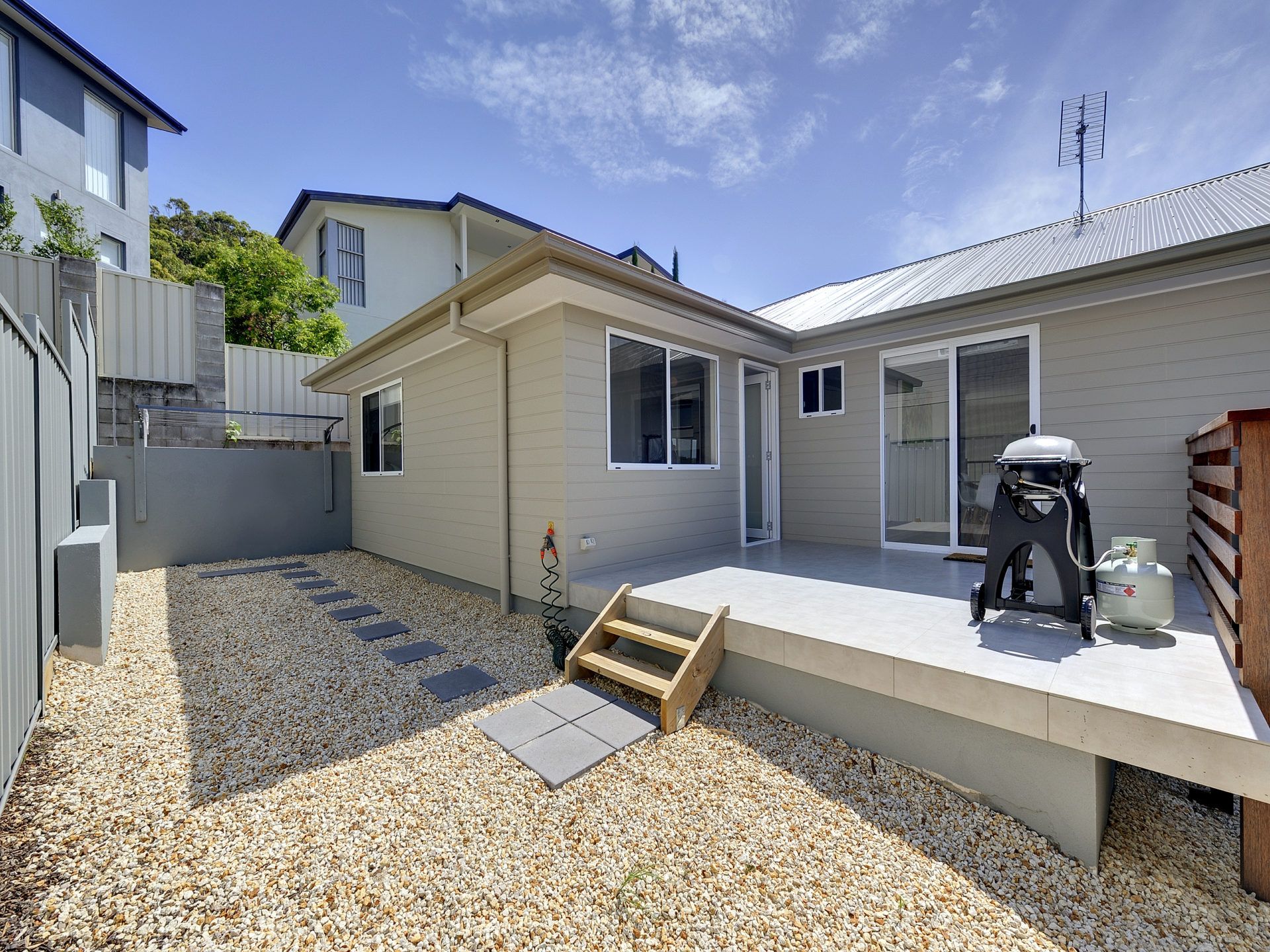 The House - You will not be disappointed when staying at this beautifully designed and appointed home. From the state of the art kitchen space to the impeccable bathrooms, offering plenty of room for the whole family. The property features a spacious living & dining area that joins the kitchen on the first floor, combining to provide a large open plan space that leads to a private undercover balcony with tasteful outdoor furnishings. From the balcony you can enjoy the views of the water and beyond to the mountains in the distance. The house is fitted with down lights and ducted air conditioning throughout. The sitting area is carpeted with a modern lounge suite, flat screen TV and a study zone. The modern fully equipped kitchen comes fitted with wall oven, gas stove top, microwave, fridge/freezer and dishwasher plus bar stools at the kitchen bench. The dining area provides a glass table and stylish bucket chairs. Continuing on the first floor is the main bathroom with a free standing bath, glass shower, double vanity with the toilet located separately. The laundry is next door to the bathroom which then leads out to an open deck which houses the BBQ and a clothes line.