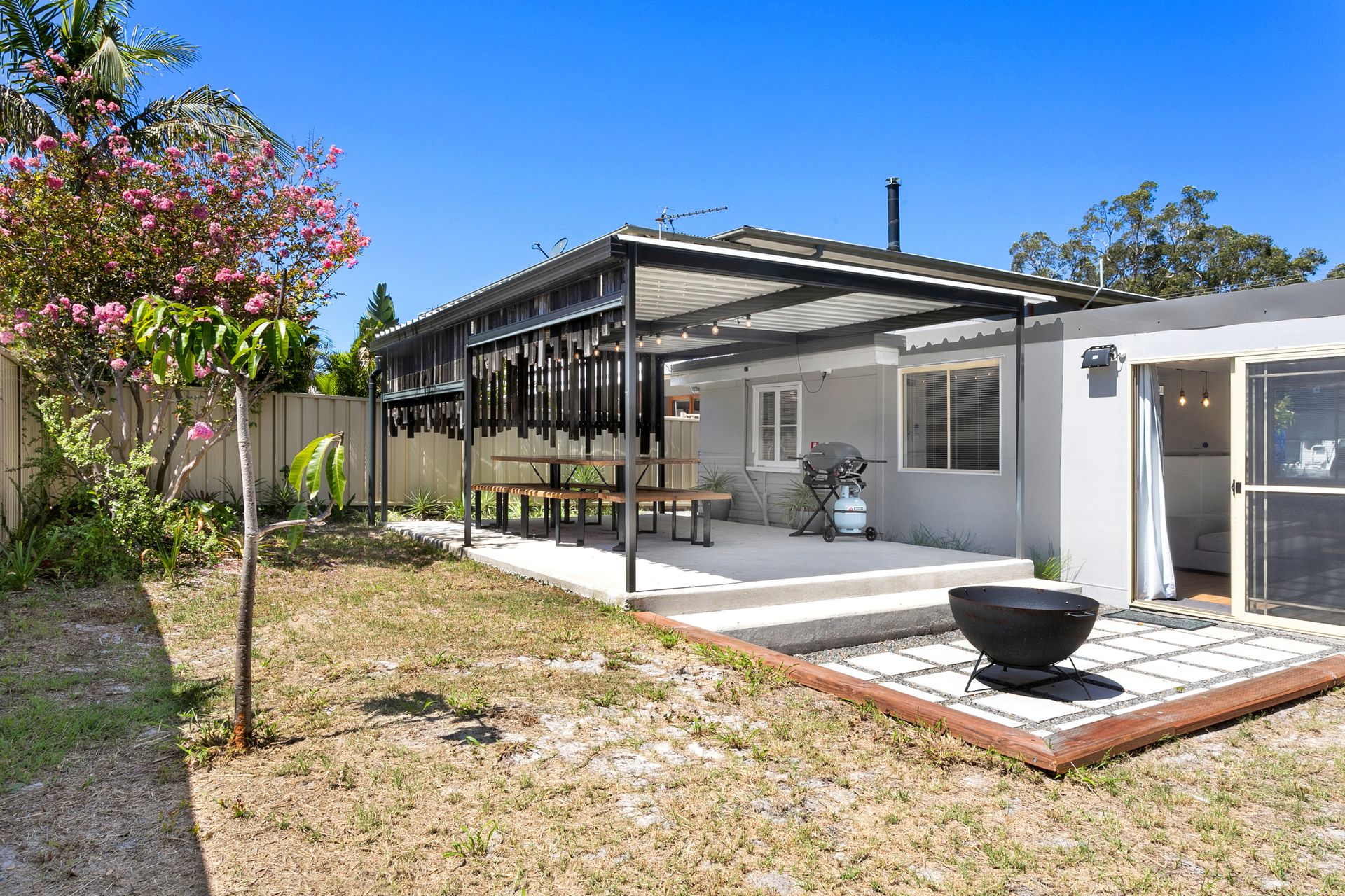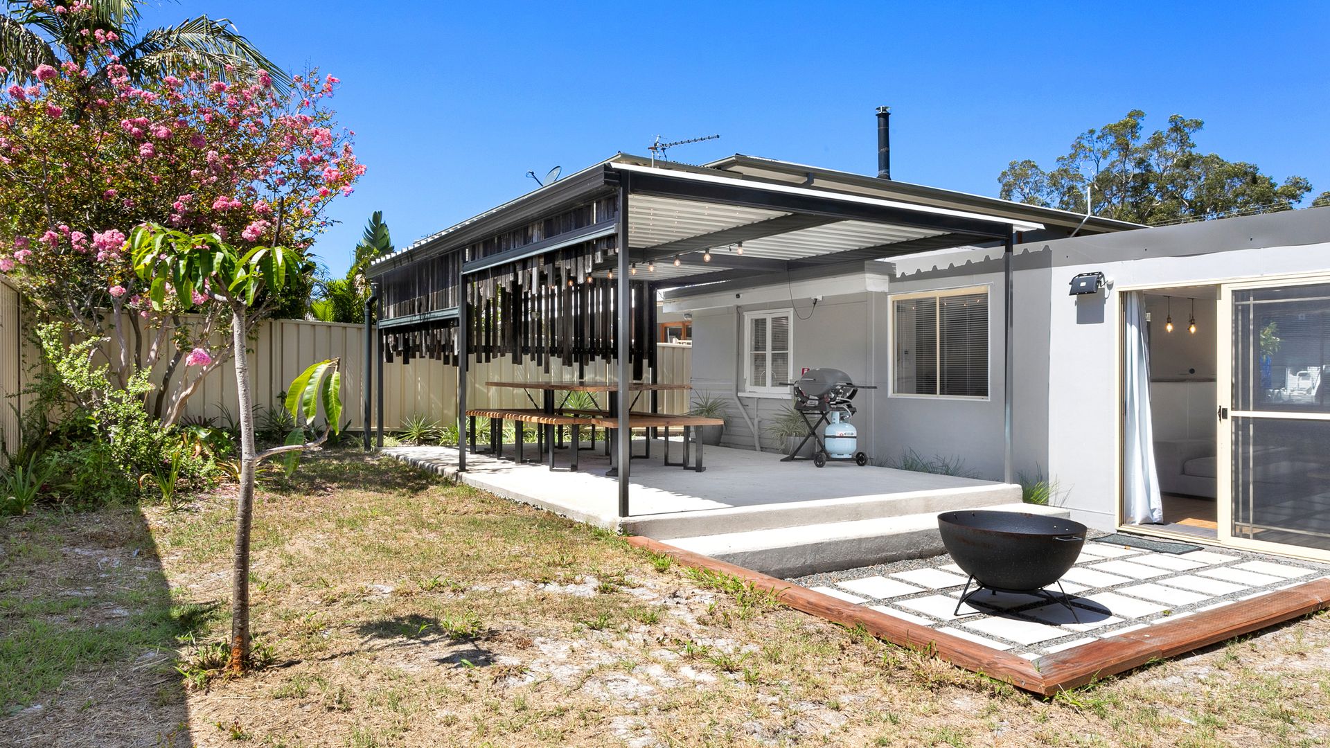 Outdoor undercover entertaining area with barbecue