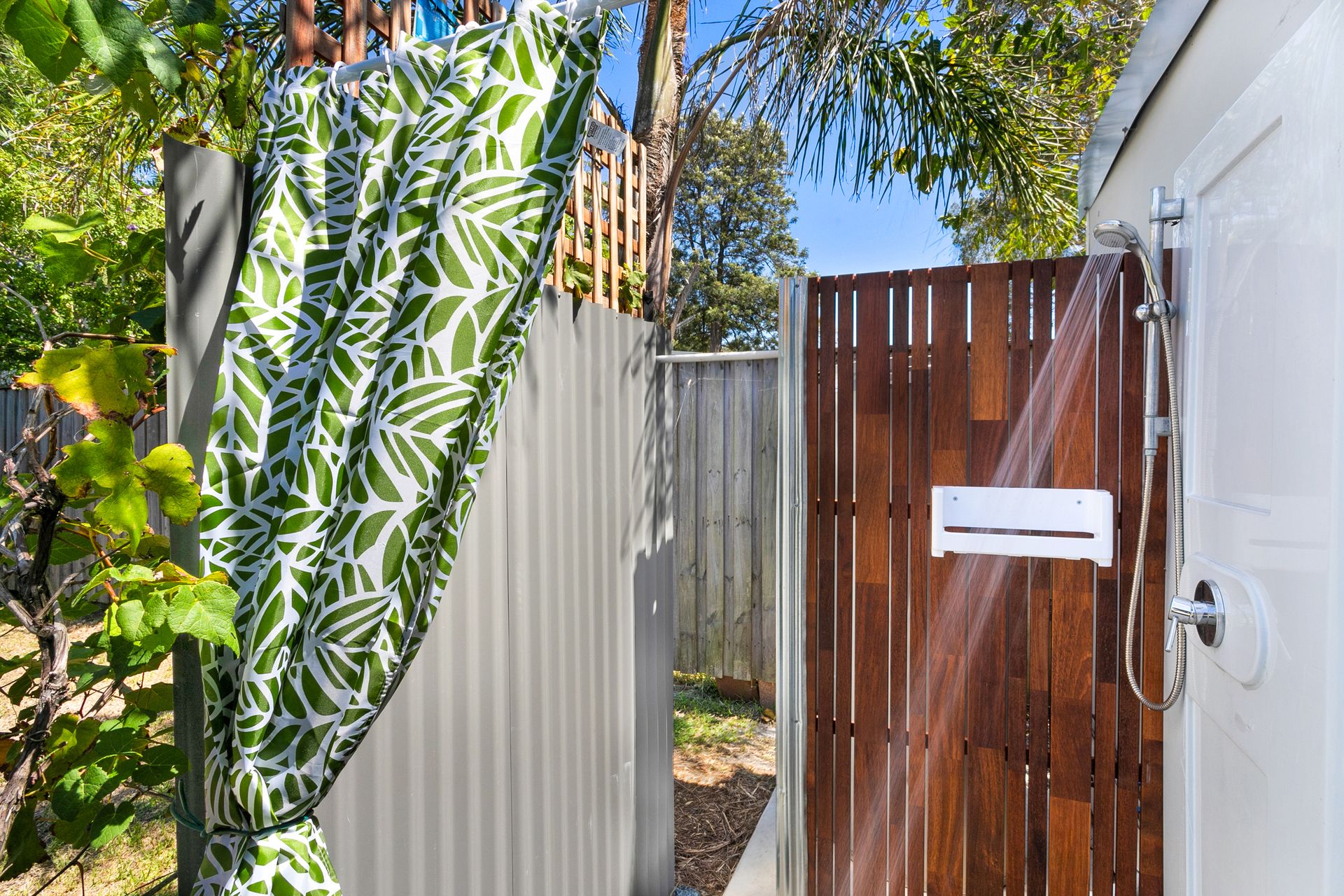 Outdoor shower with hot and cold water