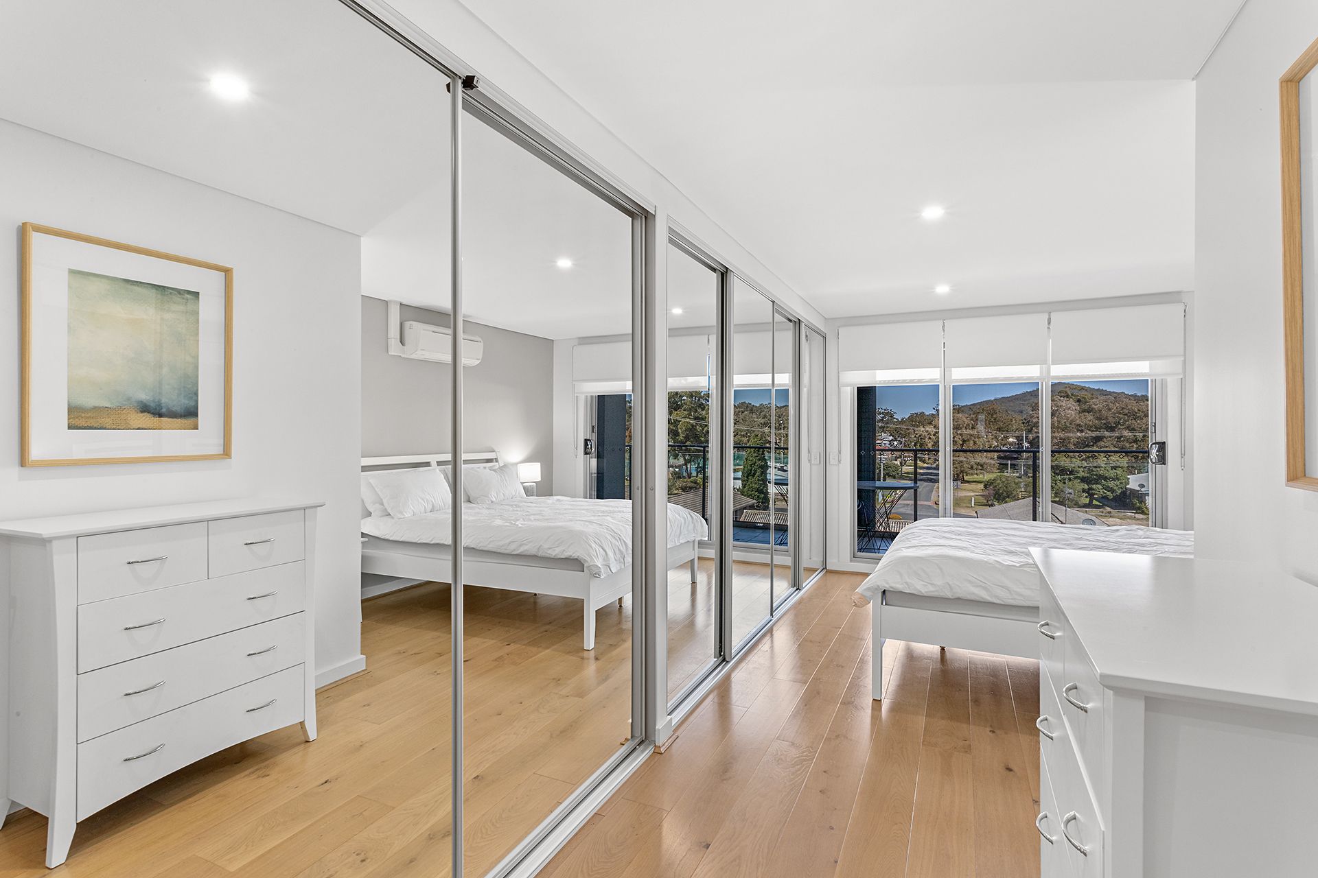 The Apartment - A contemporary two bedroom apartment. Beautifully furnished and styled throughout, this split air conditioned apartment offers wifi, a large flat screen TV, a dining area and a fully equipped sophisticated kitchen with a full fridge/freezer, oven, Nespresso coffee pod machine (pods not included), microwave and dishwasher. The balcony area shows off the water views of nearest Shoal Bay beach alongside beautifully styled furniture. The two inviting bedrooms both encompass king size beds making it a stay for four. The two bathrooms have a shower, vanity and toilet. Internal laundry with washing machine and dryer. Other features include unlimited wifi, lift access and undercover secure parking for one car.
