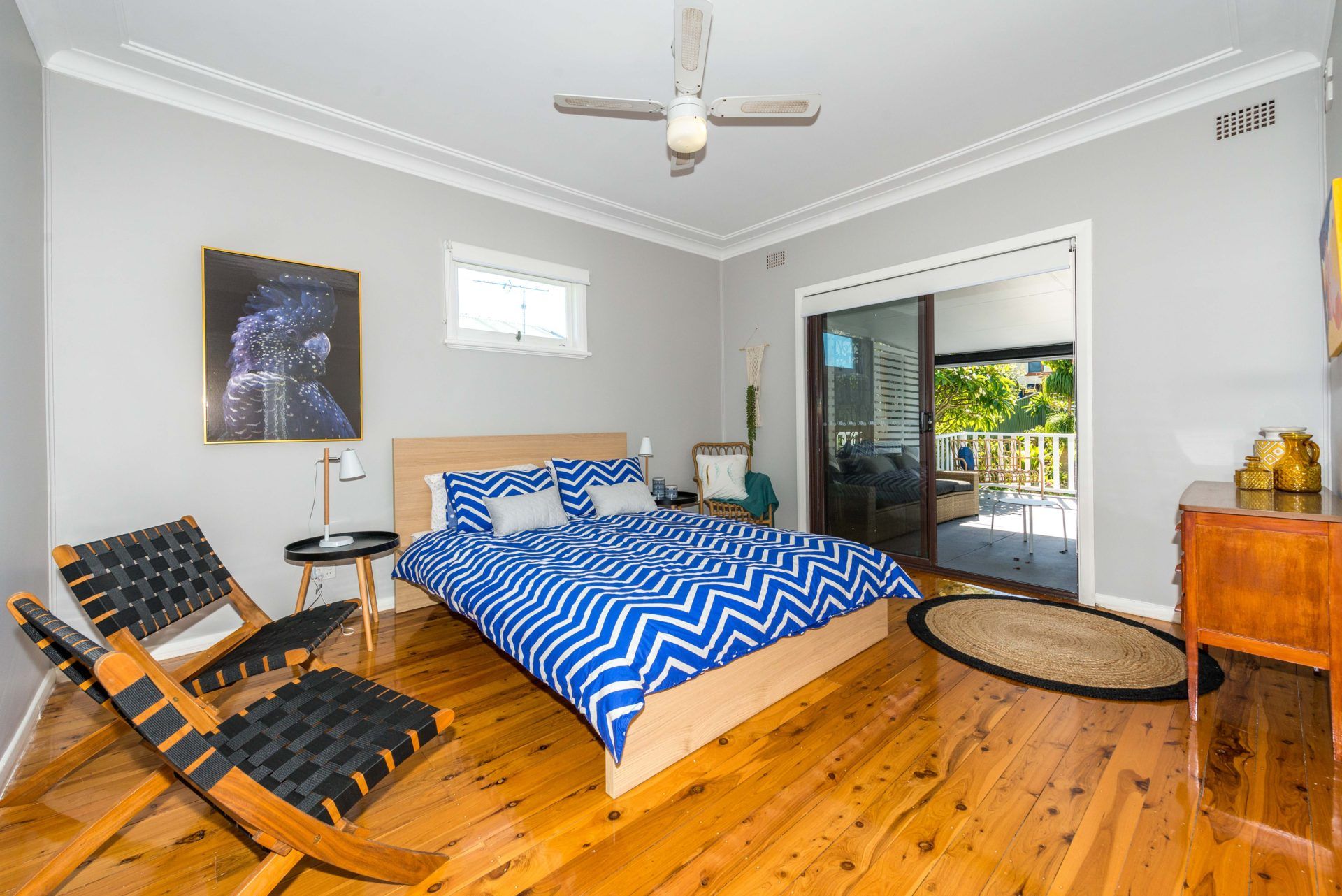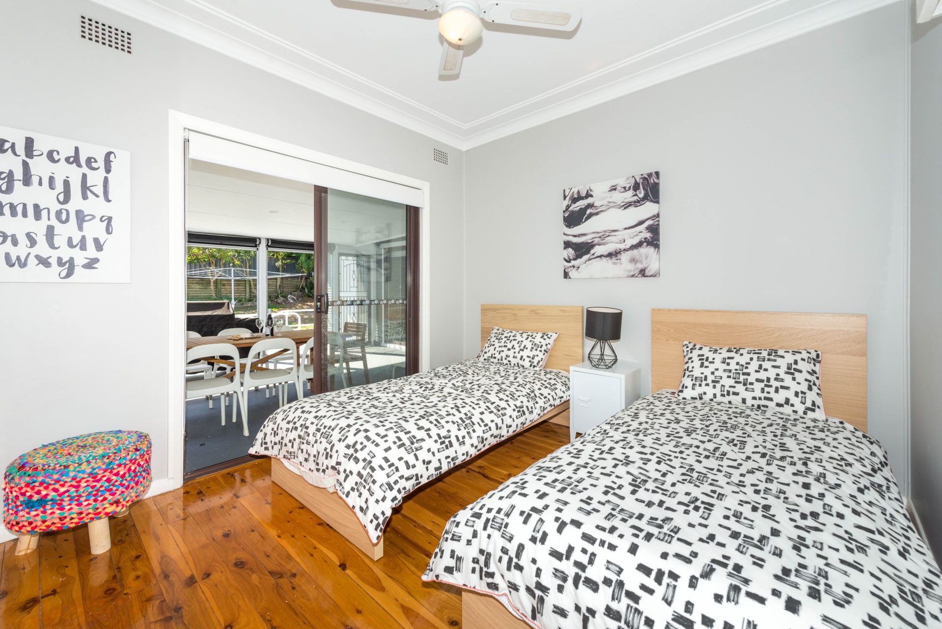 The fully fenced yard is ideal for children or pets and provides a lovely leafy outlook which adds to the ambiance of the location. Please note this house welcomes small to medium sized dogs who are to be kept outside.